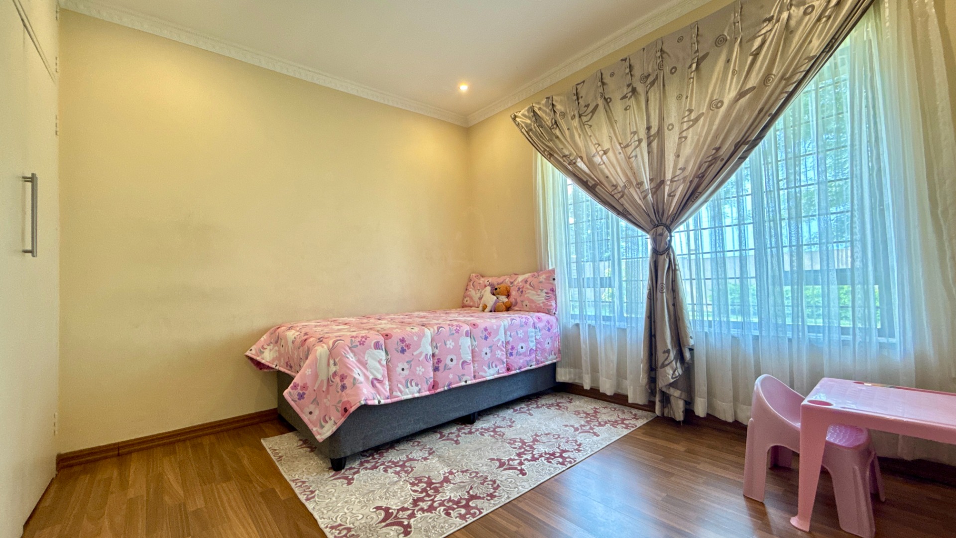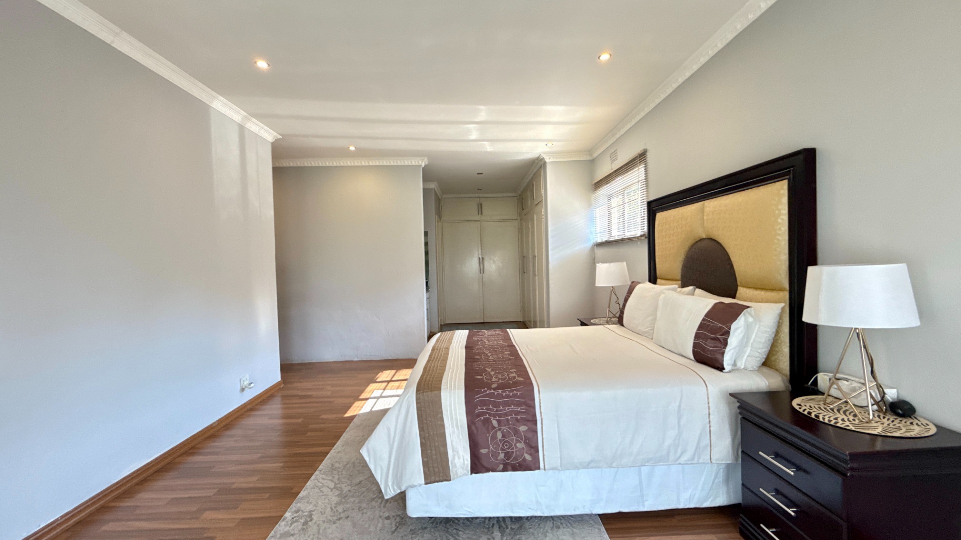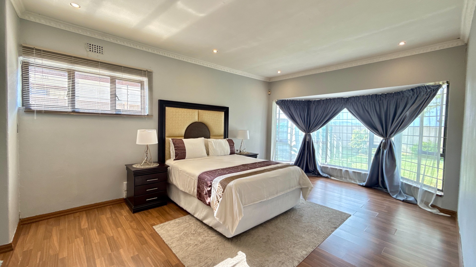 - Four spacious bedrooms with laminate wood flooring