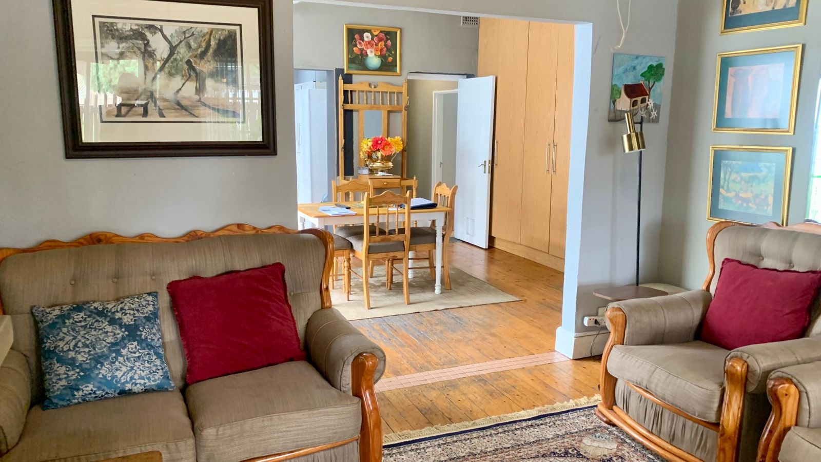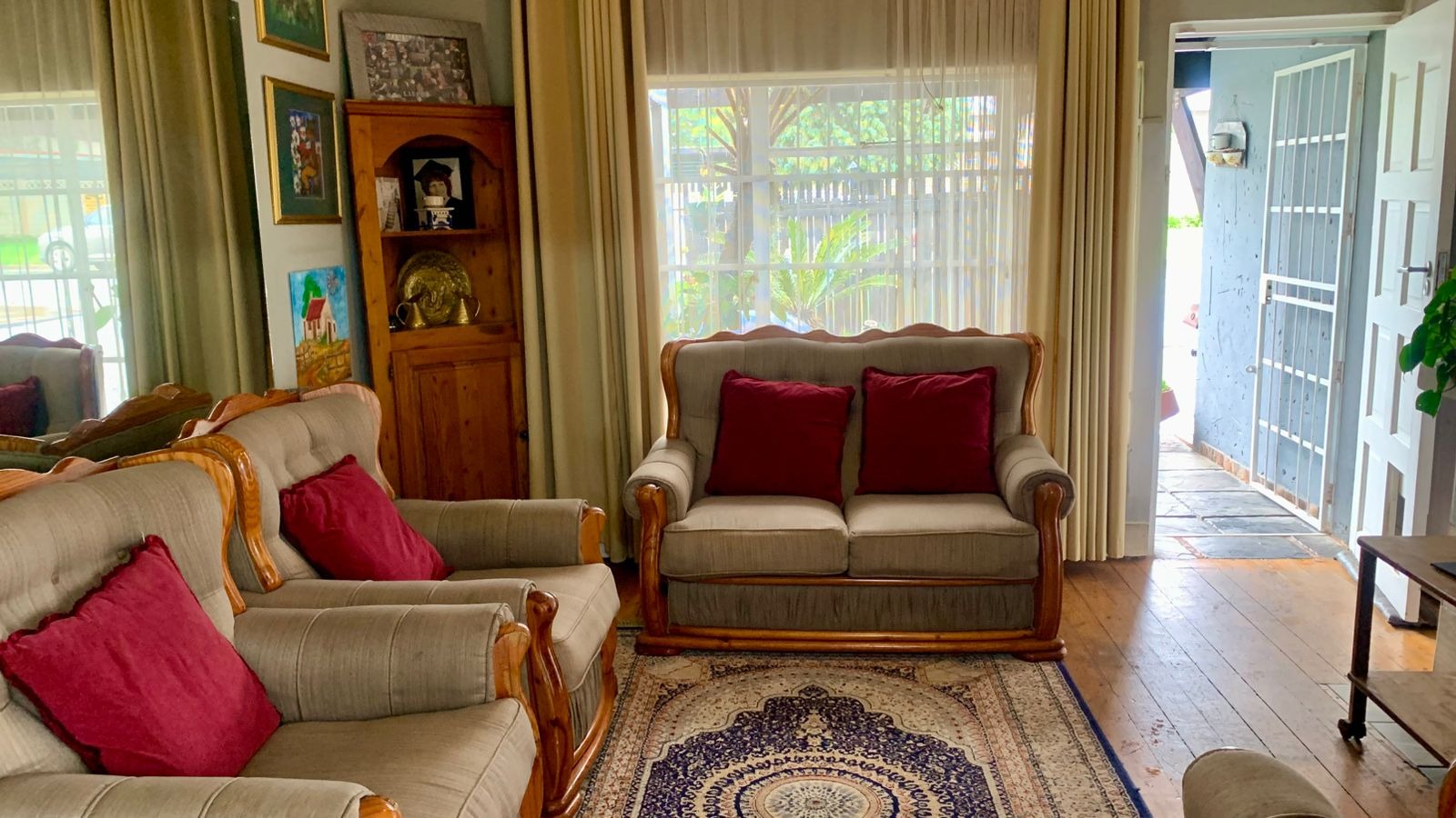 This neat and well-maintained family home offers comfortable living with a solid structure and plenty of outdoor space, making it ideal for families, first-time buyers, or anyone looking for a property with future potential. The home welcomes you with a warm and inviting lounge area featuring beautiful wooden flooring and large windows that allow for plenty of natural light, creating a relaxed and homely atmosphere.