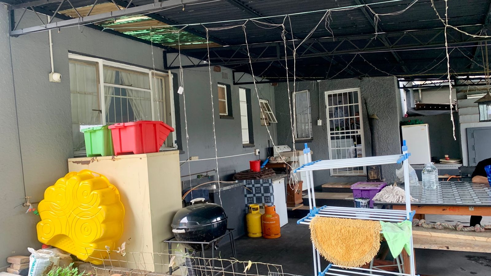 Outside, the property offers a large yard with secure fencing and gates, providing peace of mind and plenty of parking space. The covered parking area adds extra convenience and protection for vehicles, while the spacious stand allows room for future improvements, extensions, or additional structures if needed.