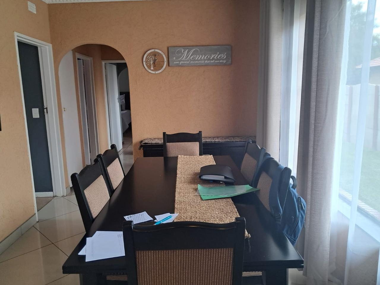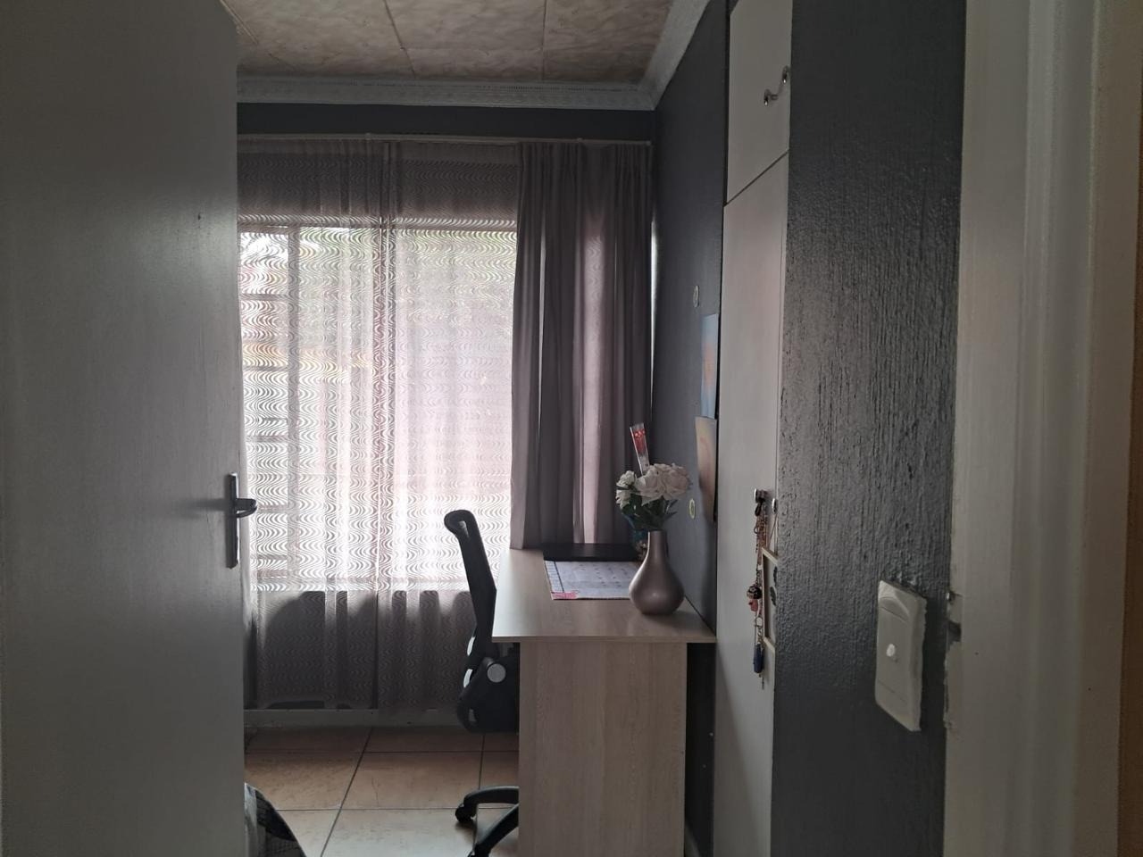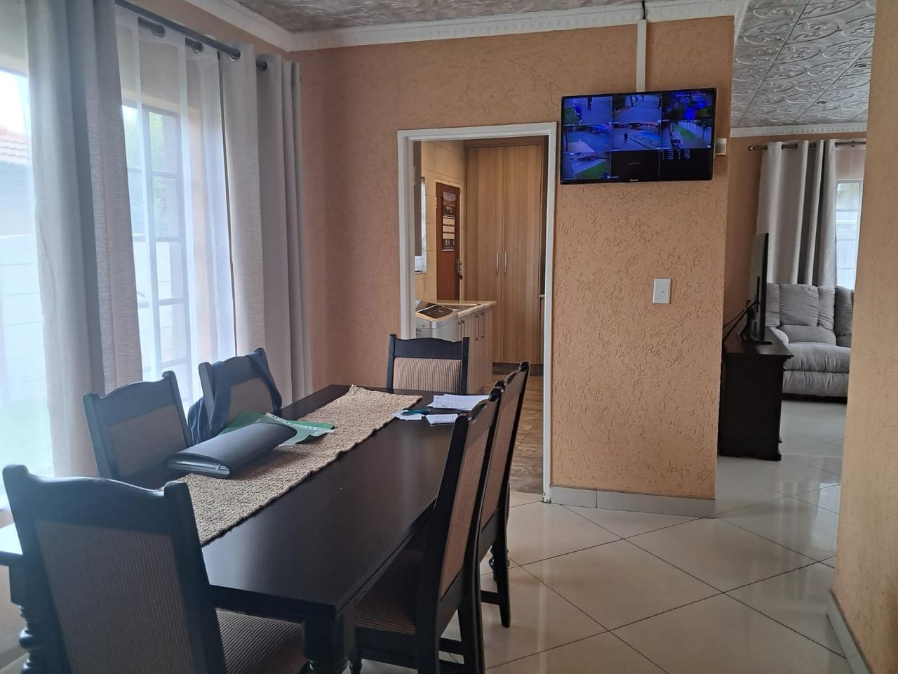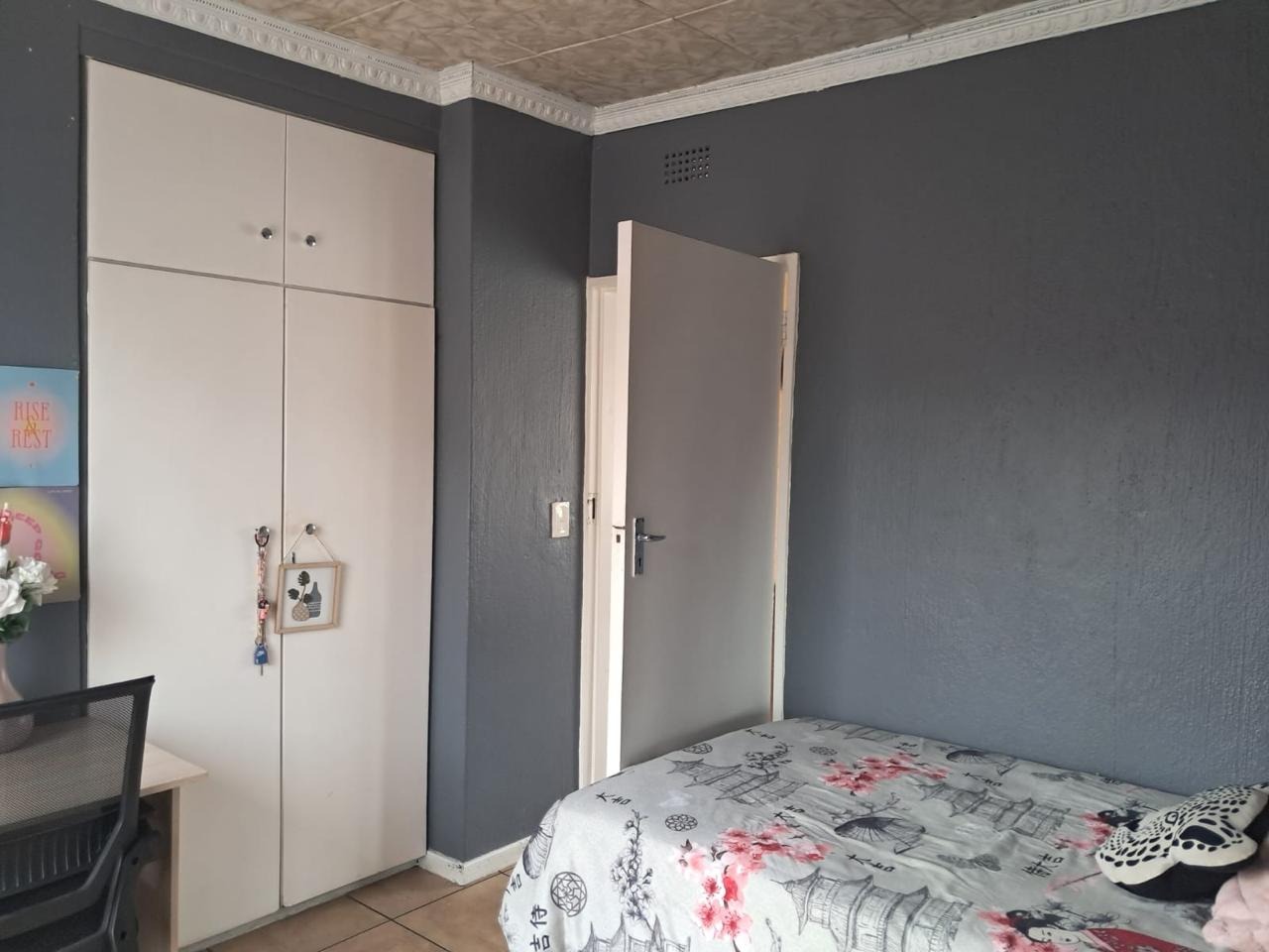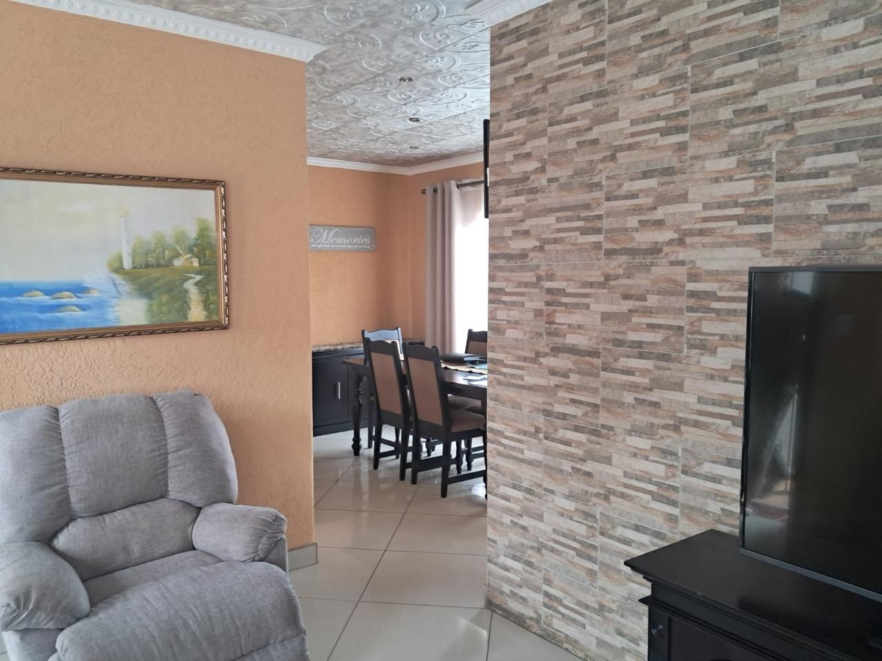 Welcome to this neat and cozy 3-bedroom home, where warmth, functionality, and space come together beautifully. Each bedroom is generously sized, tiled, and filled with natural sunlight, with built-in cupboards for added convenience. The main bedroom includes a private en-suite bathroom, while a second guest bathroom ensures comfort for the whole family. A spacious lounge and dining room with elegant pressed ceilings provide the perfect setting for family time and relaxation.
