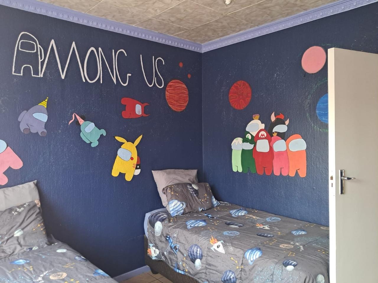 Bedrooms: 3 spacious bedrooms with built-in cupboards and tiled floors