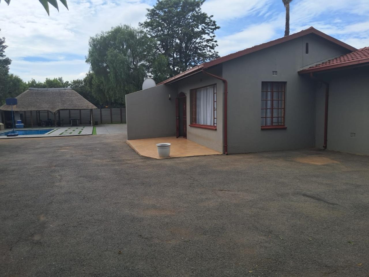 The heart of the home is its functional kitchen, featuring ample cupboards, tiled flooring, an electric oven, and space for a single-door fridge – everything you need for everyday living. Adding to the property’s versatility is a spacious open-plan flatlet with a full en-suite bathroom, ideal for guests, extended family, or as a private home office.