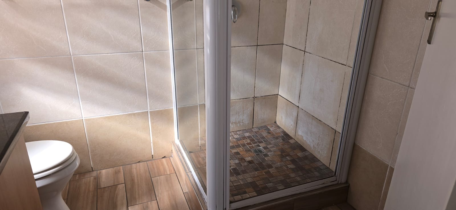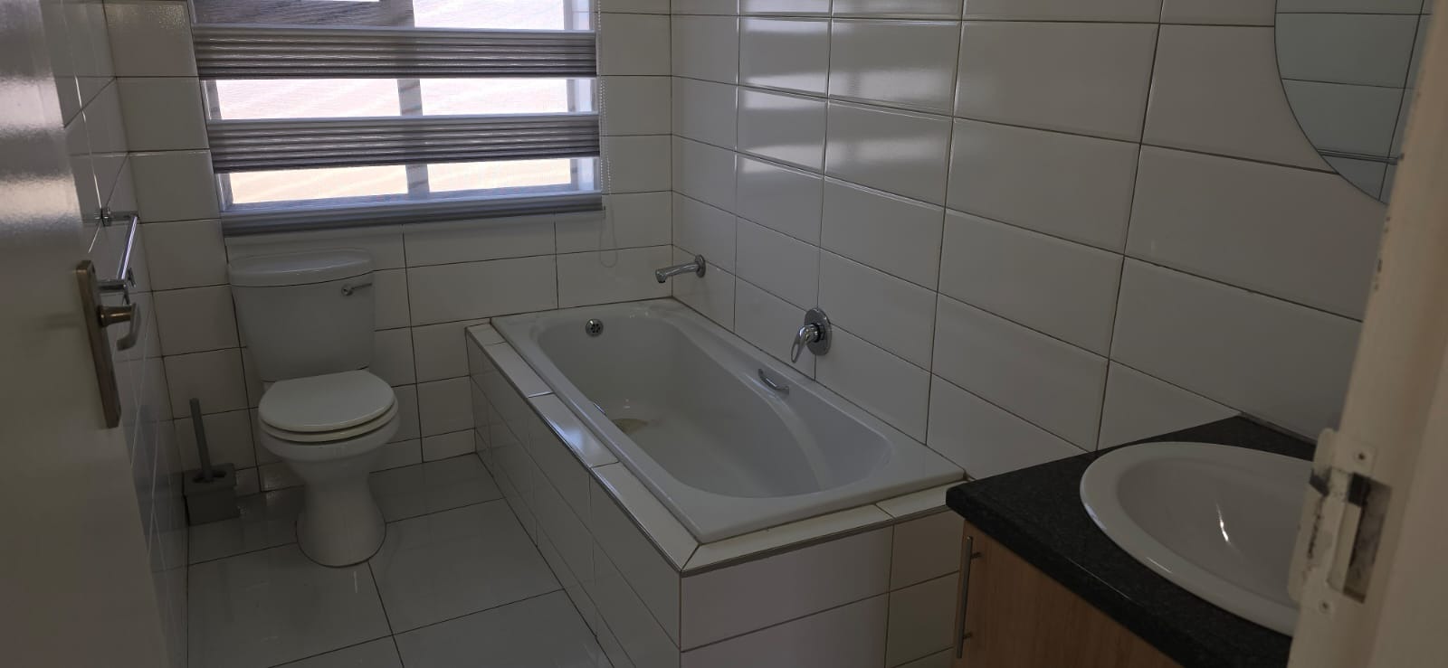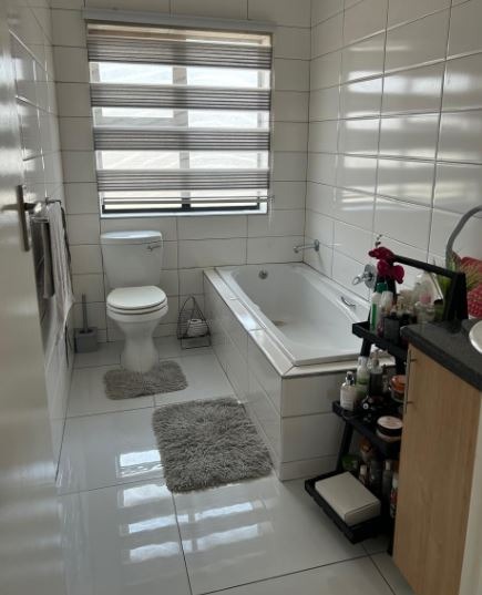 2 stylish bathrooms: one with a bath, basin, and toilet; the second with a shower, basin, and toilet. Perfect for shared living or hosting guests.