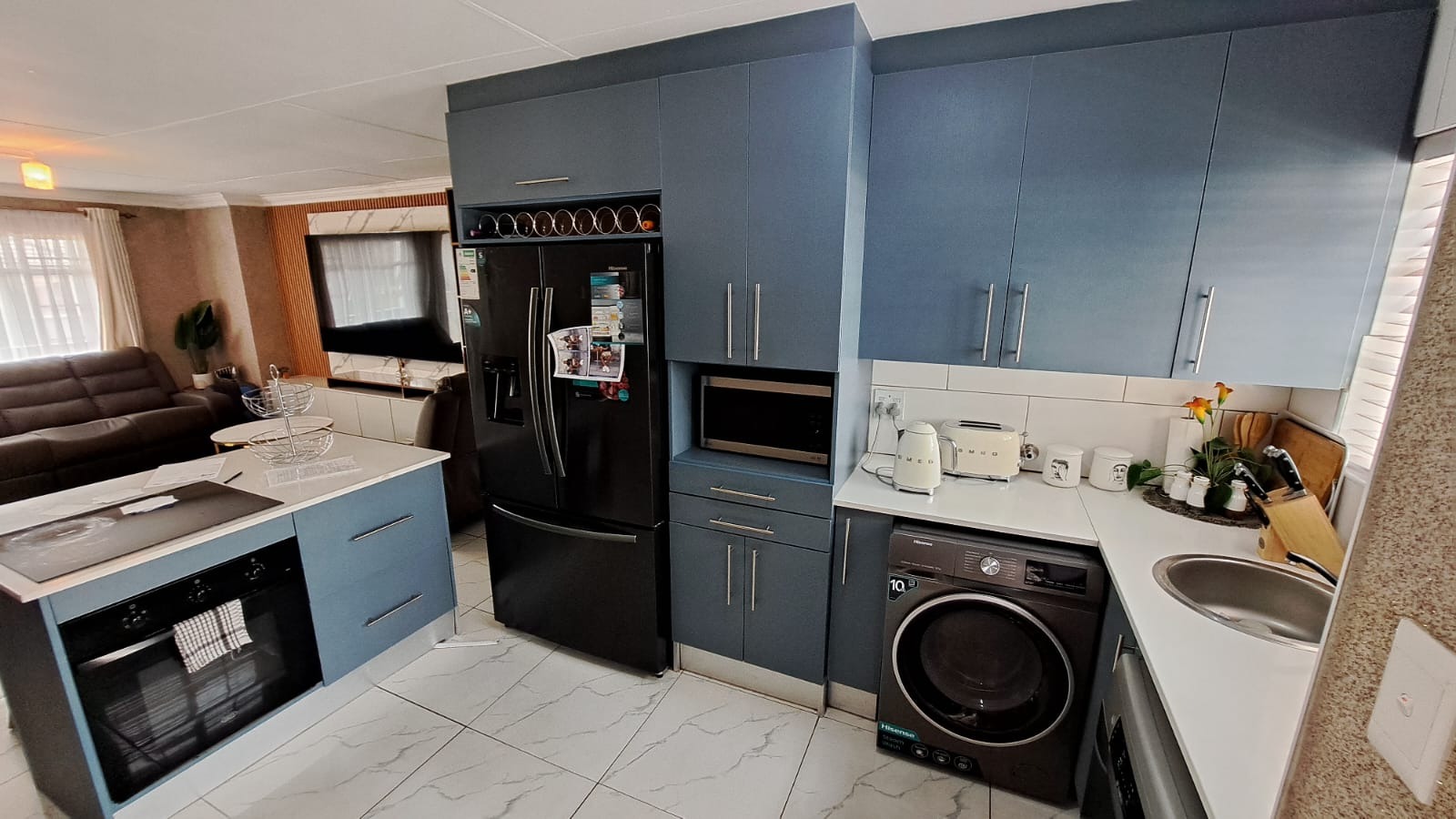 Step inside and you’ll find generous living spaces that flow seamlessly from lounge to dining and entertainment areas, ideal for hosting gatherings or simply enjoying everyday family life. The modern kitchen, fitted with ample cupboards and sleek finishes, is both functional and stylish, perfectly positioned as the heart of the home.
