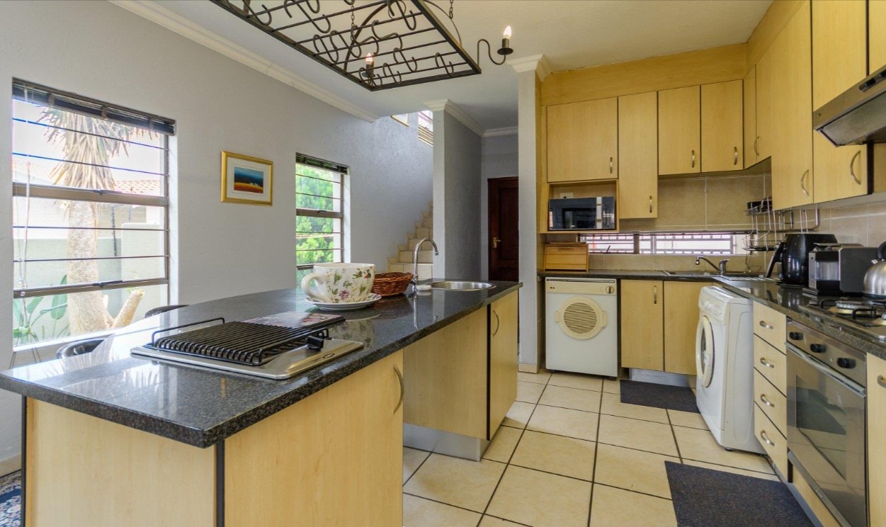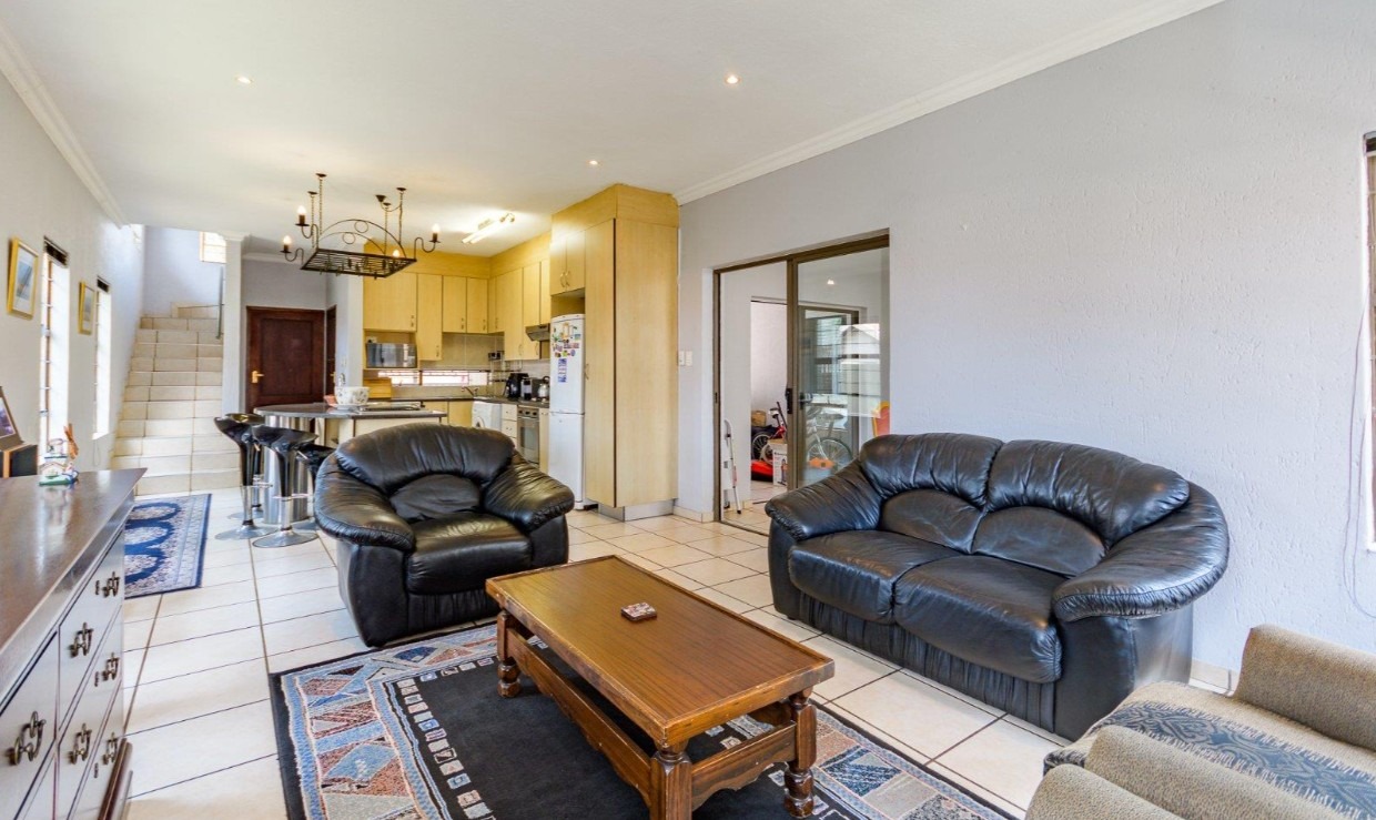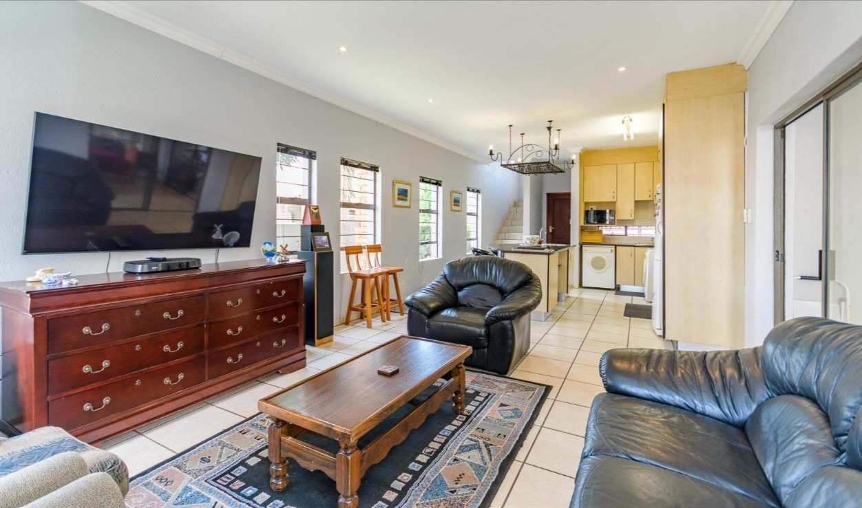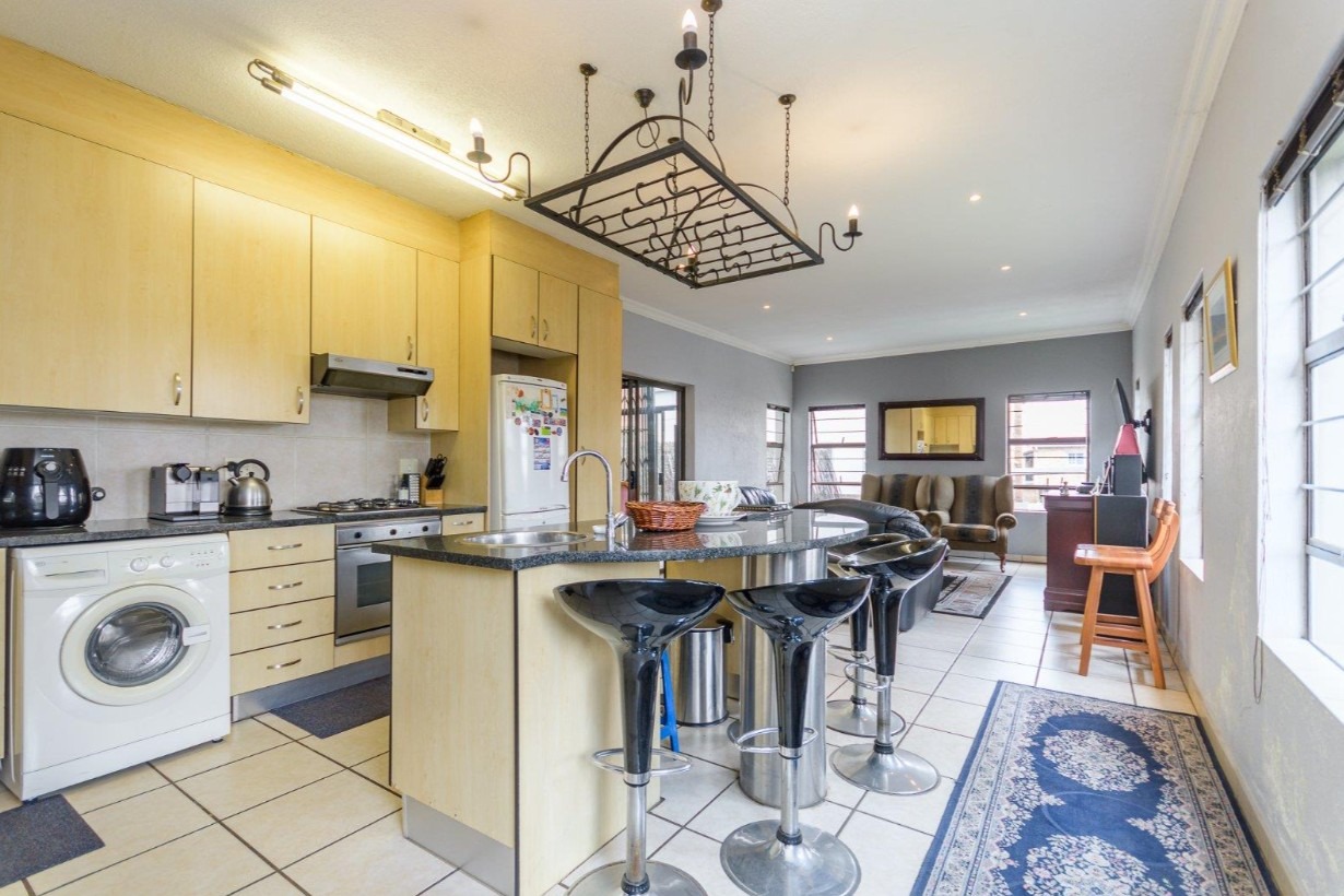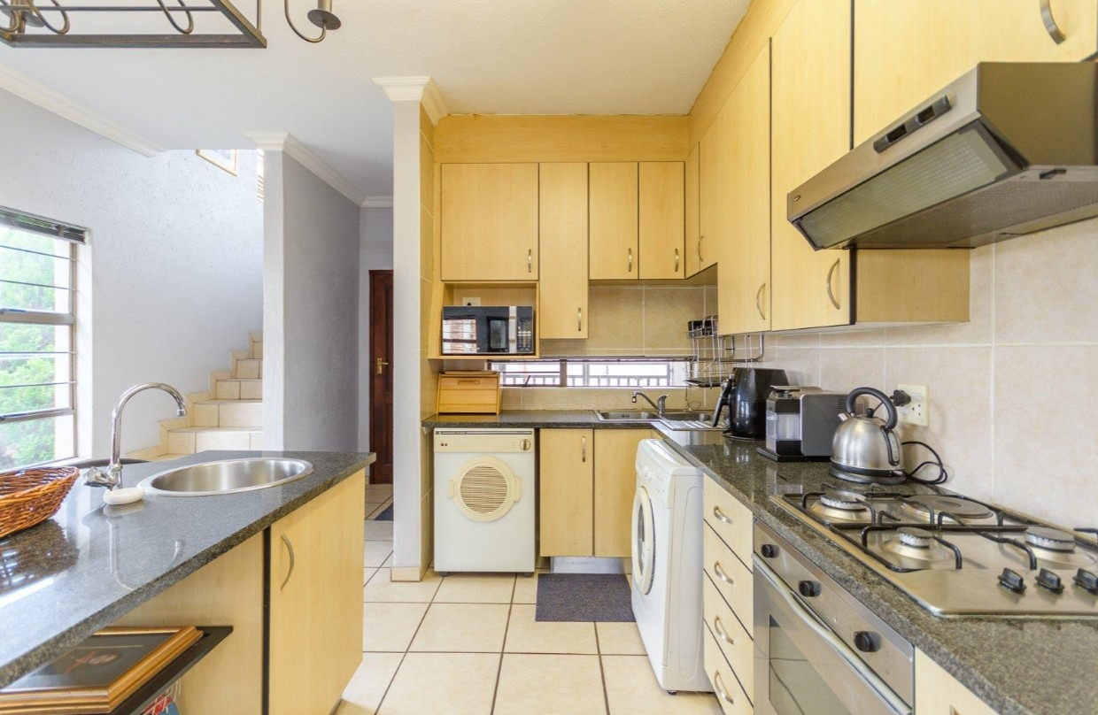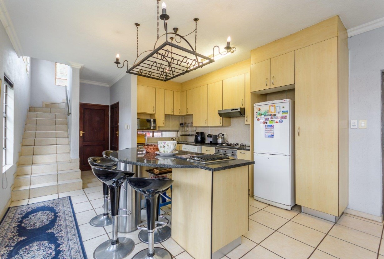 Located in a sought-after complex adjacent to the prestigious Meyersdal Eco Estate, this spacious and well-maintained home offers exceptional value and comfortable family living. The property features three generously sized bedrooms, two full bathrooms, and a guest lavatory for added convenience. The open-plan living area provides ample space for a TV lounge or family room, seamlessly flowing into an above-average-sized kitchen. Culinary enthusiasts will appreciate the fitted center island, complete with an additional gas burner, which also doubles as a functional breakfast nook.