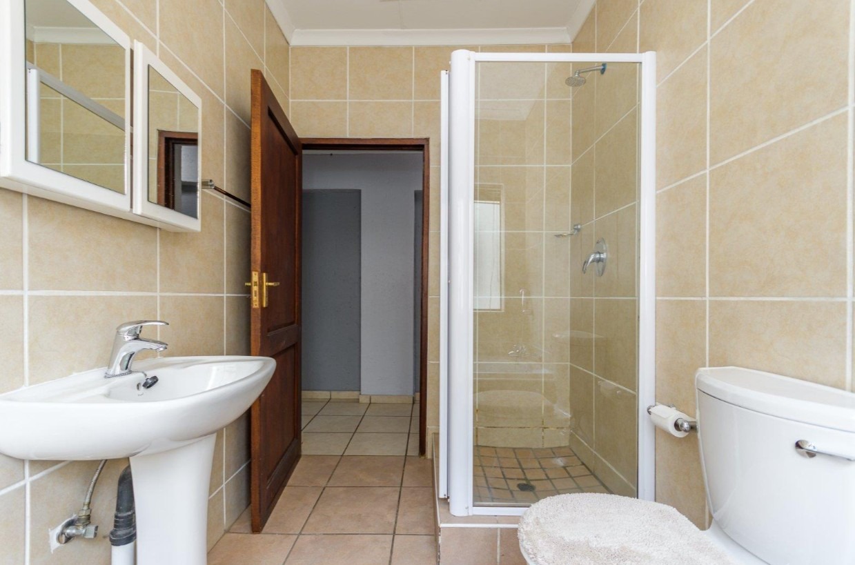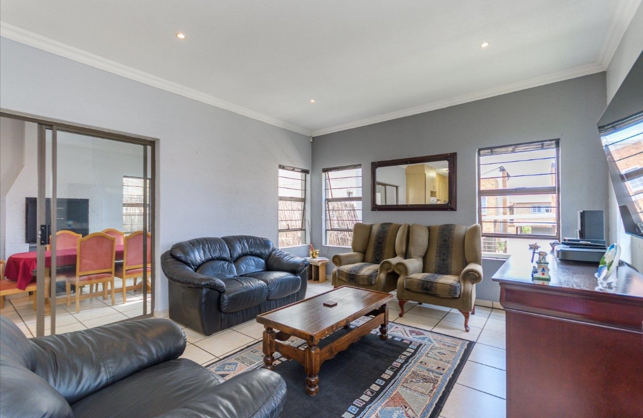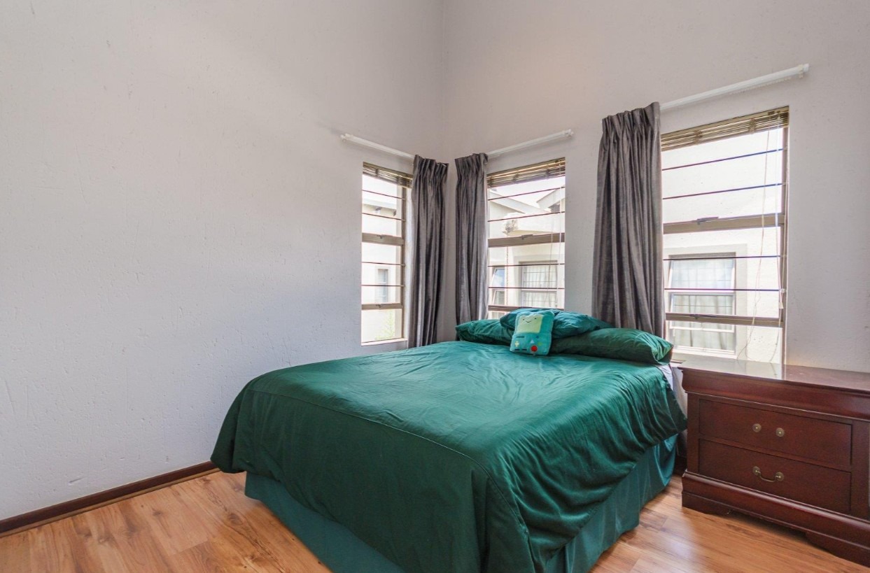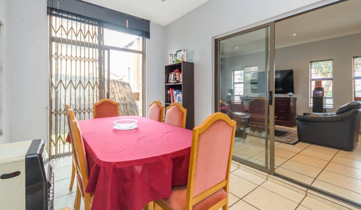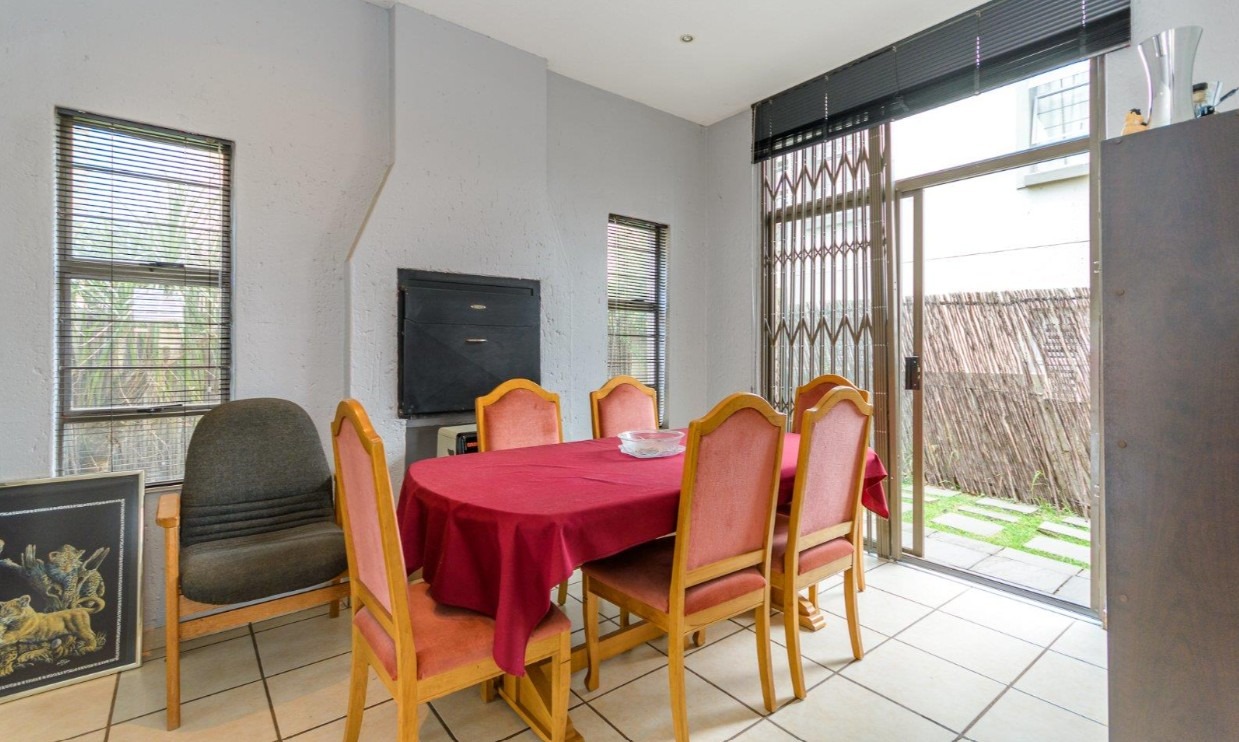 Located in a sought-after complex adjacent to the prestigious Meyersdal Eco Estate, this spacious and well-maintained home offers exceptional value and comfortable family living. The property features three generously sized bedrooms, two full bathrooms, and a guest lavatory for added convenience. The open-plan living area provides ample space for a TV lounge or family room, seamlessly flowing into an above-average-sized kitchen. Culinary enthusiasts will appreciate the fitted center island, complete with an additional gas burner, which also doubles as a functional breakfast nook.