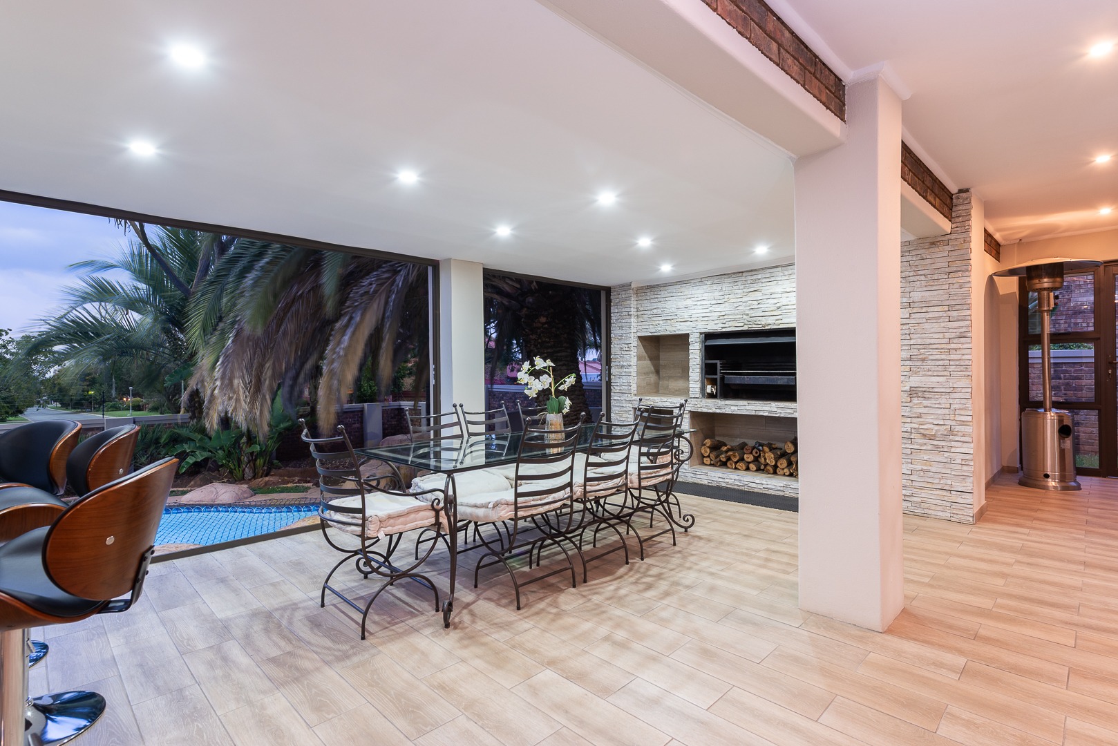 Expansive Entertainment Area – Featuring a built-in bar and braai, seamlessly flowing through the outdoor patio area.