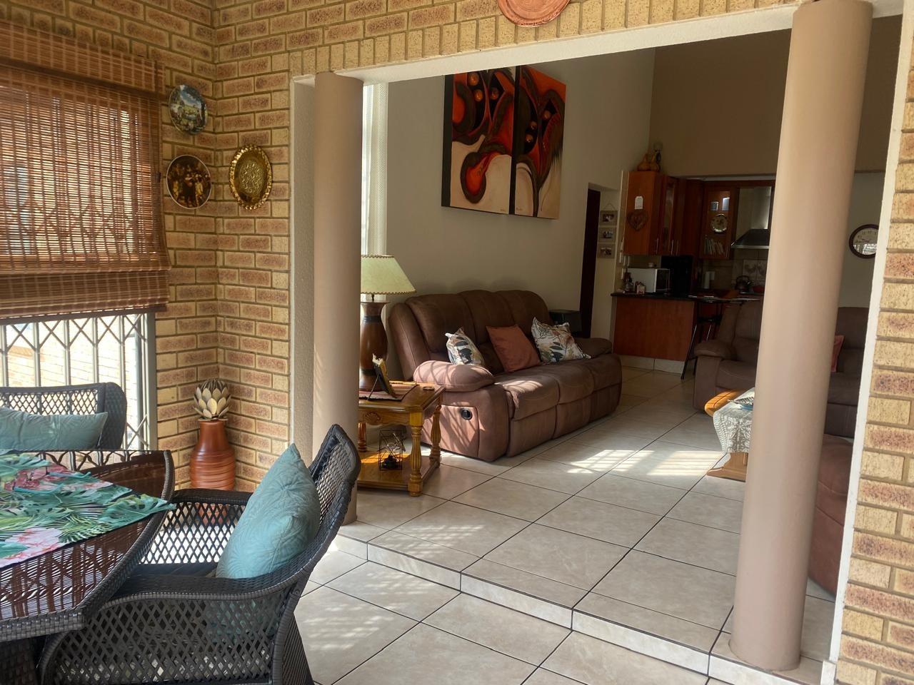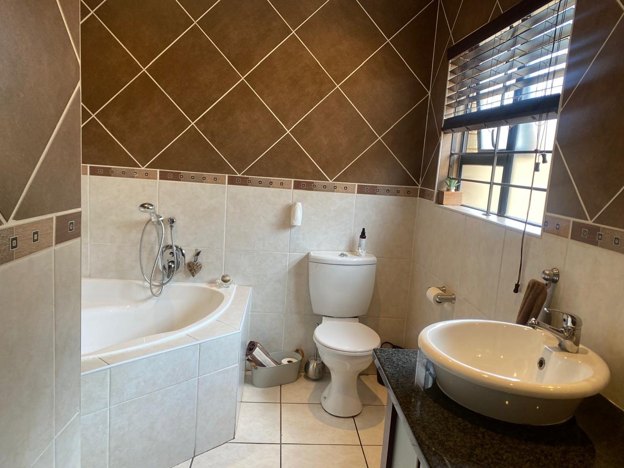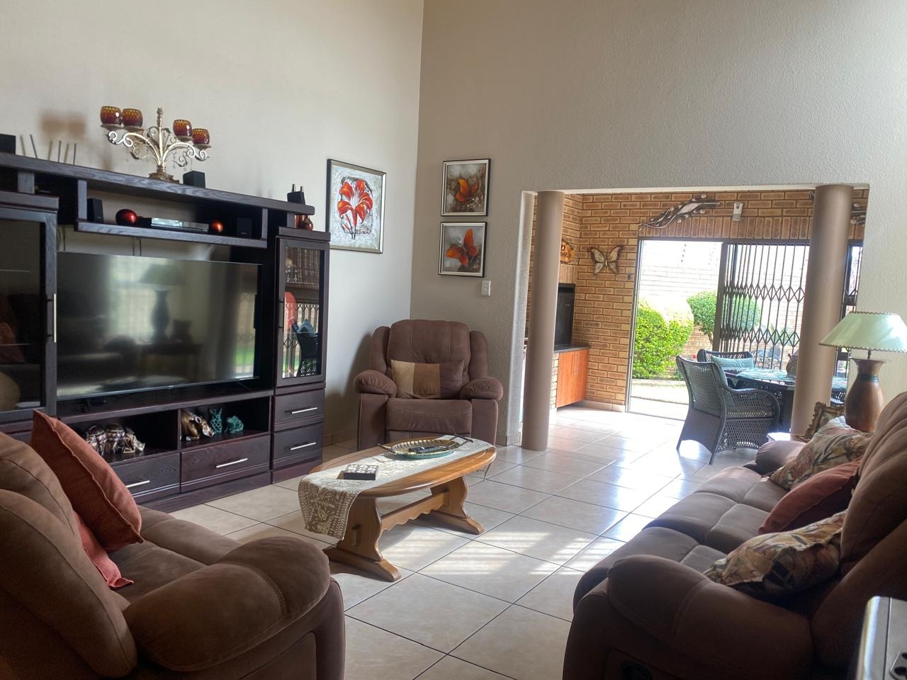 Inside, this home boasts 3 spacious bedrooms, all featuring elegant laminated wooden flooring, creating a modern and inviting space. The main bedroom is a true retreat, complete with air conditioning for year-round comfort. Indulge in the luxury of 2 modern bathrooms, both equipped with jacuzzi-style baths, while the main-en-suite offers a large shower for added convenience. The heart of the home is the ultra-modern kitchen, offering extra cupboard space and a convenient scullery to meet all your culinary needs. The expansive lounge, also air-conditioned, and a separate braai room with a built-in braai make entertaining effortless and enjoyable.