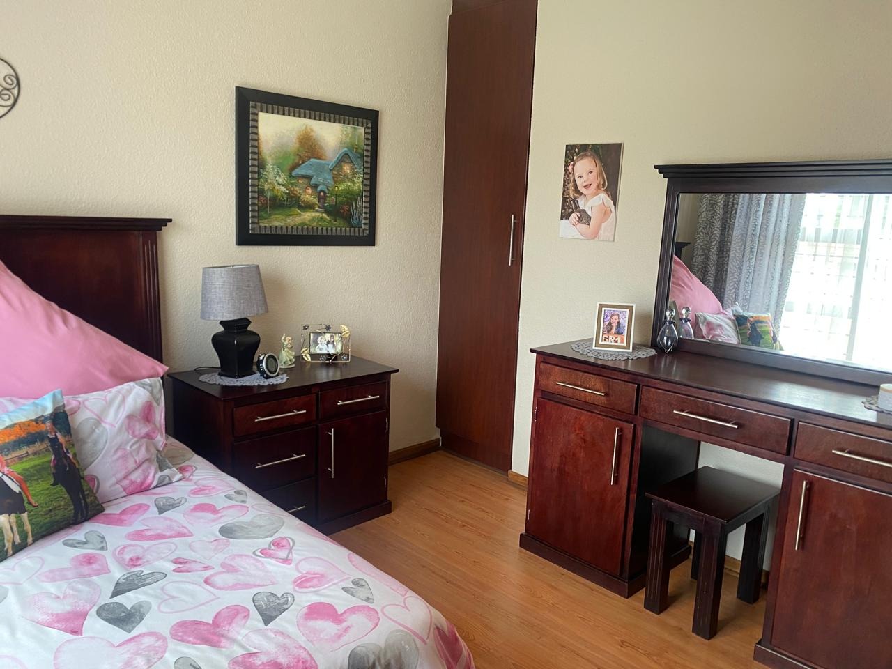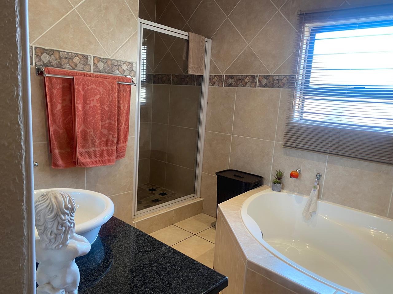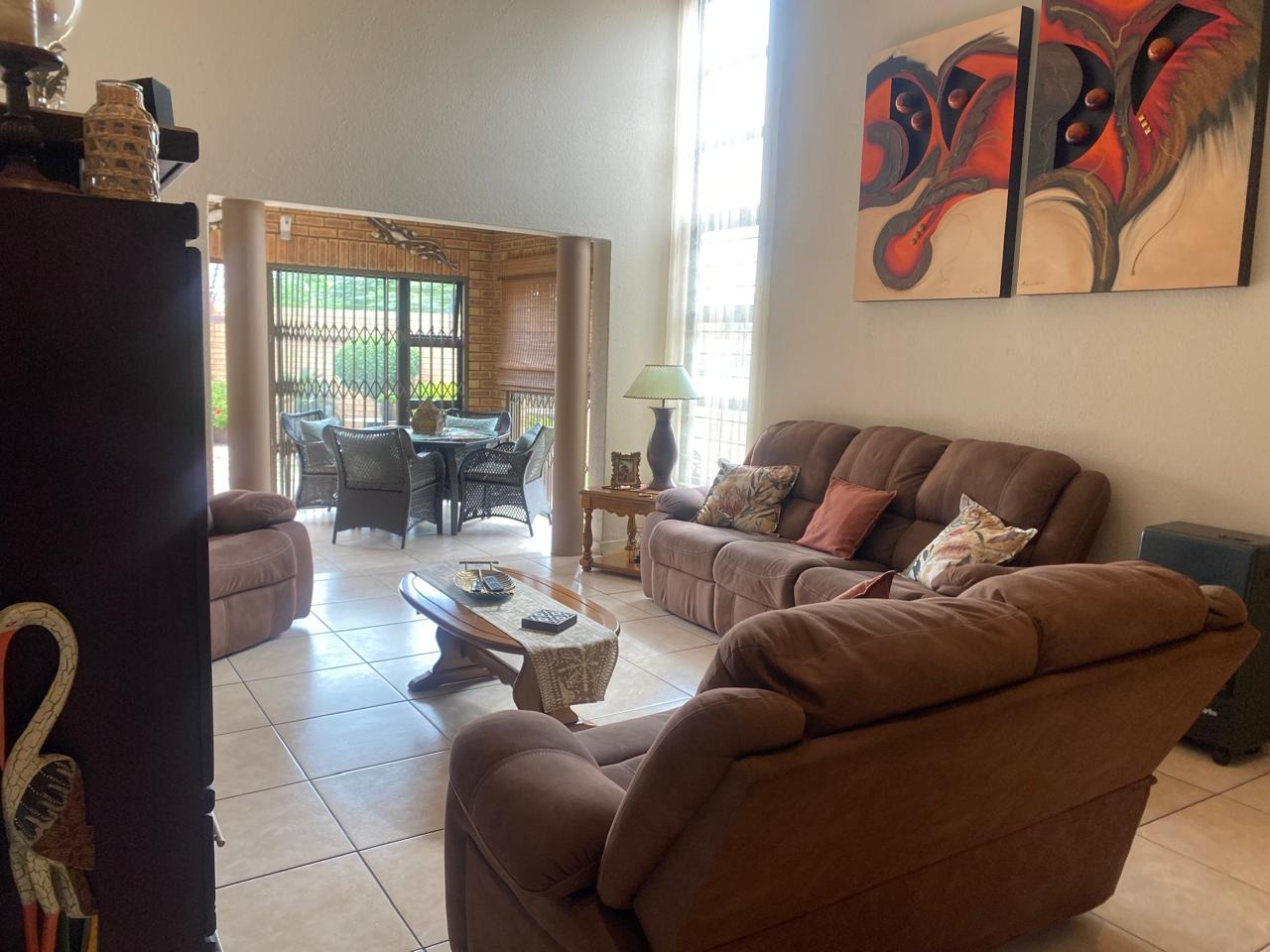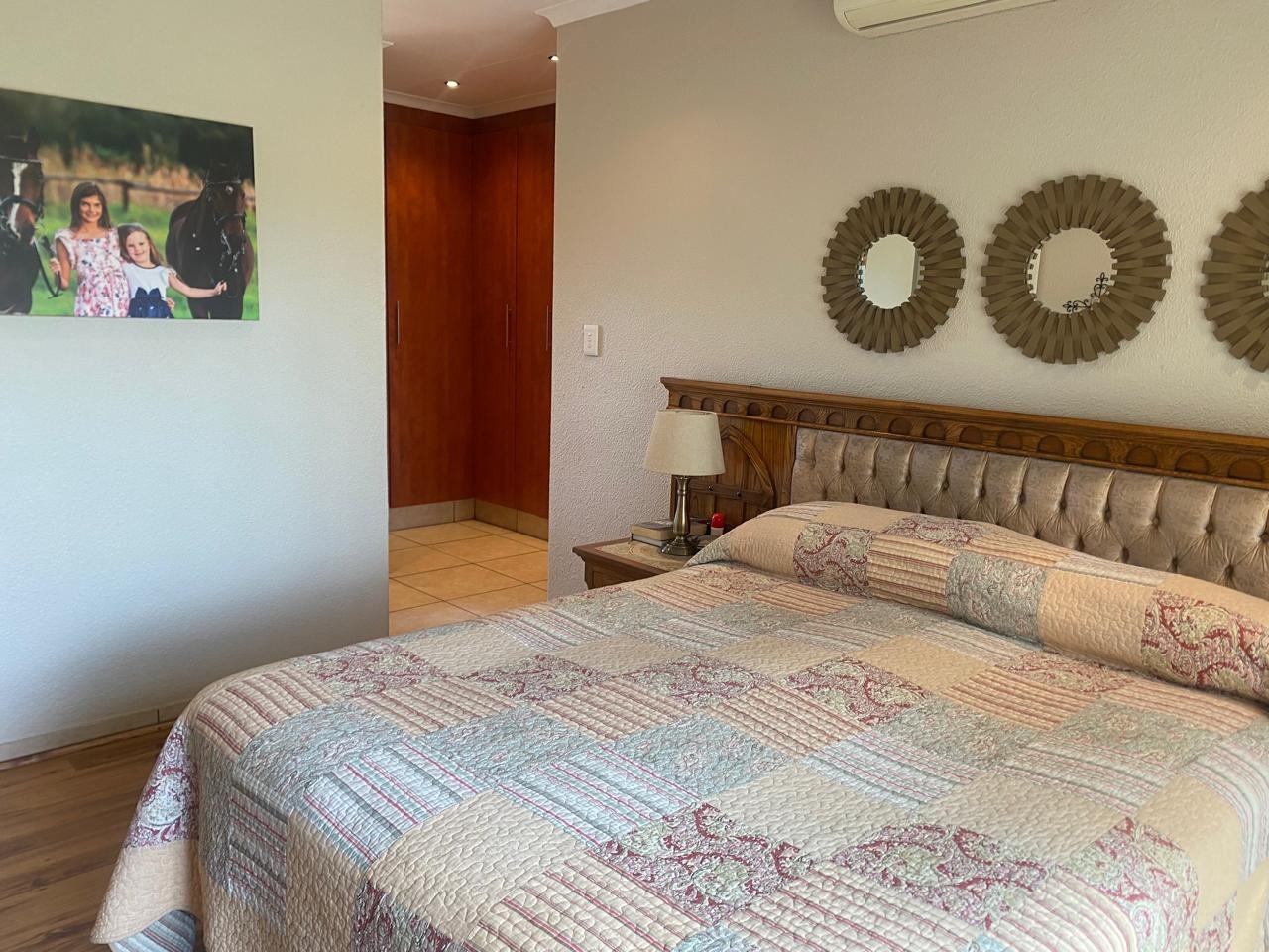 Inside, this home boasts 3 spacious bedrooms, all featuring elegant laminated wooden flooring, creating a modern and inviting space. The main bedroom is a true retreat, complete with air conditioning for year-round comfort. Indulge in the luxury of 2 modern bathrooms, both equipped with jacuzzi-style baths, while the main-en-suite offers a large shower for added convenience. The heart of the home is the ultra-modern kitchen, offering extra cupboard space and a convenient scullery to meet all your culinary needs. The expansive lounge, also air-conditioned, and a separate braai room with a built-in braai make entertaining effortless and enjoyable.