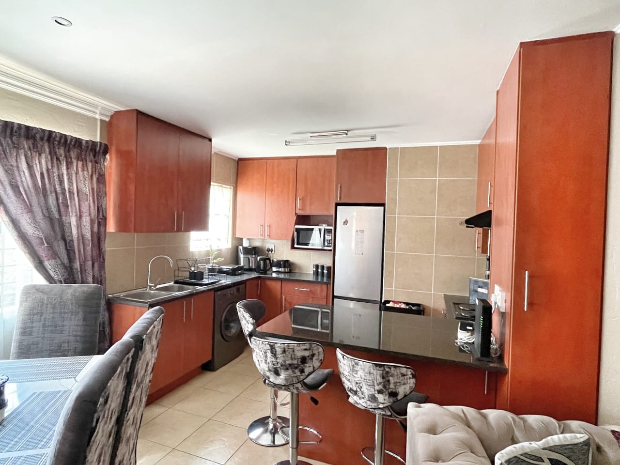 This charming ground floor unit offers a perfect balance of comfort and practicality in a secure, well-maintained complex. It features an open-plan lounge, dining area, and kitchen, complete with granite countertops, built-in oven, hob, extractor fan, ample cupboard space, and a convenient breakfast nook. The layout flows seamlessly, making it ideal for both daily living and entertaining.