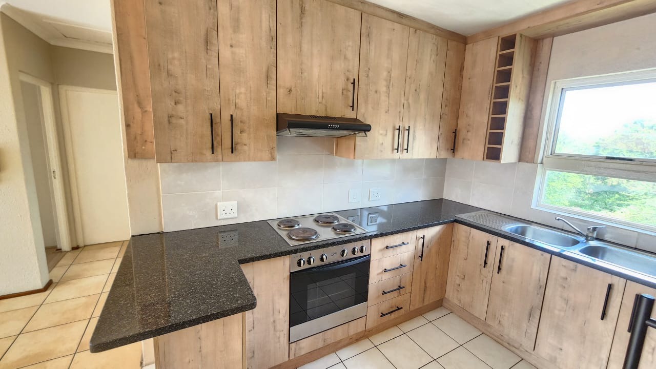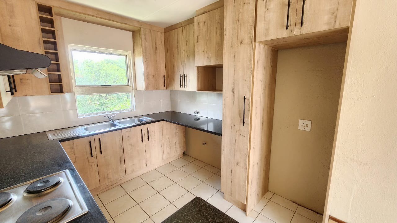 The unit welcomes you with a spacious open-plan lounge and kitchen area with tiled flooring, creating a clean and low-maintenance living space. The kitchen is fitted with modern cupboards, good counter space, and a practical layout, making it ideal for everyday use.