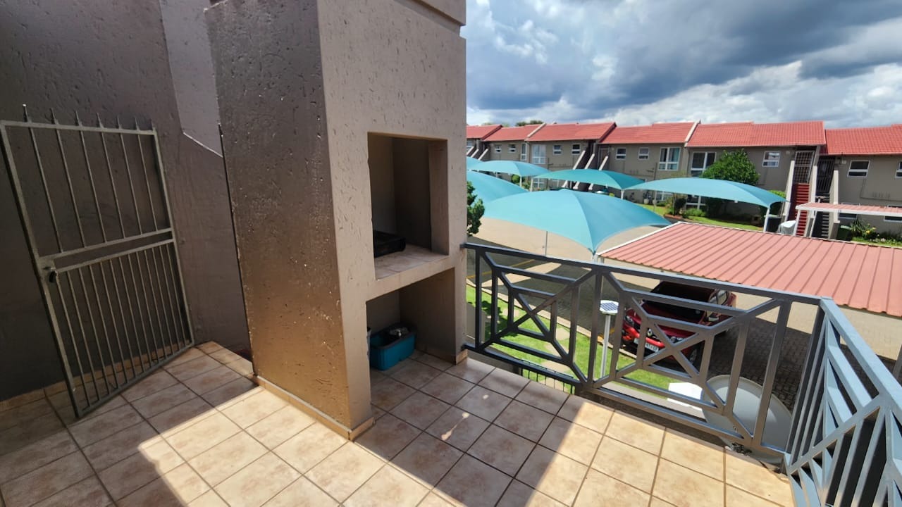 One of the standout features of this unit is the private balcony with a built-in braai, perfect for relaxing or entertaining while enjoying the view over the complex.