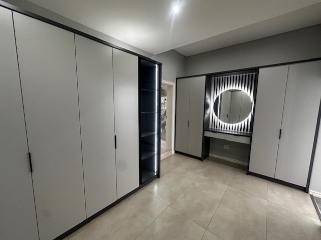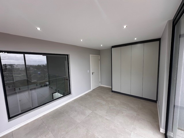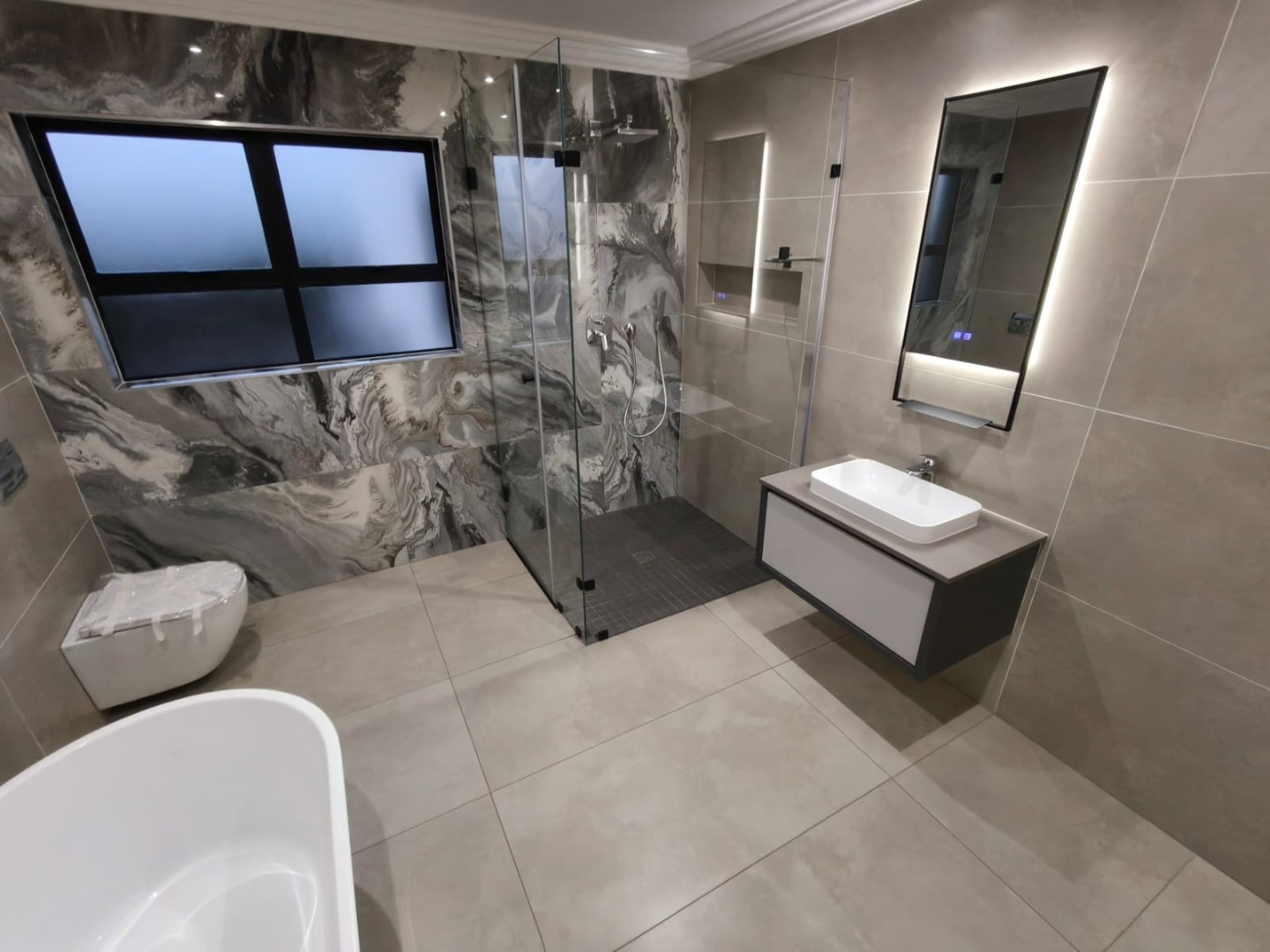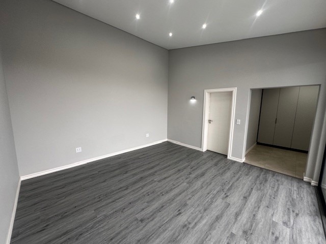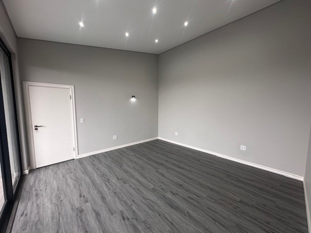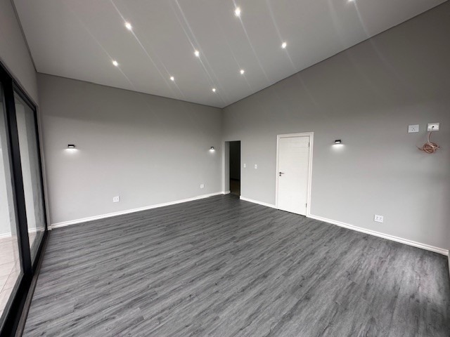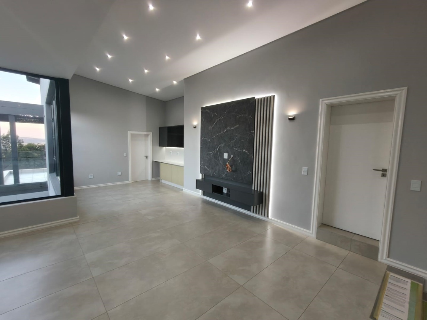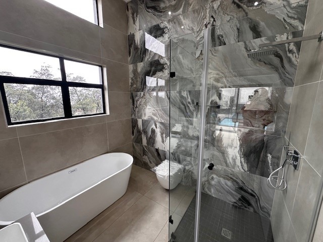 Discover an architectural masterpiece nestled within the prestigious Eye Of Africa Estate, Eikenhof, South Africa. This contemporary residence, spanning an impressive 580 sqm on a 1208 sqm erf, captivates with its sleek lines, expansive glass facades, and sophisticated design, promising an unparalleled living experience from the moment of arrival. The striking exterior, complemented by elegant lighting and minimalist landscaping, sets a tone of refined luxury.