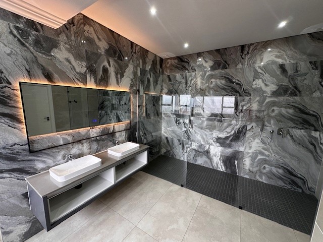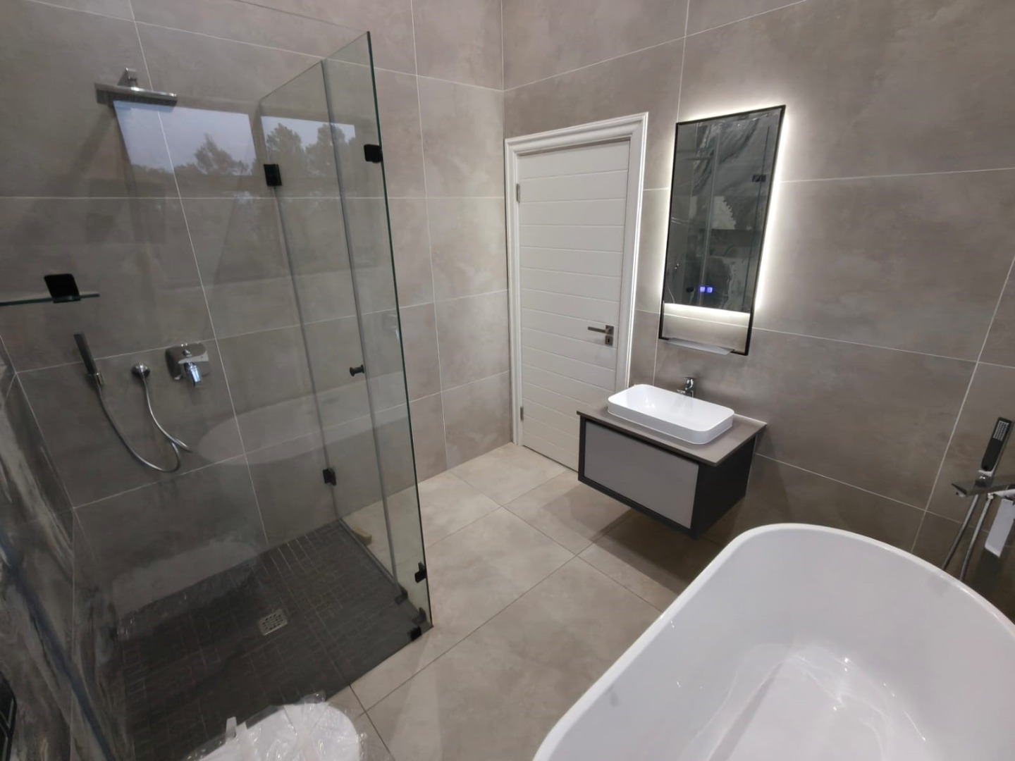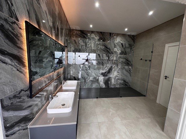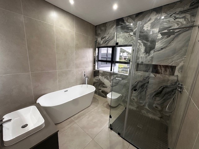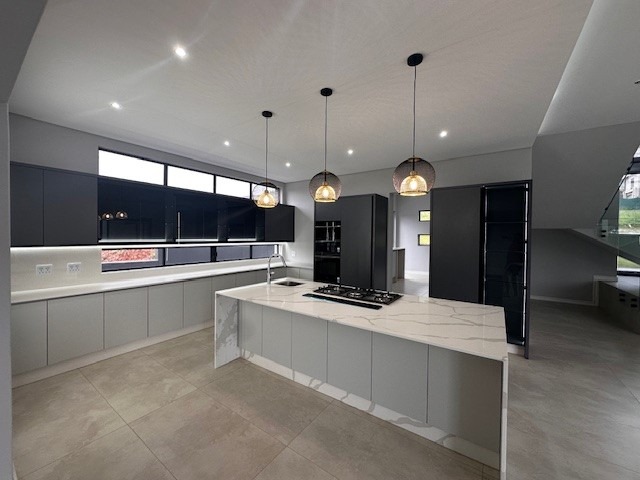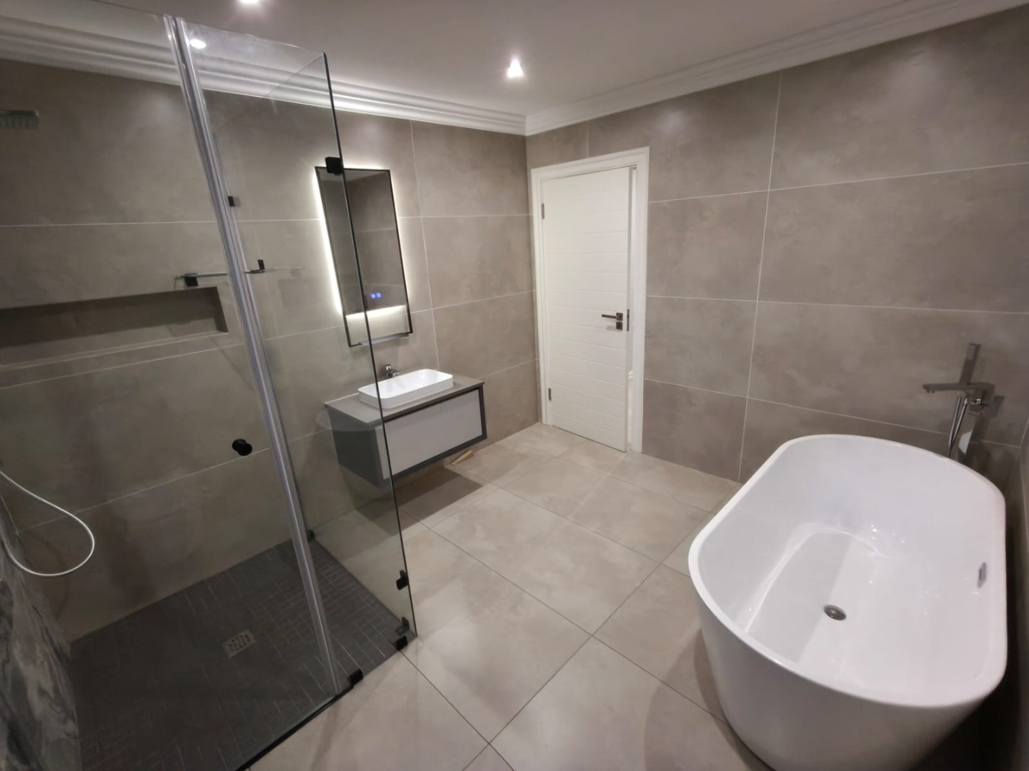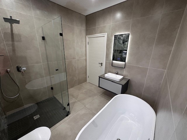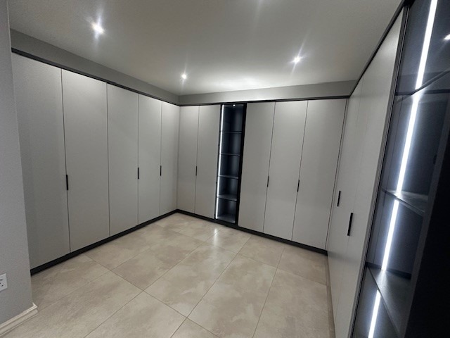 Discover an architectural masterpiece nestled within the prestigious Eye Of Africa Estate, Eikenhof, South Africa. This contemporary residence, spanning an impressive 580 sqm on a 1208 sqm erf, captivates with its sleek lines, expansive glass facades, and sophisticated design, promising an unparalleled living experience from the moment of arrival. The striking exterior, complemented by elegant lighting and minimalist landscaping, sets a tone of refined luxury.