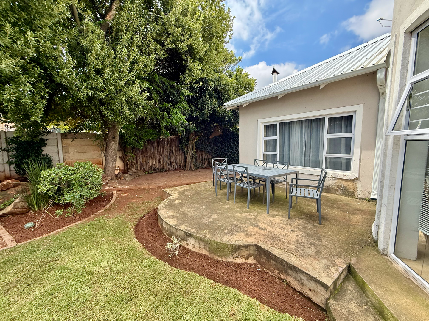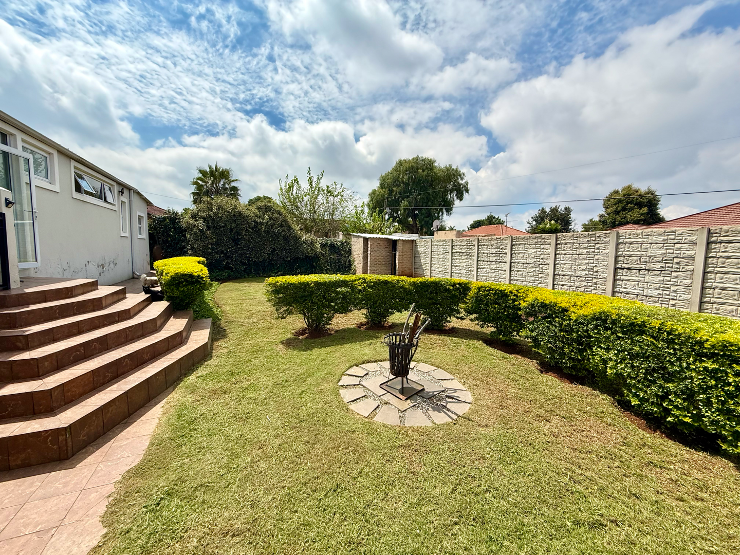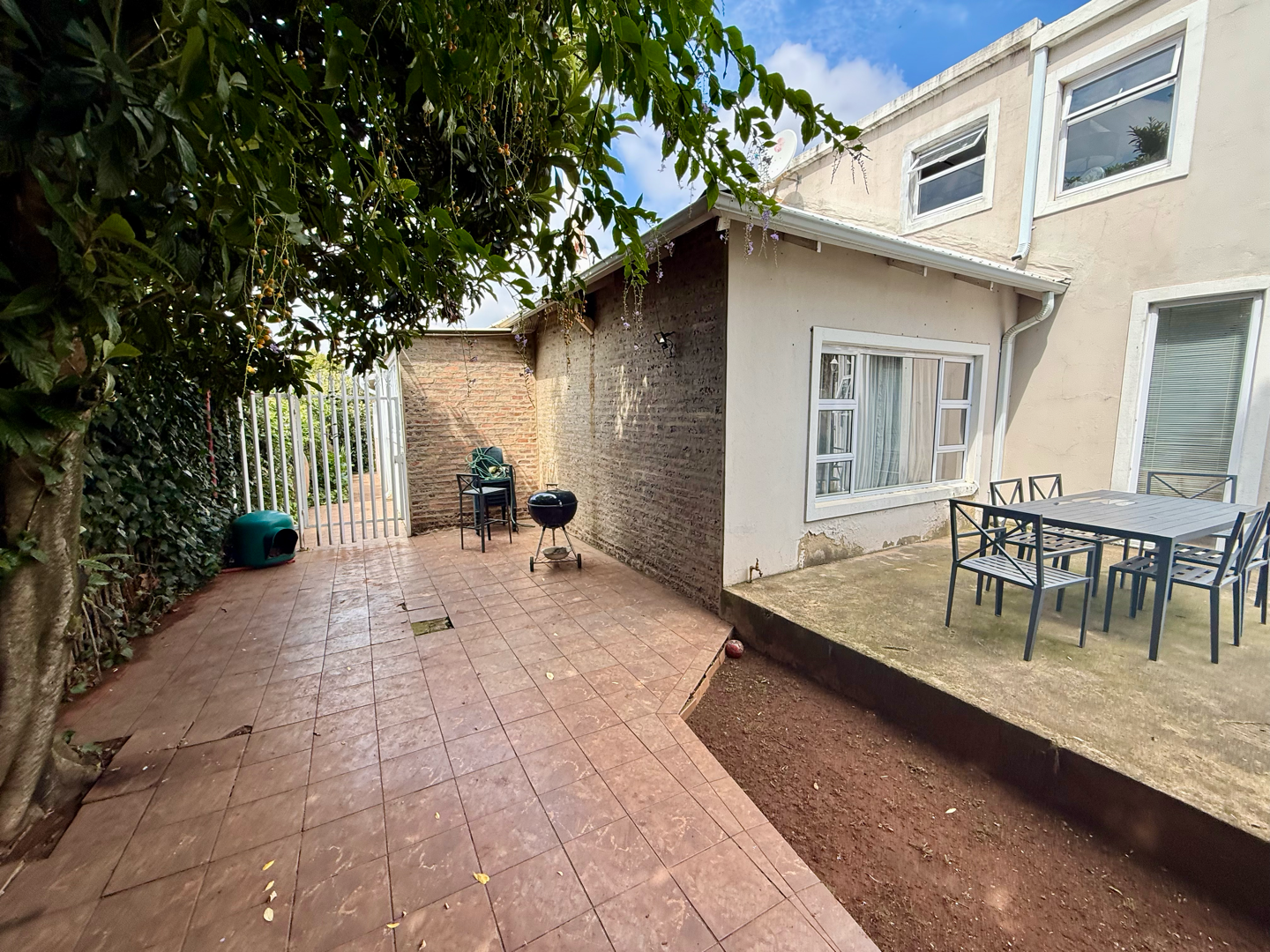 Externally, the property features a well-maintained garden and paved areas, creating an inviting outdoor environment. Practical amenities include three dedicated parking spaces and a wendy house for additional storage or utility. The property is pet-friendly, allowing furry companions to enjoy the secure surroundings.
