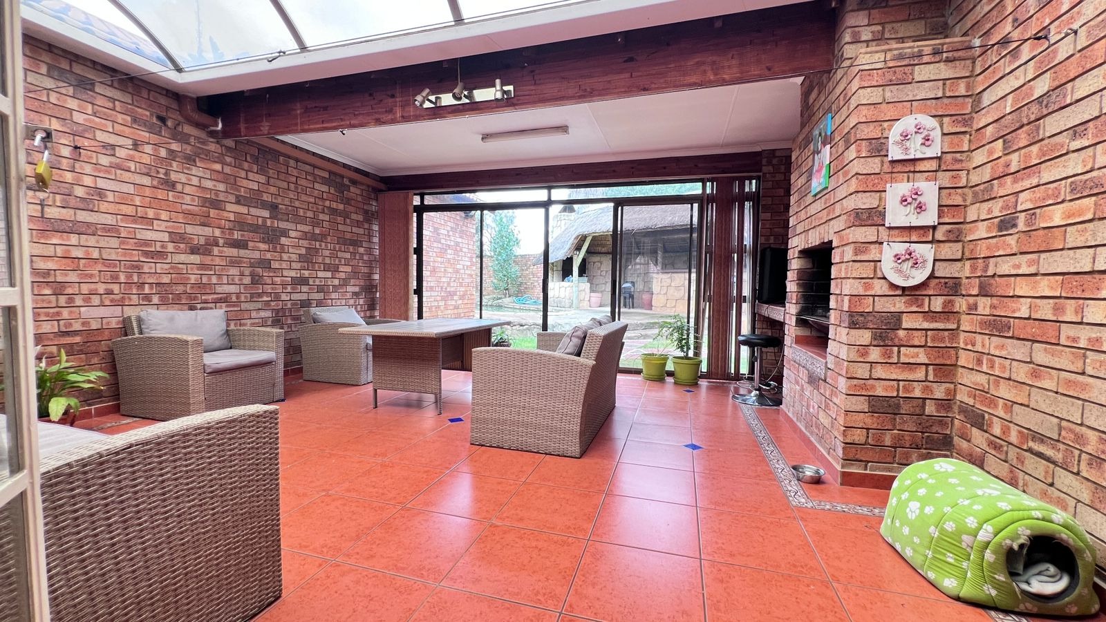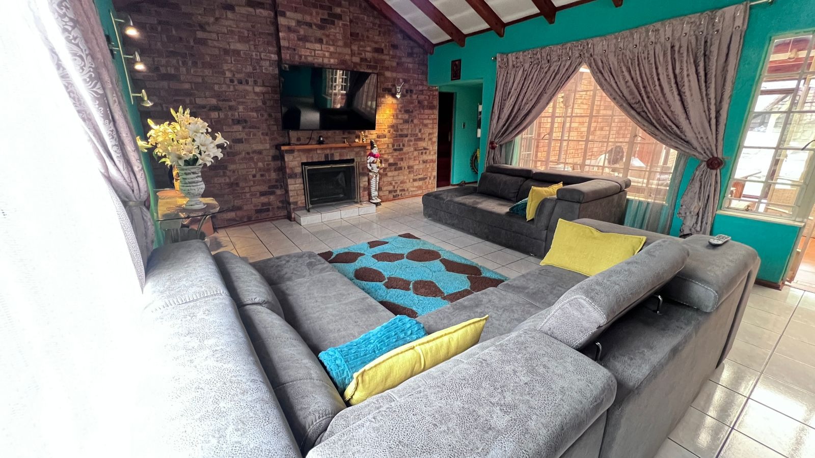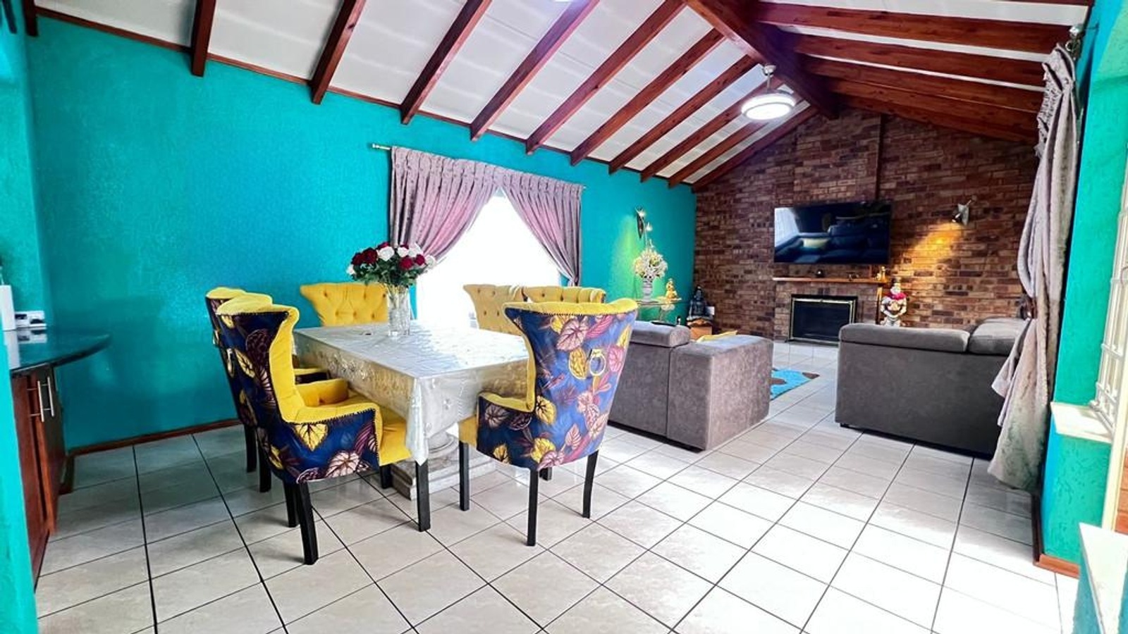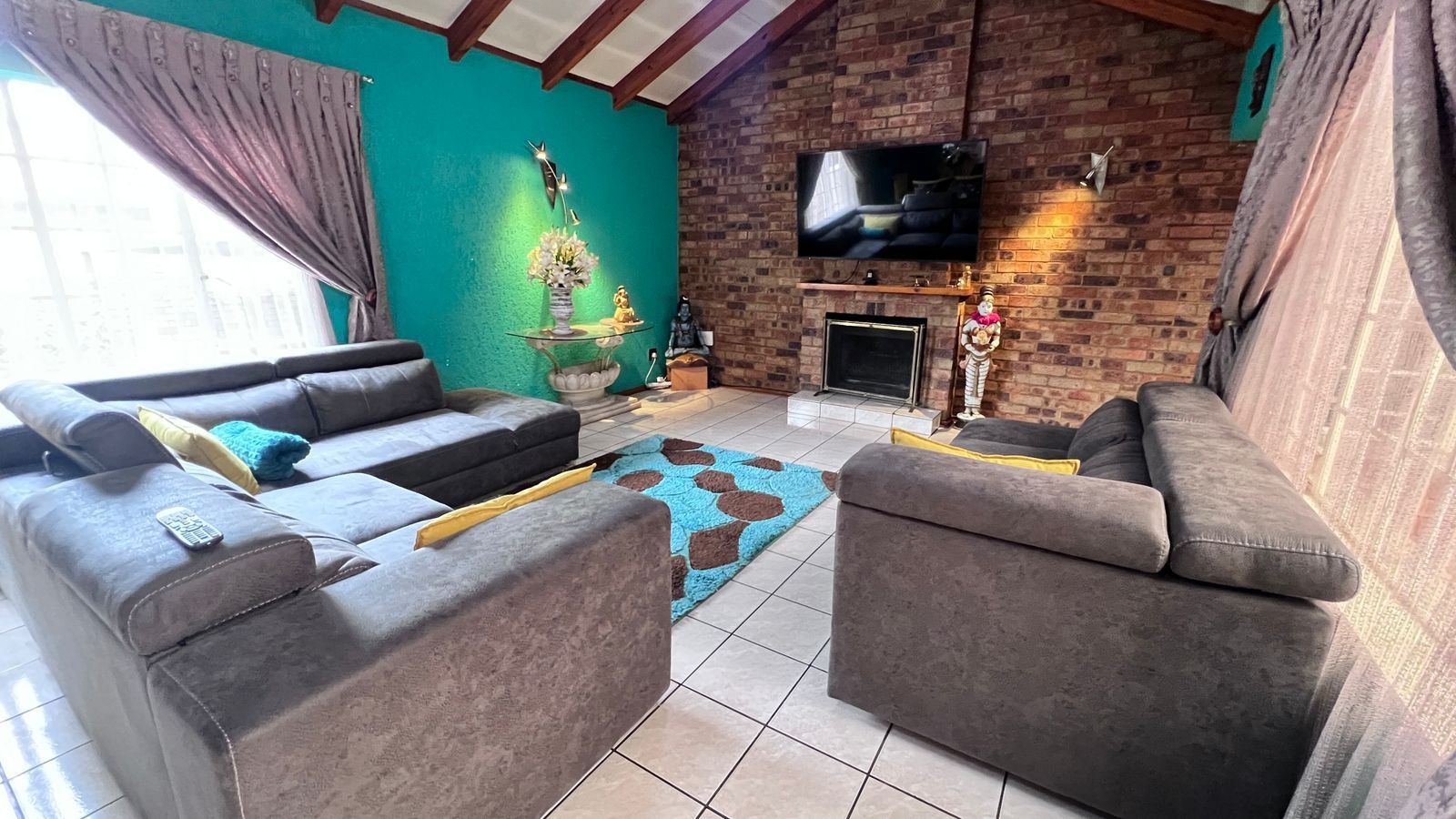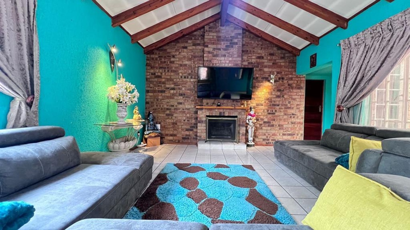 Upon entering, you are welcomed into a spacious open-plan lounge and dining area, beautifully enhanced by a loft-style ceiling, feature fireplace, and elegant finishes throughout. Sliding doors lead effortlessly onto a covered patio with a built-in braai, creating the perfect setting for relaxed entertaining all year round.