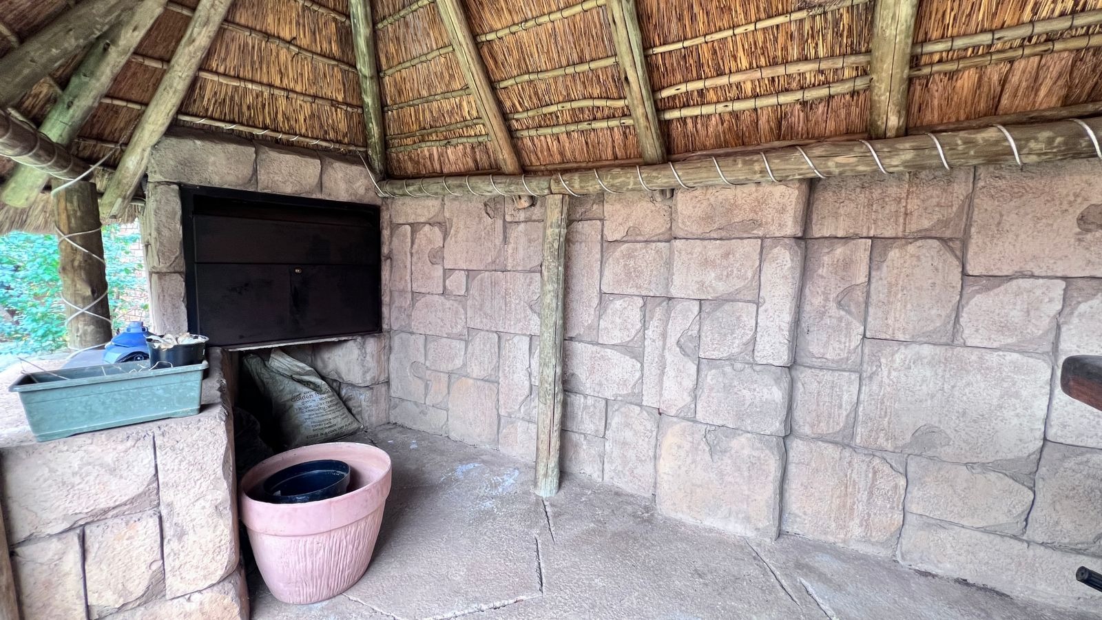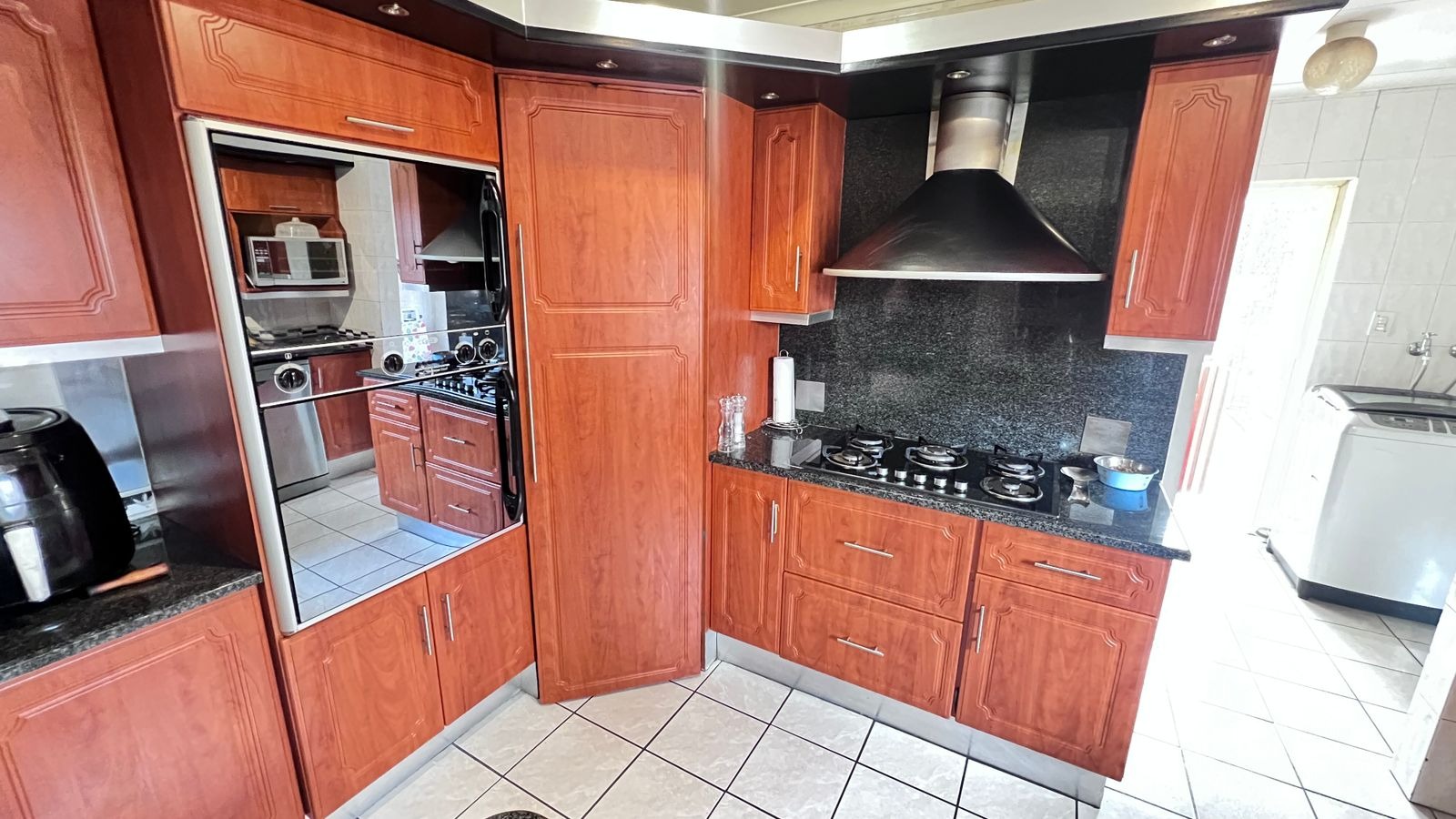 The private, well-appointed kitchen is designed with both functionality and elegance in mind, featuring granite countertops, ample built-in cabinetry, a gas stove, and a separate scullery—ideal for the modern home chef.