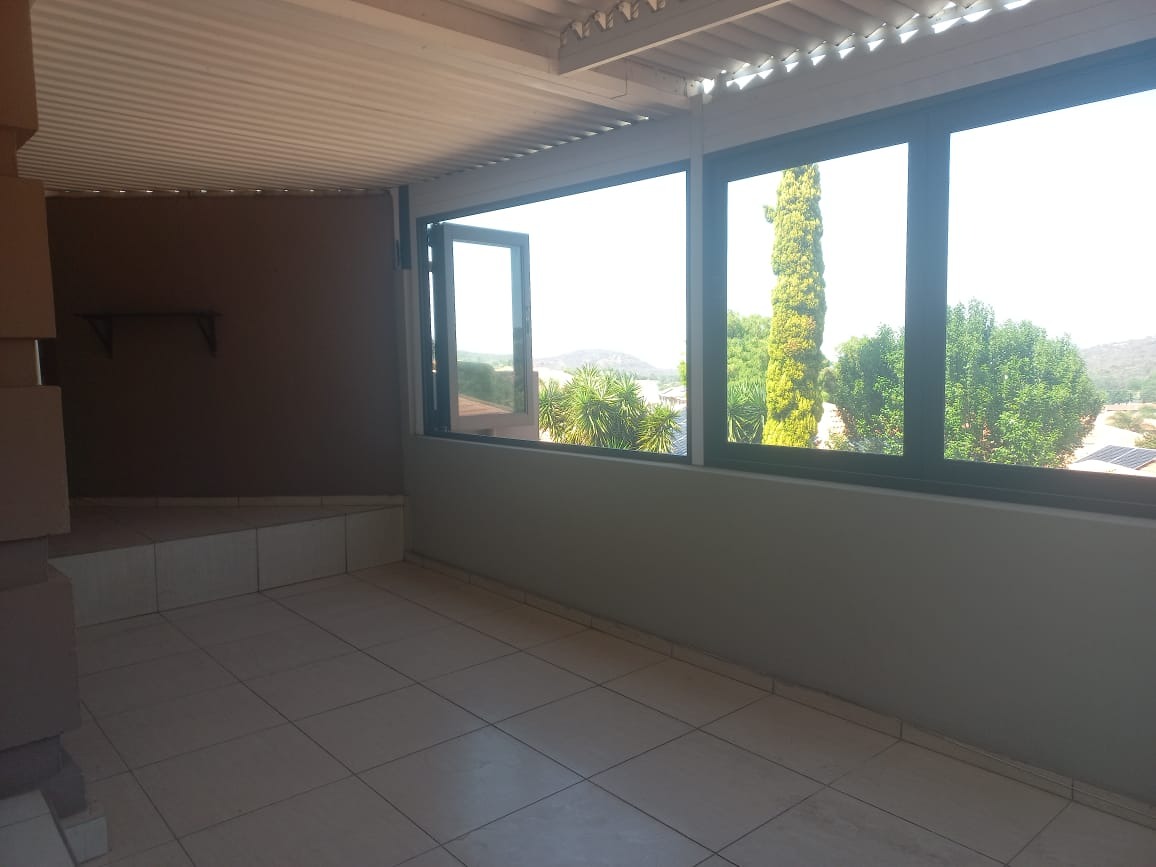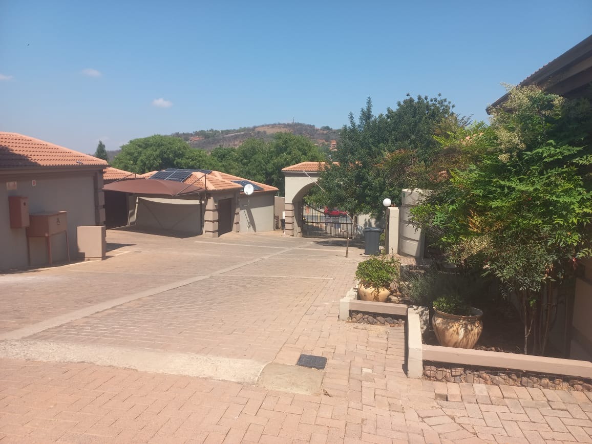 Discover comfortable living in this modern 3-bedroom, 2-bathroom residence located within a secure gated community in Bassonia, Johannesburg. The interior boasts an inviting open-plan layout, seamlessly connecting the lounge, dining room, and a well-appointed kitchen featuring a breakfast bar. Neutral tiled flooring and walls throughout create a clean, contemporary aesthetic, complemented by recessed lighting for a bright ambiance. A dedicated study offers a quiet space for work or hobbies. The property extends its living spaces outdoors with versatile options. Enjoy the expansive enclosed sunroom, offering panoramic views of the surrounding hills and greenery, perfect for year-round relaxation. Additionally, a covered outdoor living area provides a sheltered space for entertaining or unwinding. The exterior showcases a modern architectural design with a consistent style, enhanced by a brick-paved driveway and a well-maintained garden. Security is paramount in this complex, featuring 24-hour security, a security post, access gates, electric fencing, and security gates, ensuring peace of mind for residents. This suburban gem offers a tranquil setting against a backdrop of green hills, providing a desirable lifestyle in a sought-after South African location. Key Features: * 3 Bedrooms, 2 Bathrooms * Open-plan Living Area * Modern Kitchen with Breakfast Bar * Dedicated Study * Enclosed Sunroom with Views * Covered Outdoor Living Area * Double Garage * Secure Gated Community * Paved Driveway & Garden