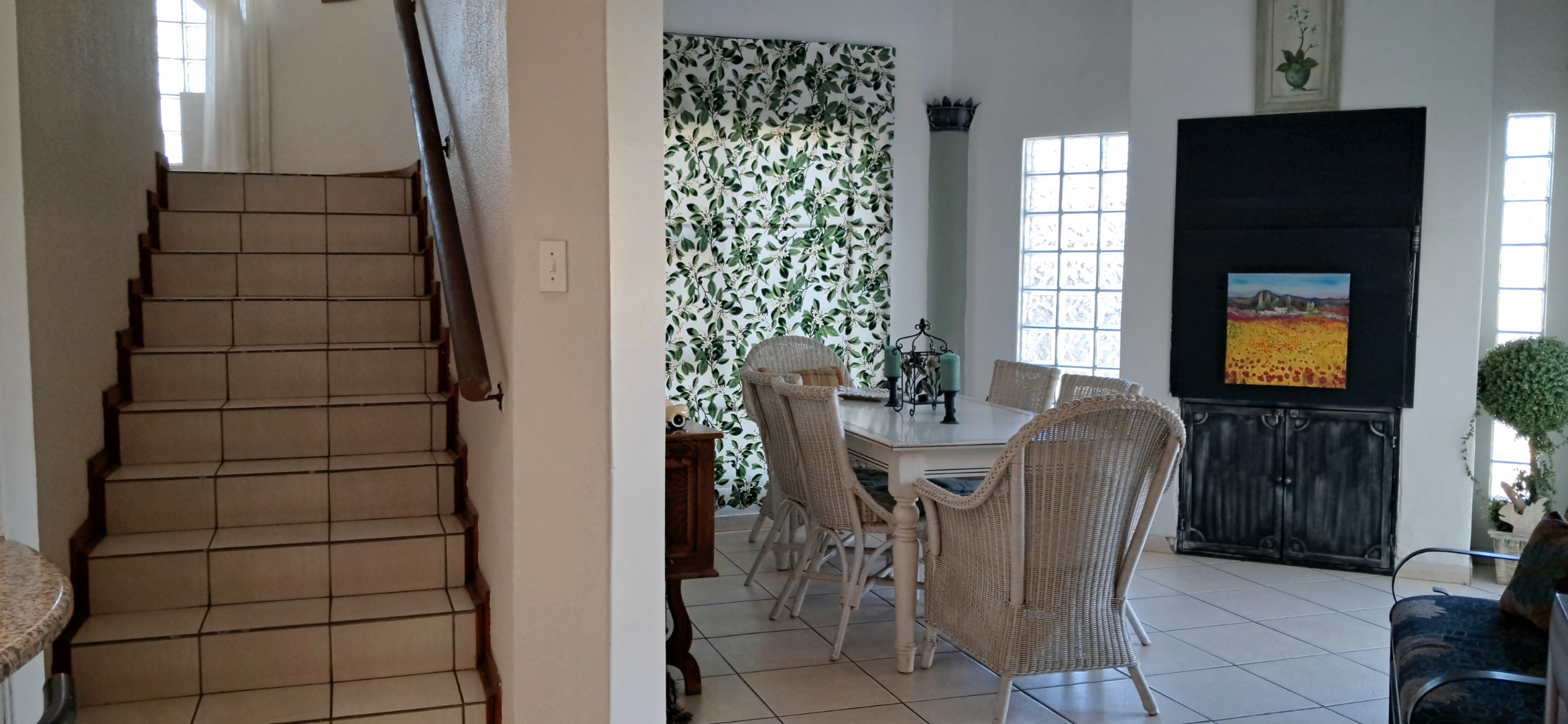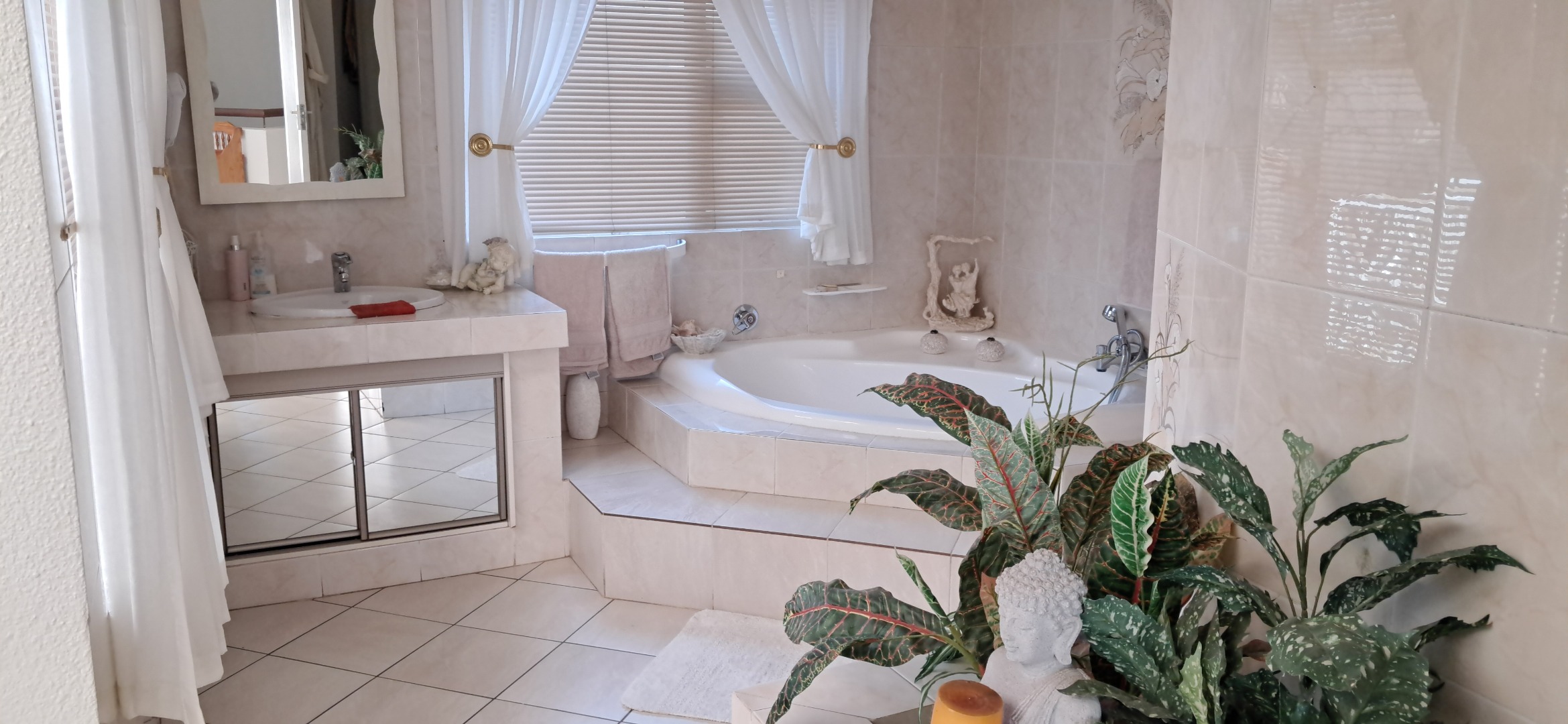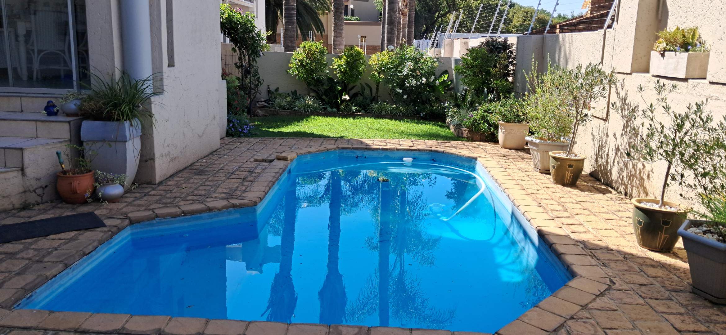 Discover this modern multi-level residence nestled in the desirable Bassonia, Johannesburg. This suburban home presents a striking kerb appeal with its contemporary architectural design, angled dark grey roofs, and light-colored textured walls. Bassonia offers a tranquil yet connected lifestyle, known for its scenic views and family-friendly atmosphere. Step inside to an inviting open-plan layout, featuring tiled flooring throughout. The functional kitchen boasts L-shaped granite countertops, light wood cabinetry, a built-in gas hob, double oven, and a dedicated wine fridge, perfect for culinary enthusiasts. Adjacent dining areas, including two distinct spaces, flow seamlessly, providing ample room for entertaining. A cozy fireplace adds warmth and ambiance to the living space. The property offers three comfortable bedrooms and three and a half bathrooms, including an en-suite, ensuring privacy and convenience for all residents. A dedicated study provides an ideal space for work or quiet contemplation. Natural light floods the interiors, enhancing the welcoming ambiance. Enjoy the South African climate with exceptional outdoor features. A private, well-maintained garden with diverse landscaping and paving surrounds a compact swimming pool, perfect for relaxation. The property also includes a balcony with intricate railings, a patio, and a driveway leading to two garages, complemented by staff quarters. Security is paramount, with 24-hour security, an access gate, electric fencing, and robust security gates on ground-floor windows and doors, ensuring peace of mind. The property is totally walled, offering enhanced privacy and safety. Key Features: * 3 Bedrooms, 3.5 Bathrooms (including 1 en-suite) * Open-plan living with 2 dining areas and 1 lounge * Modern kitchen with granite countertops, gas hob, double oven, and wine fridge * Private swimming pool and well-maintained garden * Balcony, patio, and paved driveway with 2 garages * Dedicated study and staff quarters * 24-hour security, electric fencing, and access gate * Pets allowed