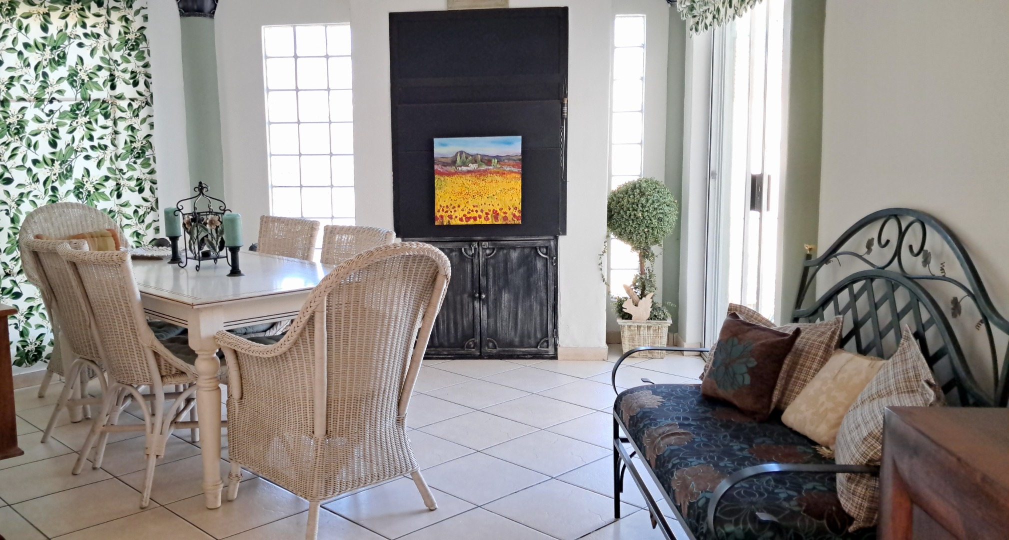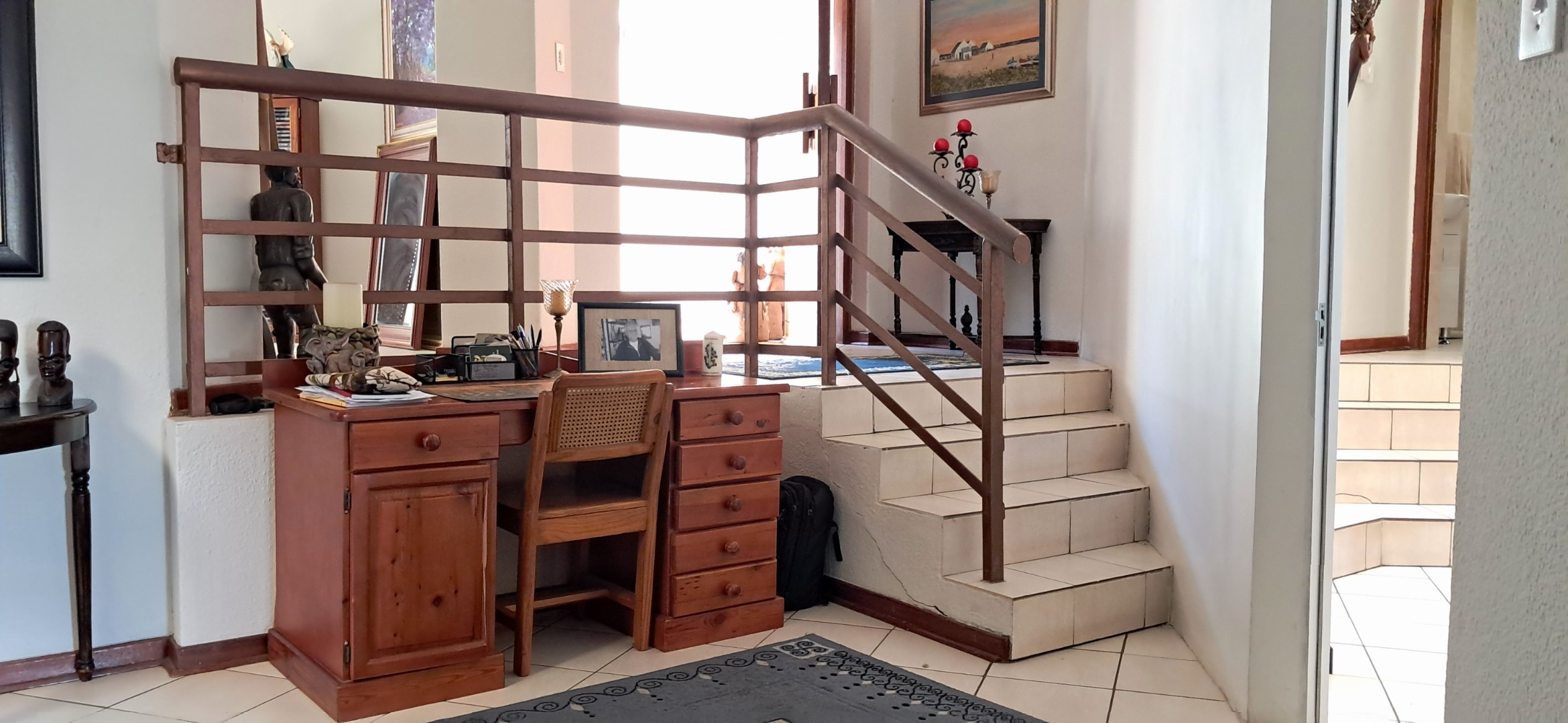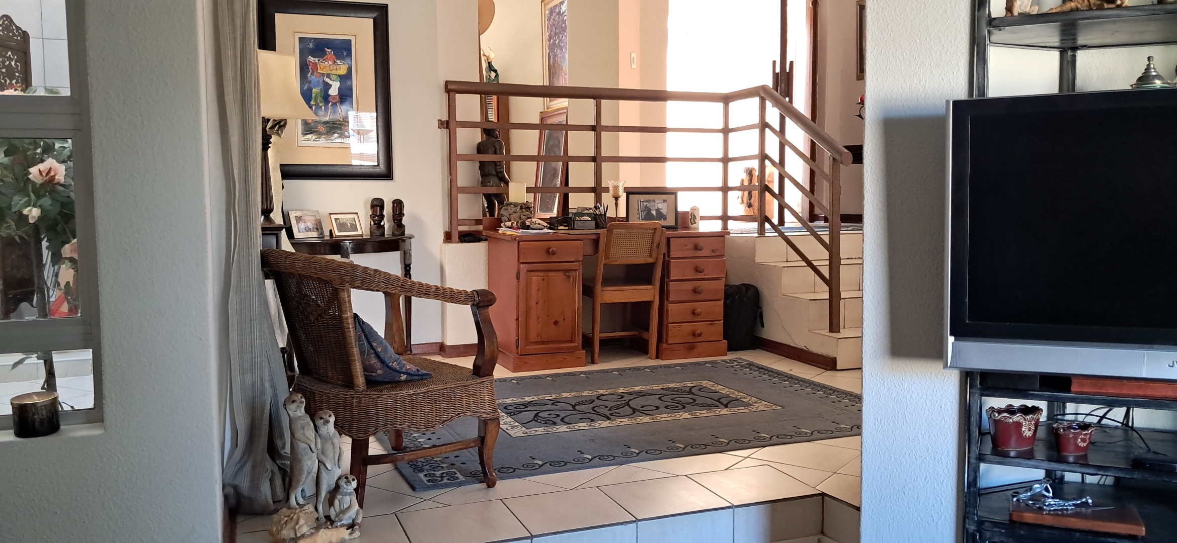 Discover this modern multi-level residence nestled in the desirable Bassonia, Johannesburg. This suburban home presents a striking kerb appeal with its contemporary architectural design, angled dark grey roofs, and light-colored textured walls. Bassonia offers a tranquil yet connected lifestyle, known for its scenic views and family-friendly atmosphere. Step inside to an inviting open-plan layout, featuring tiled flooring throughout. The functional kitchen boasts L-shaped granite countertops, light wood cabinetry, a built-in gas hob, double oven, and a dedicated wine fridge, perfect for culinary enthusiasts. Adjacent dining areas, including two distinct spaces, flow seamlessly, providing ample room for entertaining. A cozy fireplace adds warmth and ambiance to the living space. The property offers three comfortable bedrooms and three and a half bathrooms, including an en-suite, ensuring privacy and convenience for all residents. A dedicated study provides an ideal space for work or quiet contemplation. Natural light floods the interiors, enhancing the welcoming ambiance. Enjoy the South African climate with exceptional outdoor features. A private, well-maintained garden with diverse landscaping and paving surrounds a compact swimming pool, perfect for relaxation. The property also includes a balcony with intricate railings, a patio, and a driveway leading to two garages, complemented by staff quarters. Security is paramount, with 24-hour security, an access gate, electric fencing, and robust security gates on ground-floor windows and doors, ensuring peace of mind. The property is totally walled, offering enhanced privacy and safety. Key Features: * 3 Bedrooms, 3.5 Bathrooms (including 1 en-suite) * Open-plan living with 2 dining areas and 1 lounge * Modern kitchen with granite countertops, gas hob, double oven, and wine fridge * Private swimming pool and well-maintained garden * Balcony, patio, and paved driveway with 2 garages * Dedicated study and staff quarters * 24-hour security, electric fencing, and access gate * Pets allowed