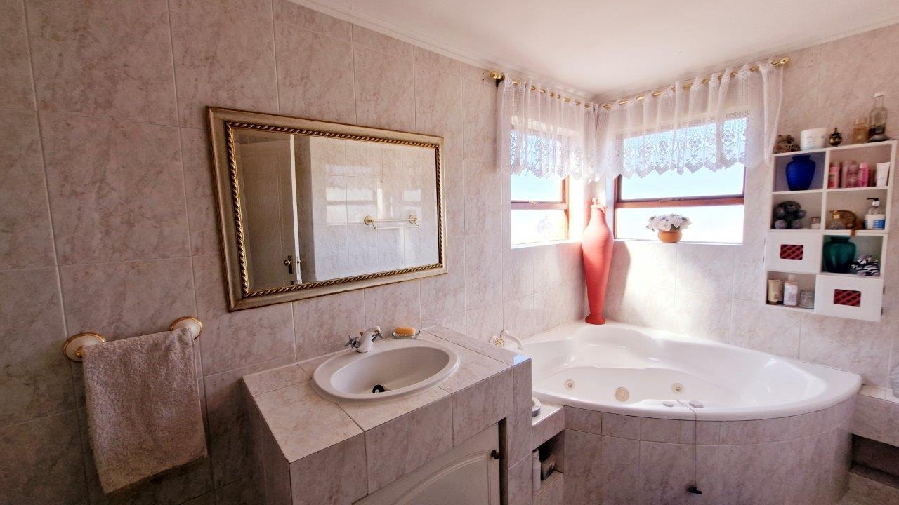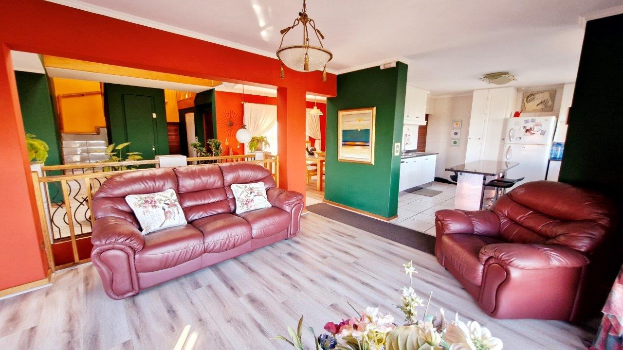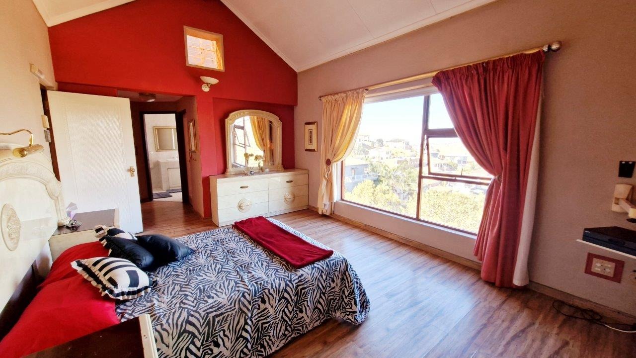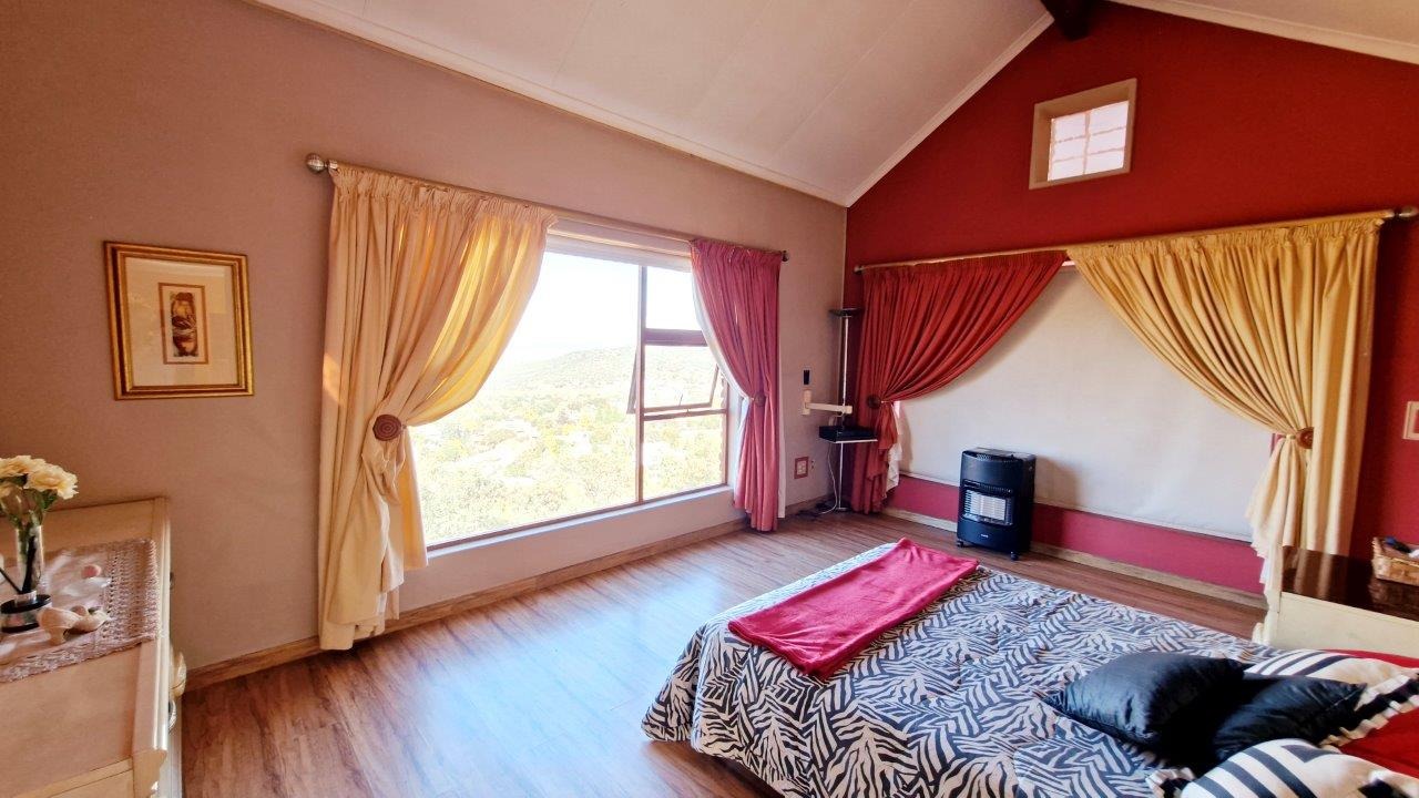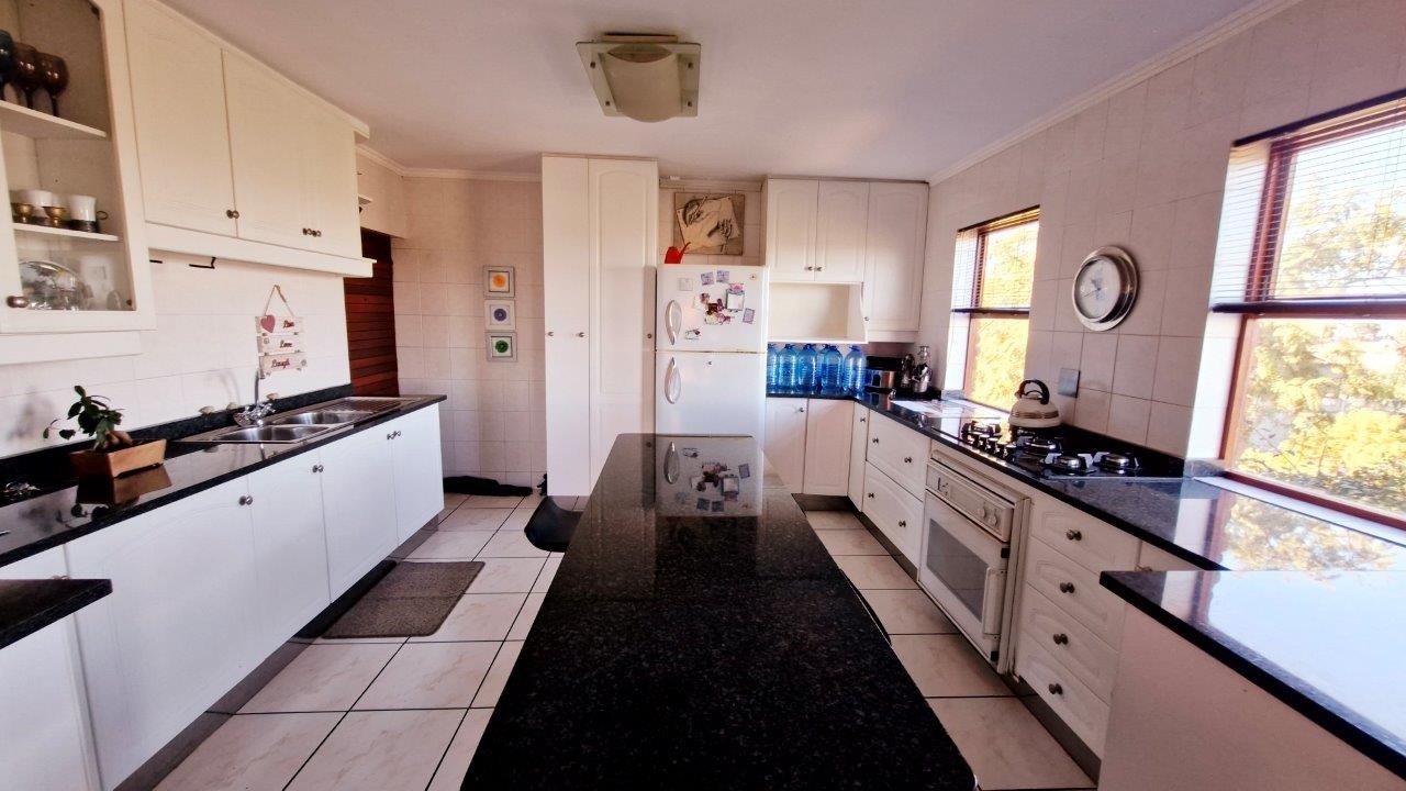 Large sliding doors provide abundant natural light and lead to a private balcony and patio, perfect for relaxation and enjoying the scenic views. Outdoor living is enhanced by a private garden and a built-in braai, ideal for entertaining. Two garages offer secure parking, and pets are allowed. Security is paramount with an access gate, electric fencing, CCTV, and security gates. For efficiency, the home includes a battery inverter and water tanks.