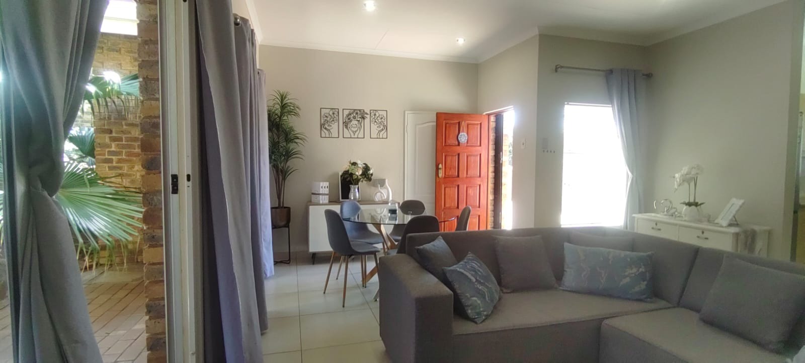 Nestled in suburban Bassonia, Johannesburg, this substantial residence offers a prime South African living experience. Showcasing robust kerb appeal, this property features durable brick construction and a well-maintained exterior. A paved driveway leads to an ornate gate, flanked by high brick walls and electric fencing, ensuring enhanced privacy and security. Ample off-street parking includes a single garage, a shade net carport, and a double garage, accommodating multiple vehicles. Inside, this expansive home boasts five generously sized bedrooms and five bathrooms, providing comfort and convenience. The living spaces include a dedicated dining room and two spacious lounges, offering versatile areas for relaxation and entertaining. A well-appointed kitchen caters to culinary needs, complemented by the property's dual living potential for added flexibility. Outdoor living is well-catered for with a private patio and balcony, perfect for enjoying the South African climate. The 888 sqm erf provides a substantial footprint, complemented by three garages and additional covered parking. Extensive exterior paving offers practical, low-maintenance outdoor areas. Security is paramount, with an alarm system, electric fencing, and visible '24 Hour Armed Response' signage providing peace of mind. Sustainability features include solar panels and a gas geyser, contributing to energy efficiency. Fibre-ready connectivity ensures high-speed internet for modern living. Key Features: * Five Bedrooms, Five Bathrooms * Two Lounges, One Dining Room * Three Garages, Covered Parking * Private Patio & Balcony * 888 sqm Erf Size * Alarm System & Electric Fencing * Solar Panels & Gas Geyser * Fibre Connectivity * Dual Living Potential