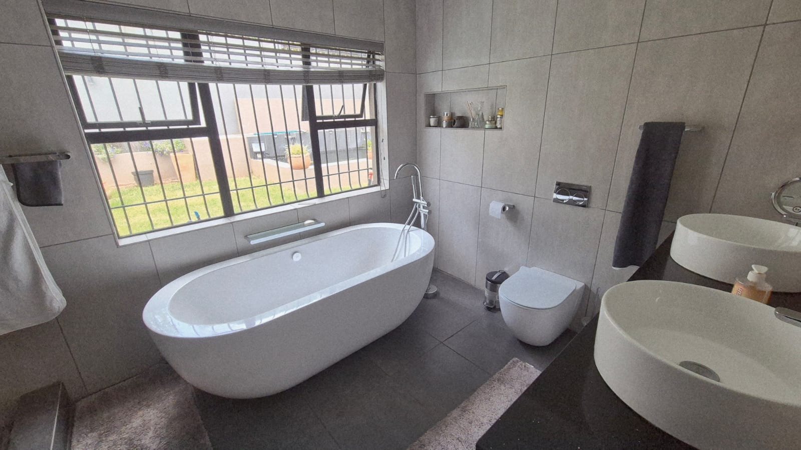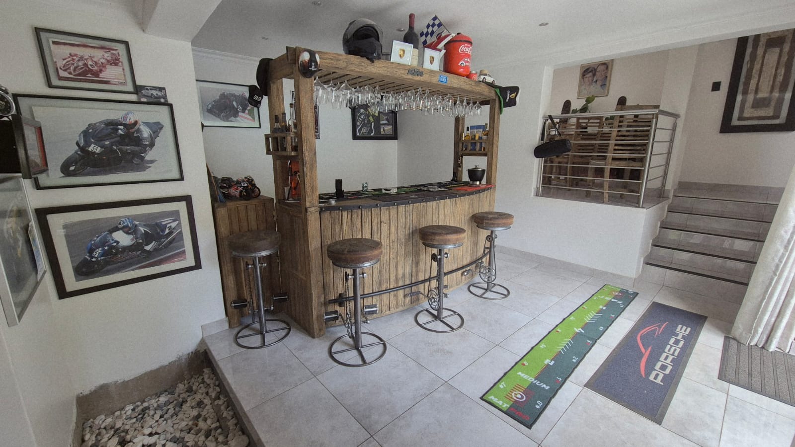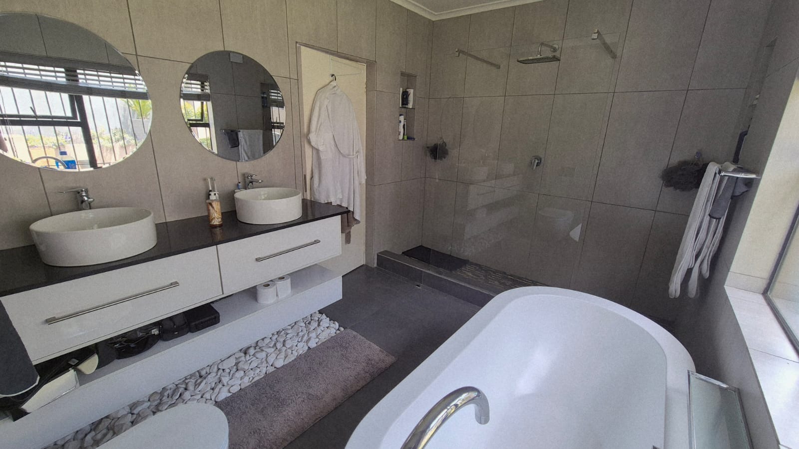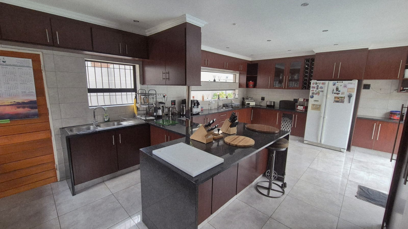 The main house consists of 3.5 bathrooms, with the main en-suite plus having a walk-in closet. 2 lounges, dining room and enormous kitchen with back yard access. There is also a bar area which also leads out to the back gard and pool are and braai/entertainment area. There is a beautiful jacuzzi pool and fabulous Koi pond.