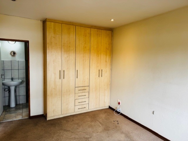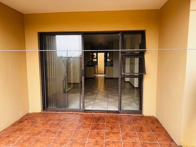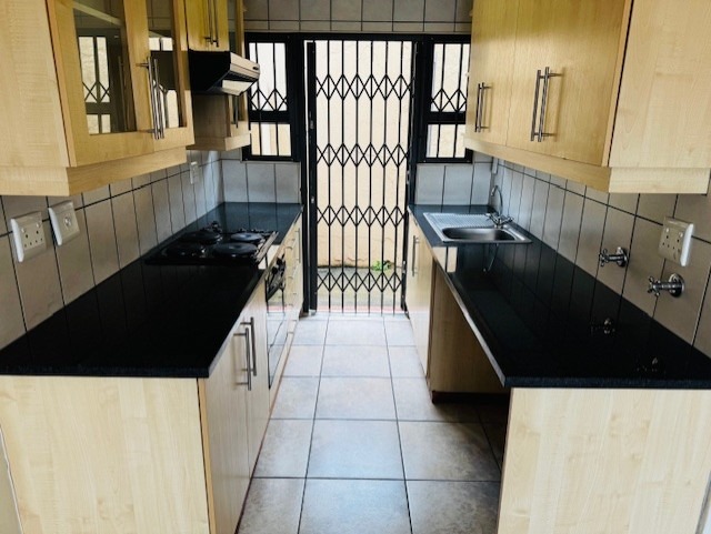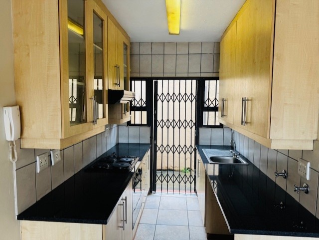 The unit offers the following: open-plan lounge / modern fitted kitchen with granite tops and more. Space with fittings for washing machine. Trellidor burglar bars all round the dwelling. Two carpeted bedrooms with built-in-wardrobes (main bedroom with en-suite - shower / basin / toilet) 2 bathrooms in total, 1 parking bay. Prepaid electricity.