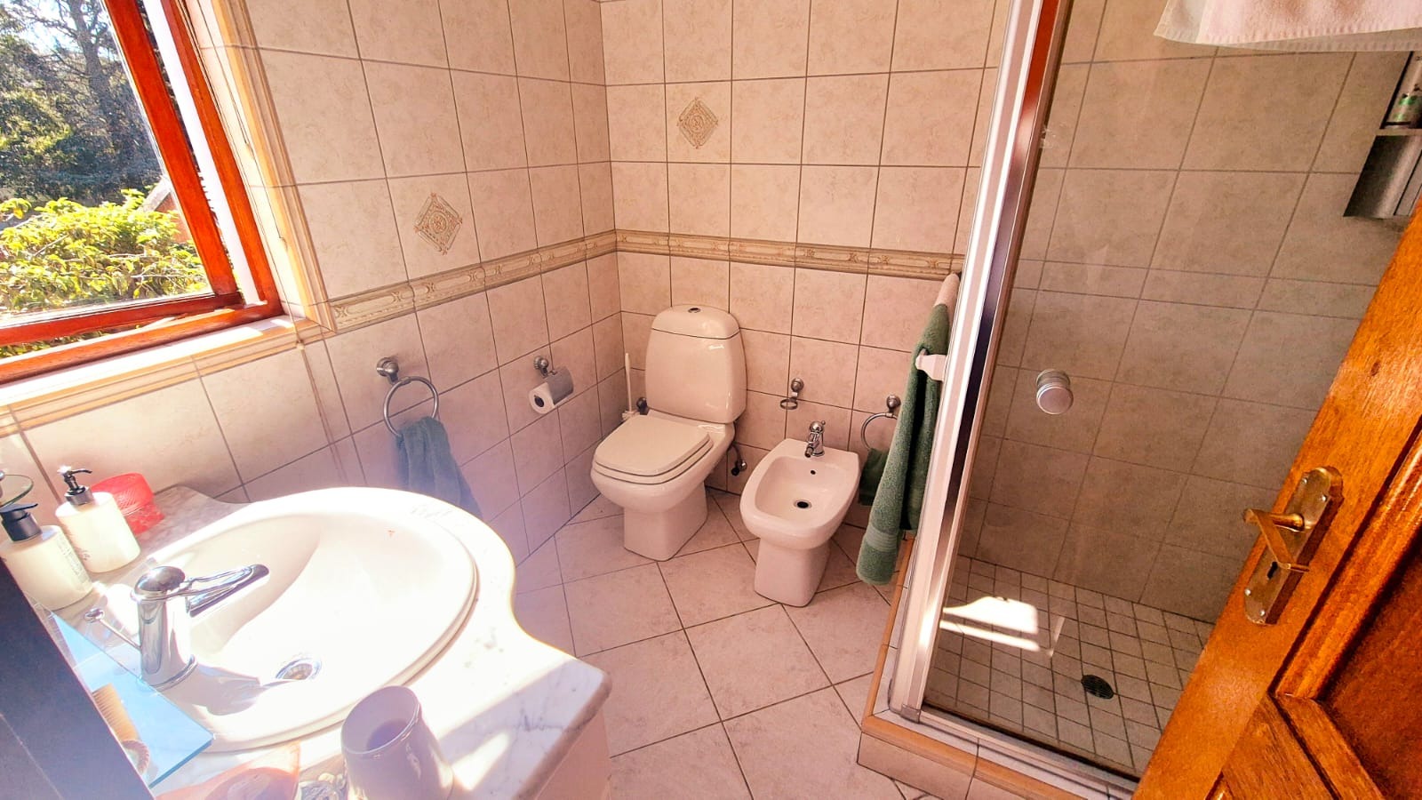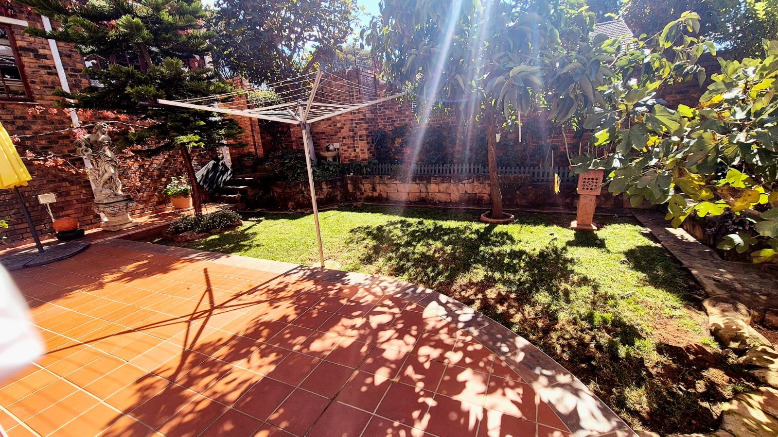 The garden provides a beautiful area for relaxation with a beautifully designed pool, lawn, braai and closed area with bathroom nearby.