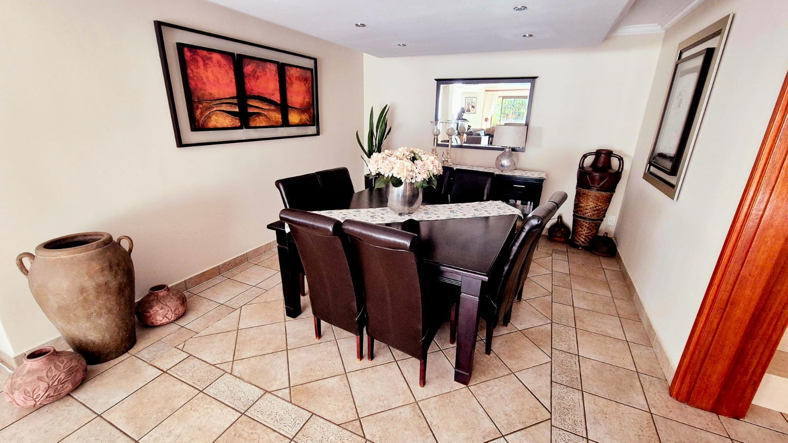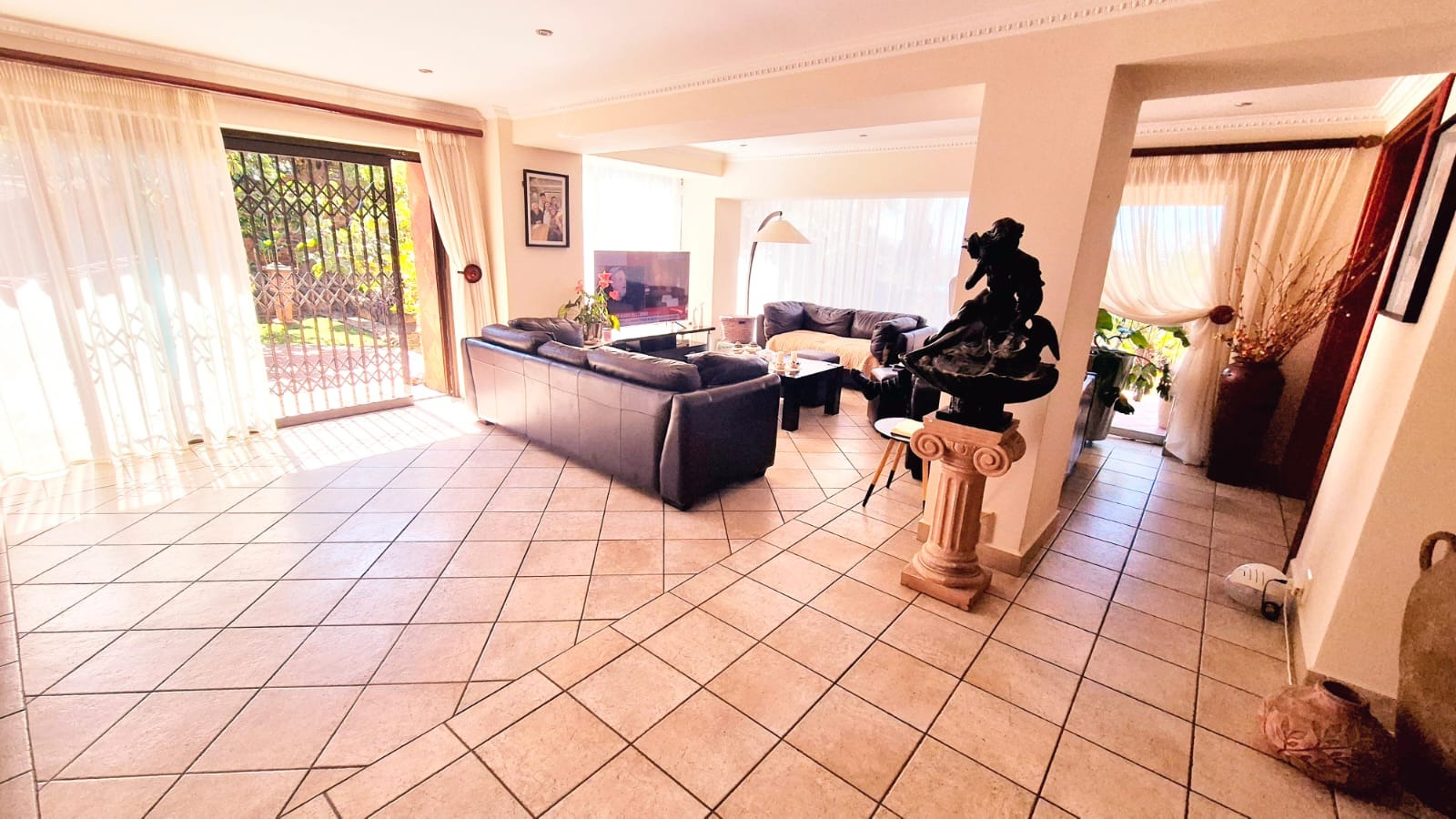 For formal occasions there is a dedicated formal dining room. It has an open plan in conjunction with the Dining room. Beautiful views of the pool and outdoors. Also has a beautiful courtyard to add to the family gatherings.