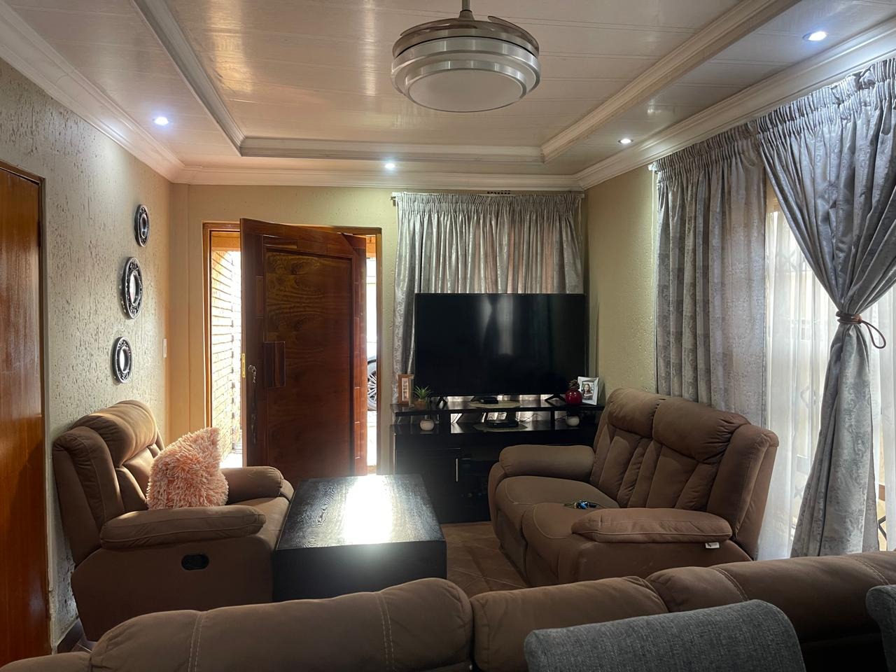The property features 3 extra-large bedrooms and 2 modern, neat bathrooms, providing ample space for family living. A spacious lounge and dining area create a welcoming environment, while the kitchen is designed for both style and functionality.