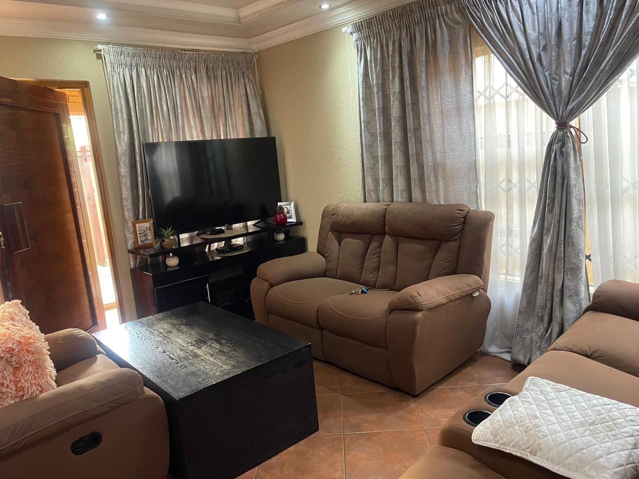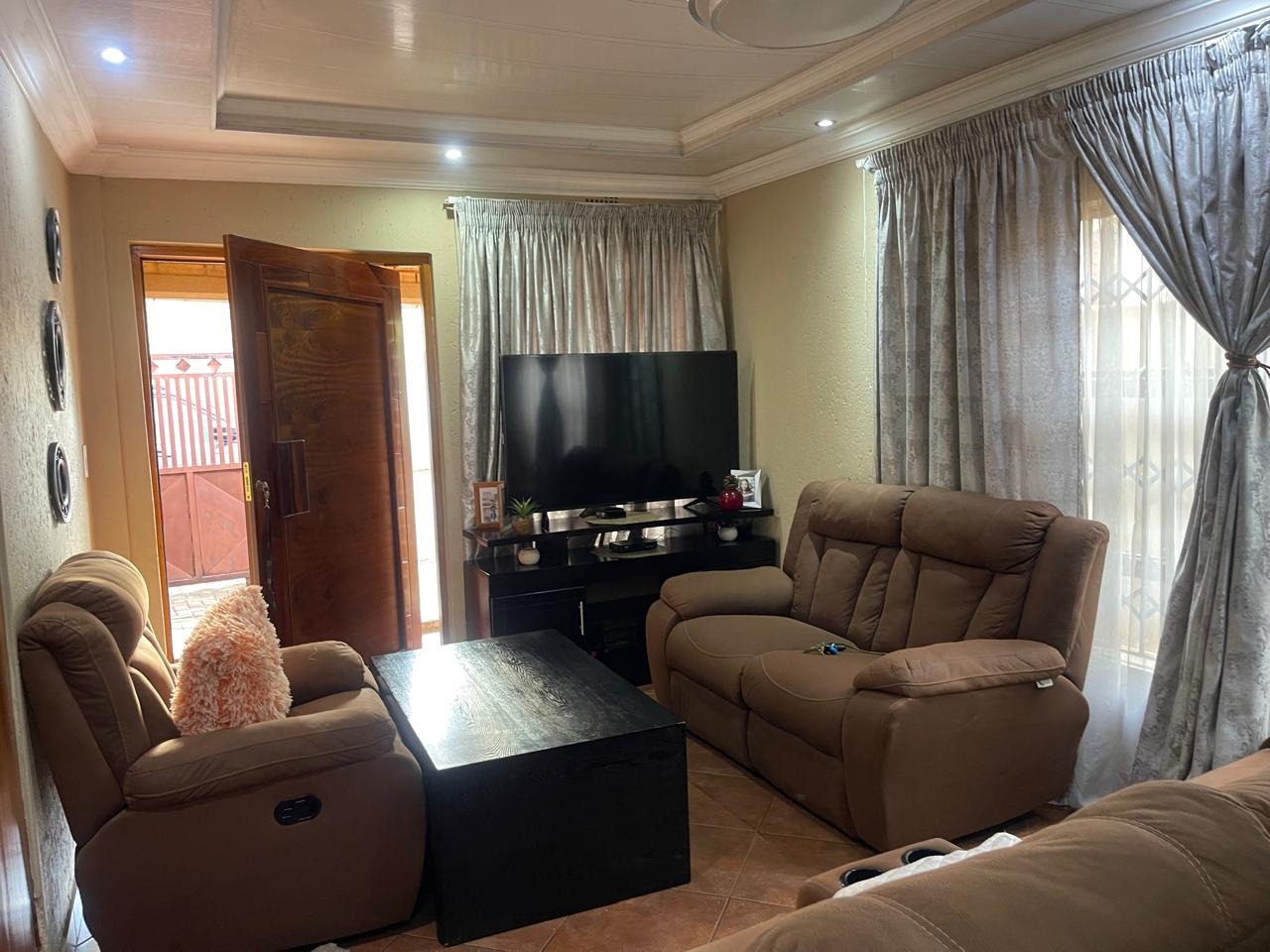 The property features 3 extra-large bedrooms and 2 modern, neat bathrooms, providing ample space for family living. A spacious lounge and dining area create a welcoming environment, while the kitchen is designed for both style and functionality.