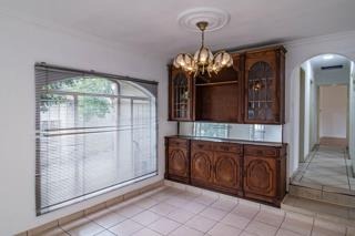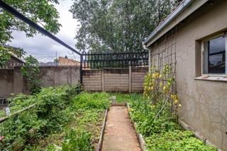 This inviting residential property in Elandspark, Johannesburg, offers a comfortable and secure living environment. The home presents a welcoming kerb appeal with a paved driveway providing ample parking, leading to an arched entrance featuring a decorative pillar and a robust security gate. The well-maintained exterior facade, complemented by visible security features like burglar bars, ensures peace of mind.