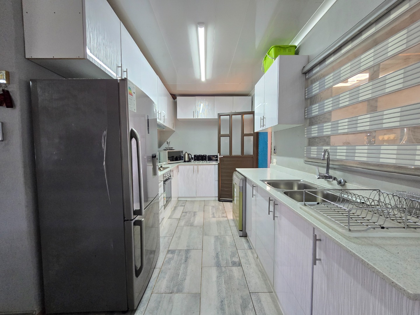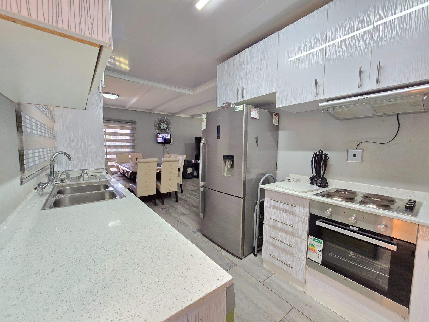 The property further benefits from a domestic quarters with its own toilet and a separate laundry room. The backyard offers excellent extras, including a Wendy house, swimming pool, outdoor shower, and a dedicated washing line area. Additional features include a 1,000-litre water tank, a solar geyser, and a 4-channel camera system for added peace of mind.