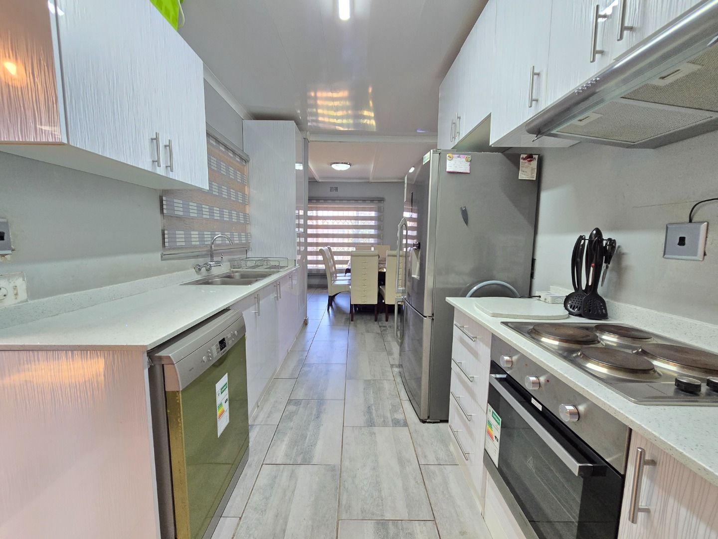 The property further benefits from a domestic quarters with its own toilet and a separate laundry room. The backyard offers excellent extras, including a Wendy house, swimming pool, outdoor shower, and a dedicated washing line area. Additional features include a 1,000-litre water tank, a solar geyser, and a 4-channel camera system for added peace of mind.