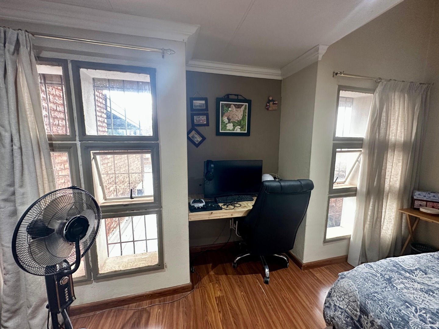 Peaceful Bedrooms: two generously sized bedrooms with laminated floors and built in cupboards infusing them with character and offering a tranquil haven to relax in privacy.