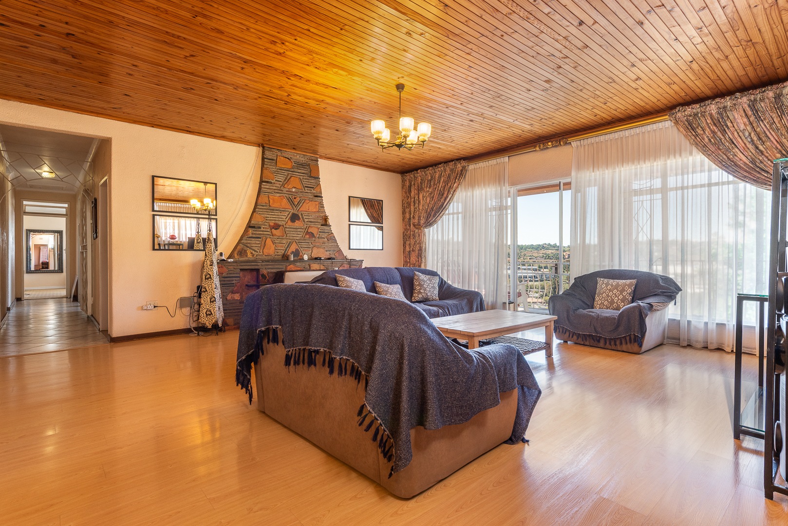 Spacious Living Areas: The home features an expansive open plan living area, including a large lounge and dining room, designed to create a welcoming atmosphere for family gatherings or entertaining guests. A balcony off the lounge offers breathtaking scenic views, adding a touch of serenity to your daily living.