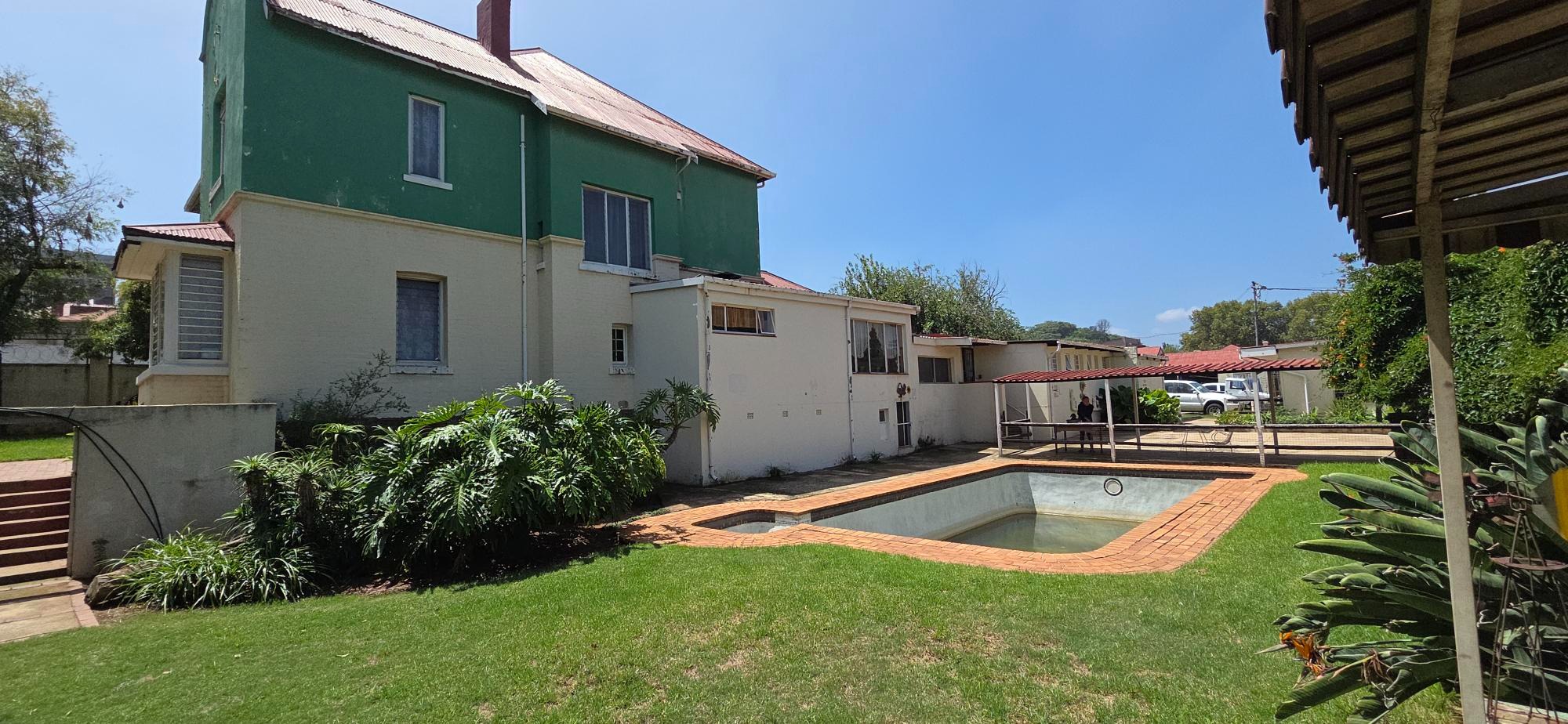 This Guest Lodge and Bar is an excellent property investment generating a monthly income of approximately R 65 000.00 which can be increased ,The property is built on 6 stands measuring 1982 m2 . There is also ample space to build additional rooms . There are a total of 23 rooms and 18 bathrooms as well as a flatlet and a fully functional bar with pool table , kitchen , office and a dining room . There is also a garage , store room 5 covered car ports ,laundry , a huge basement approximately 60 m2 in size plus ample open parking spaces and a swimming pool.