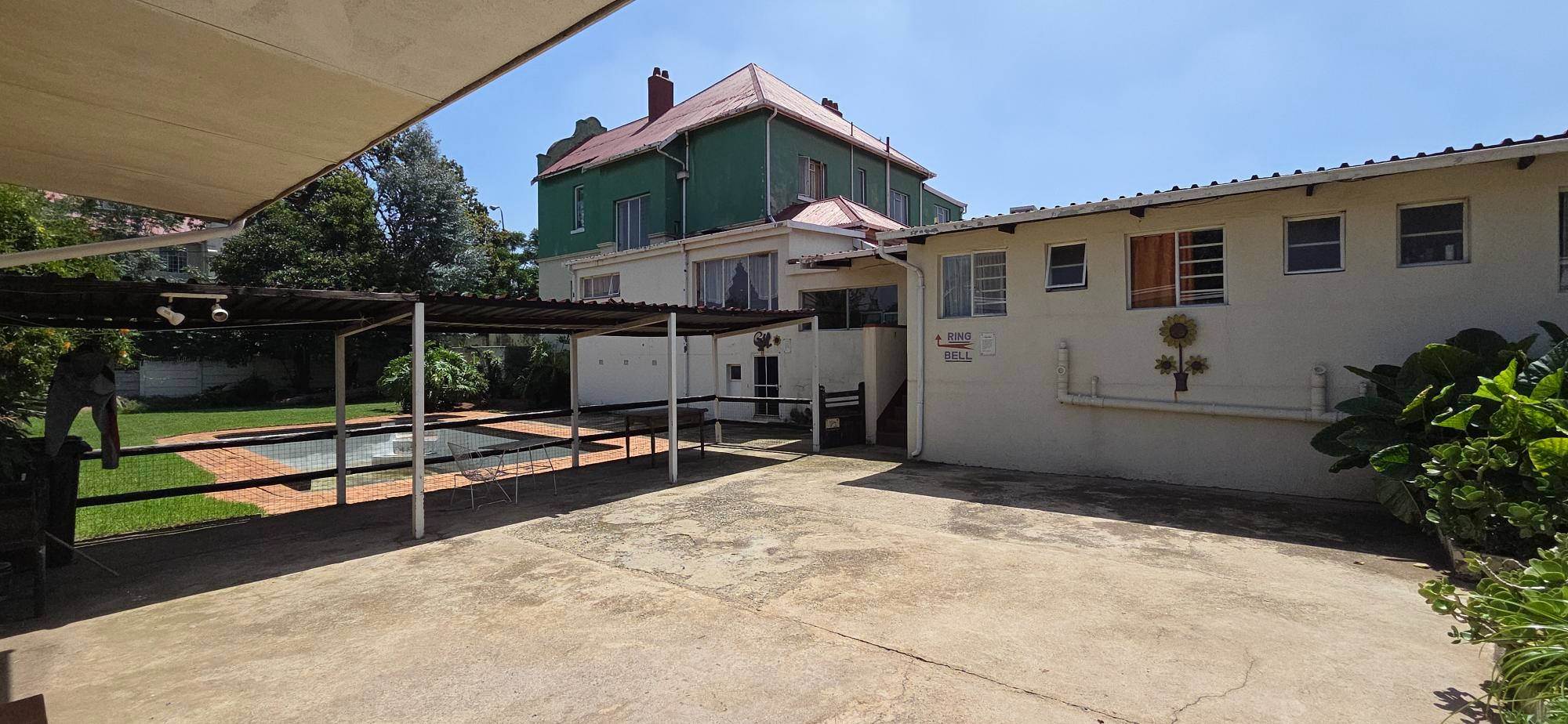 This Guest Lodge and Bar is an excellent property investment generating a monthly income of approximately R 65 000.00 which can be increased ,The property is built on 6 stands measuring 1982 m2 . There is also ample space to build additional rooms . There are a total of 23 rooms and 18 bathrooms as well as a flatlet and a fully functional bar with pool table , kitchen , office and a dining room . There is also a garage , store room 5 covered car ports ,laundry , a huge basement approximately 60 m2 in size plus ample open parking spaces and a swimming pool.