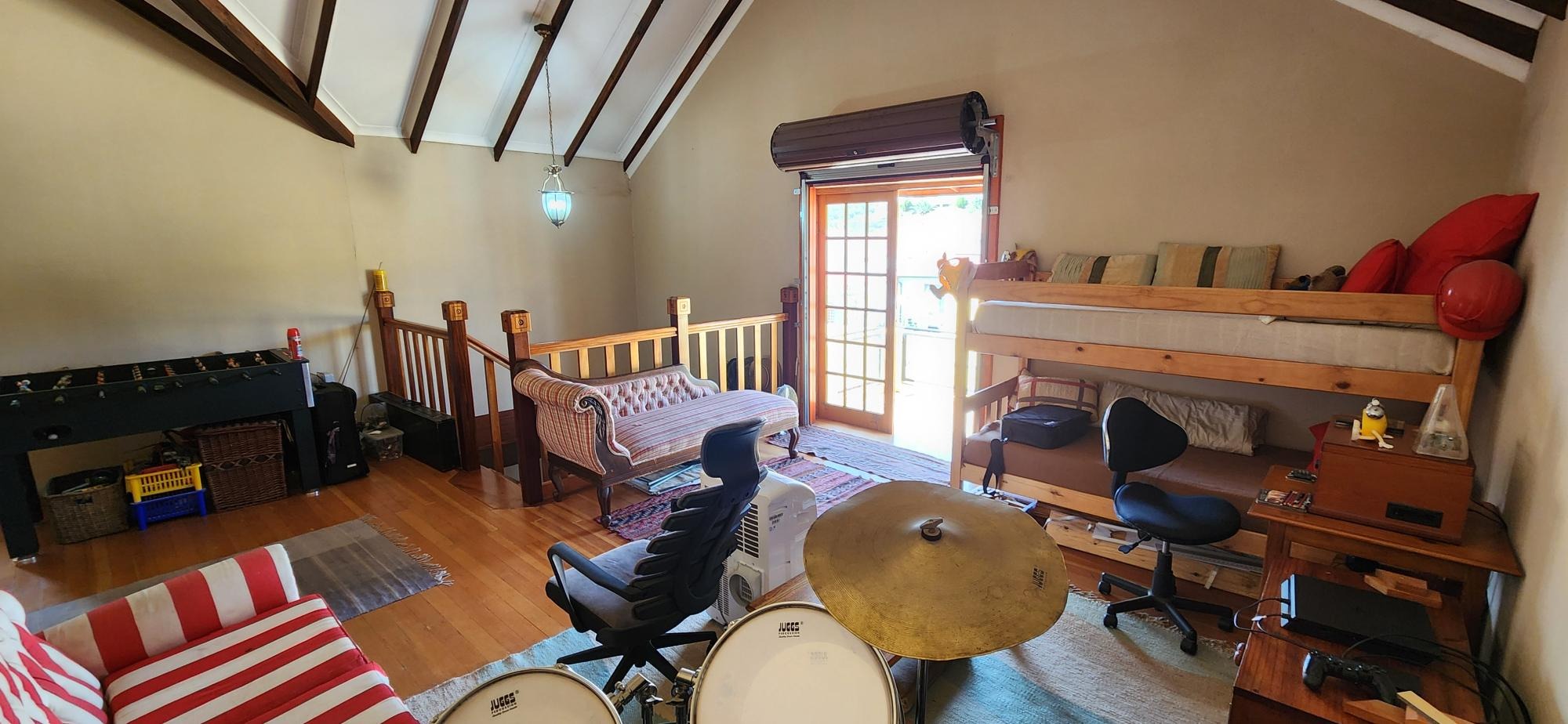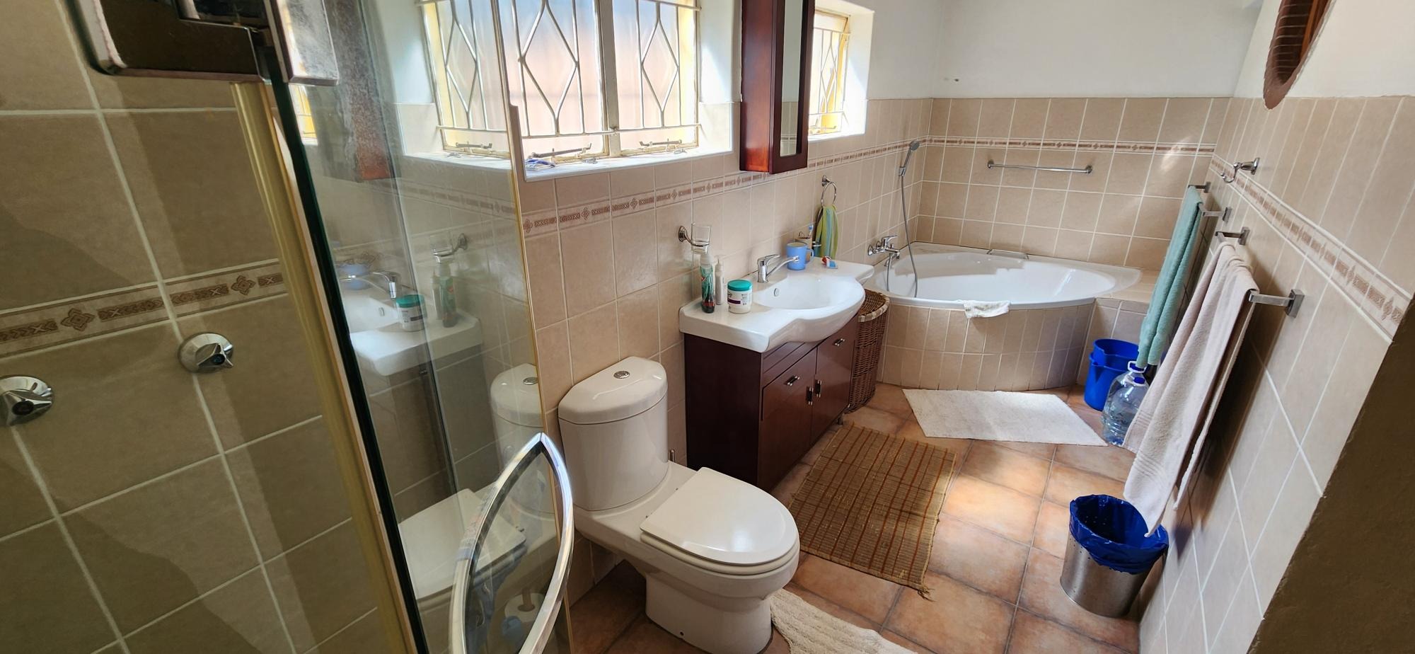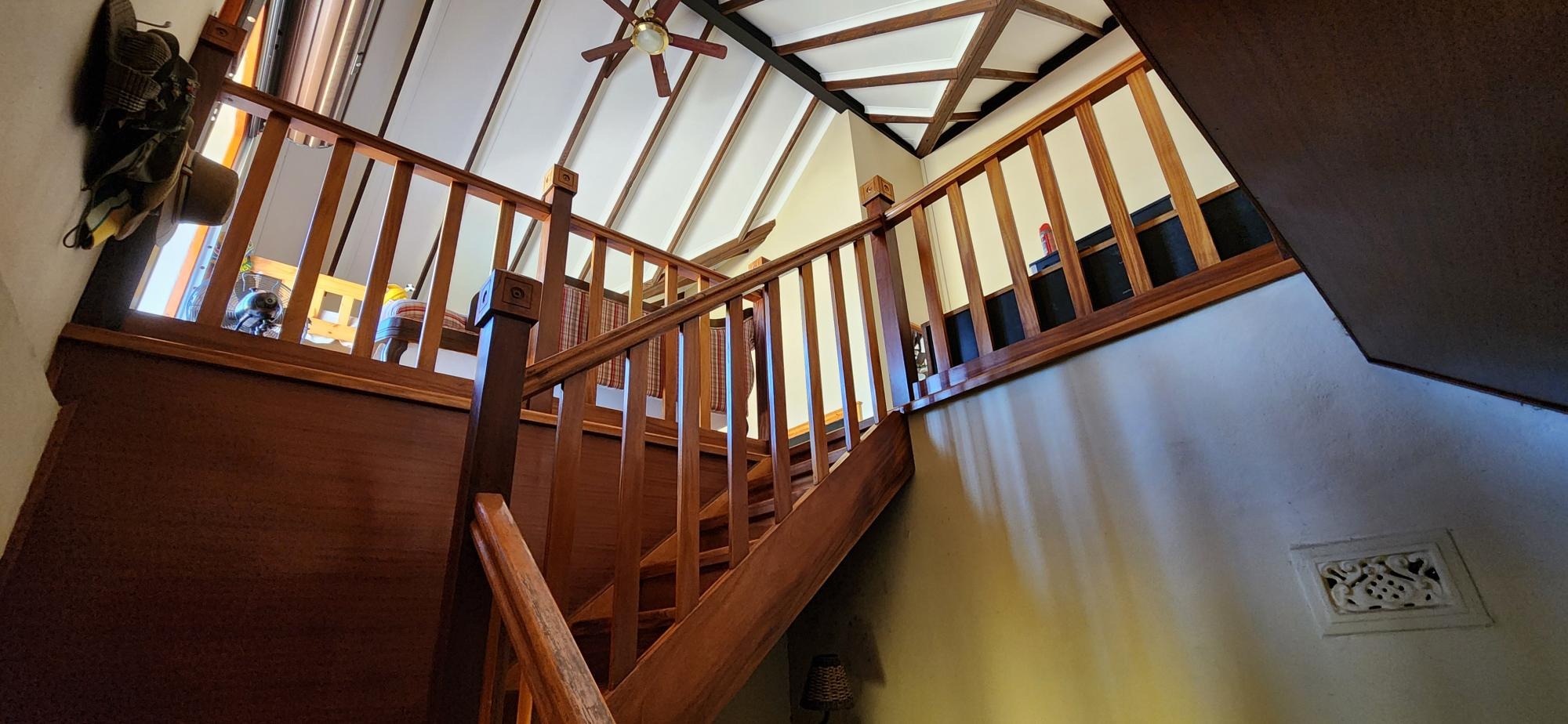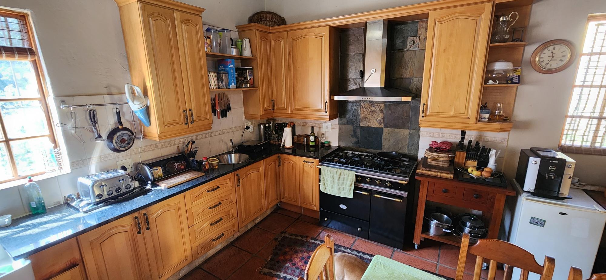 A huge plus to the home is that it is equipt with a 17 KW generator , 10 solar panels ,10 KVA back up batteries and a 8KVA inverter plus a 2.5KL Jojo water container with booster pump connected to the municipal water system . There is also ample space for additional cottages to be built .