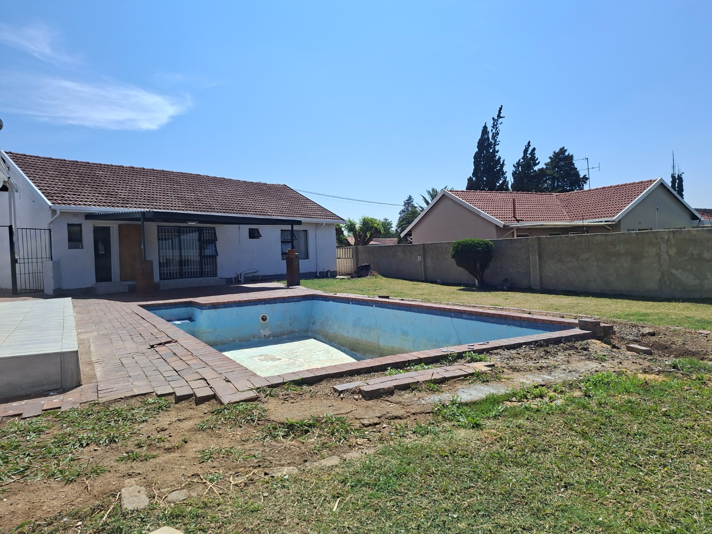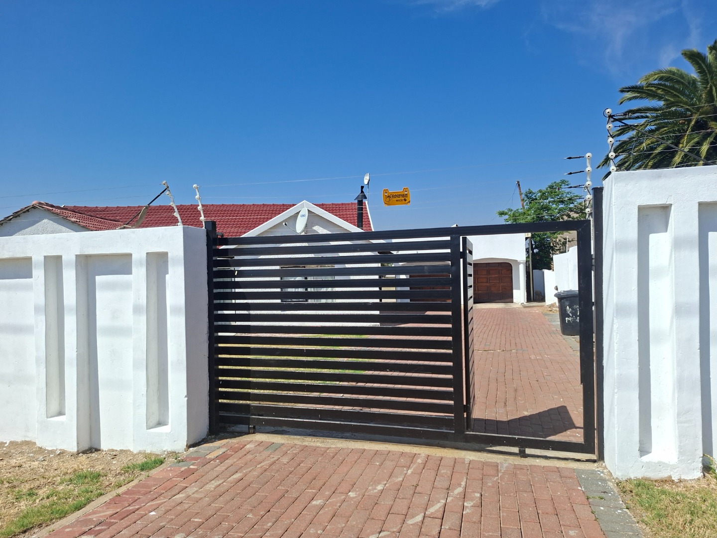 The property is completely walled, has security gates, burglar bars, an alarm system, and electric fencing.