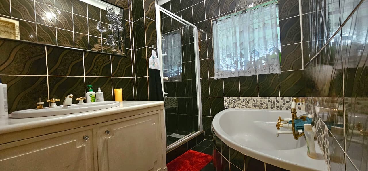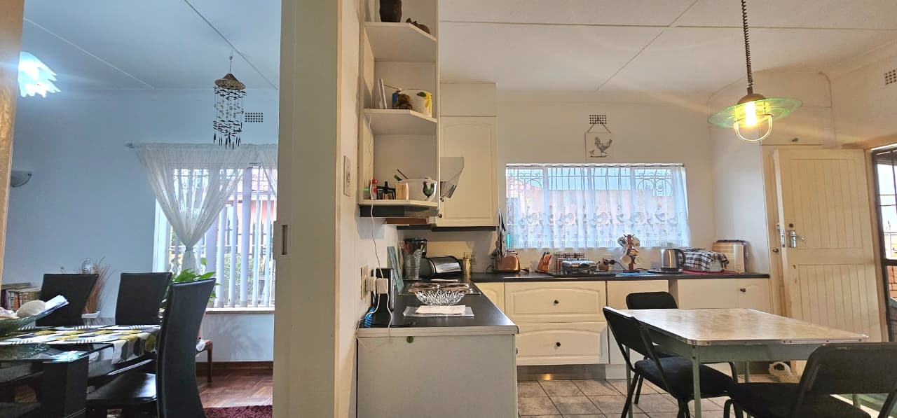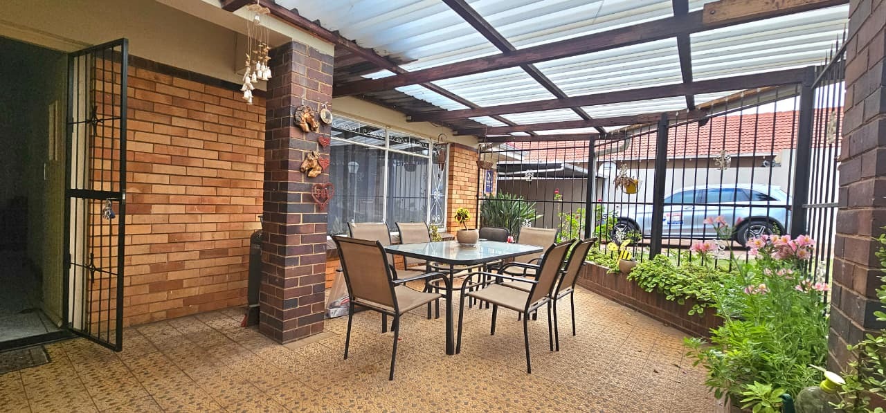 Safety and security are well catered for with burglar bars, an alarm system, and automated gates. The property also features neat paving throughout, a garage that can accommodate up to four cars, and additional open parking for up to eight vehicles — ideal for visitors or larger families.