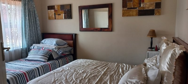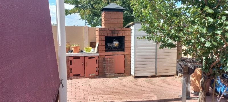 The main house features three generous bedrooms with built-in cupboards and a bathroom. The open-plan lounge and dining area is warm and inviting, creating a natural flow through the home, while the neat kitchen offers ample cupboard space and functionality for everyday use.