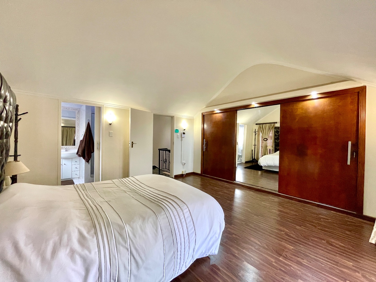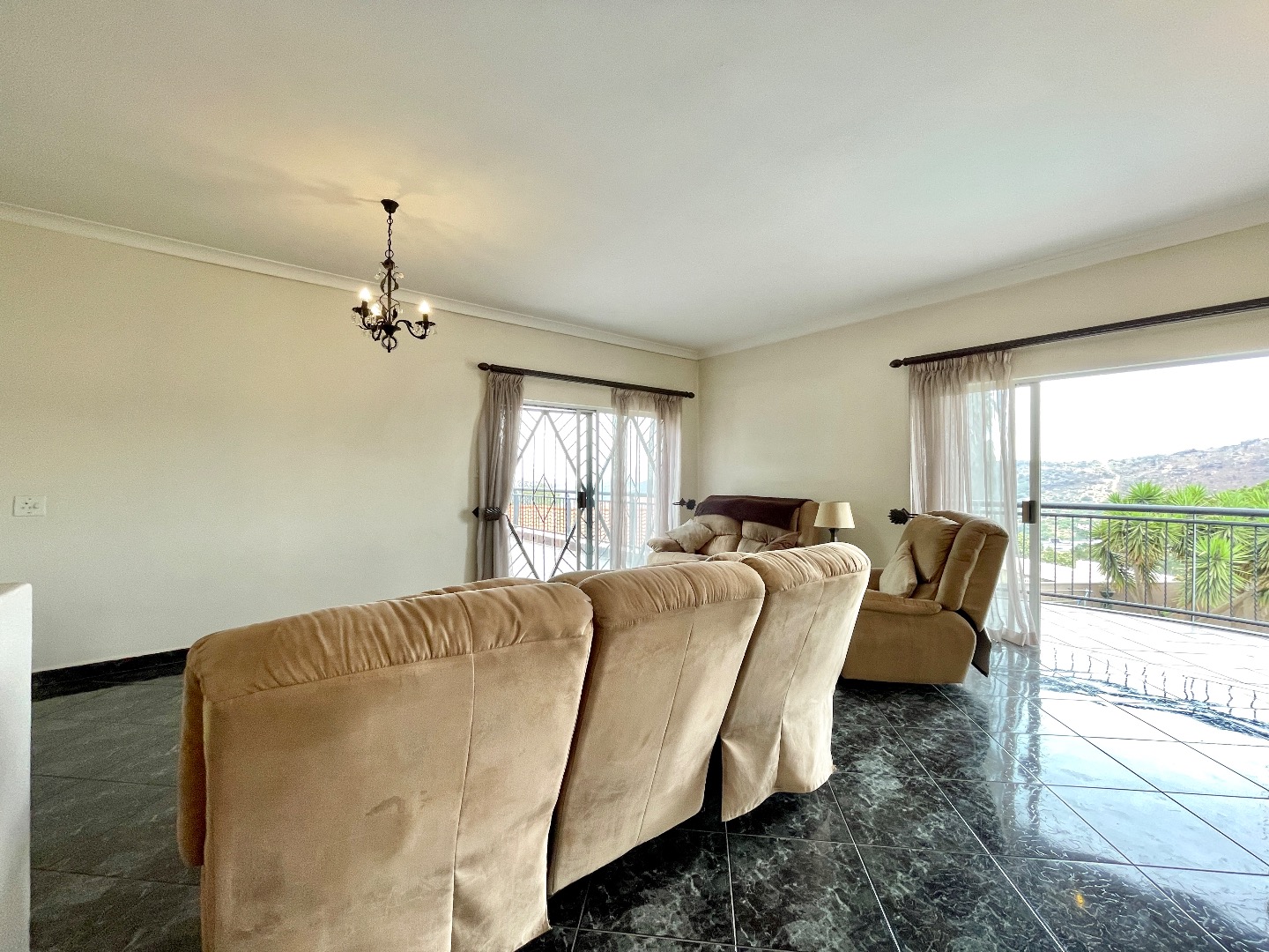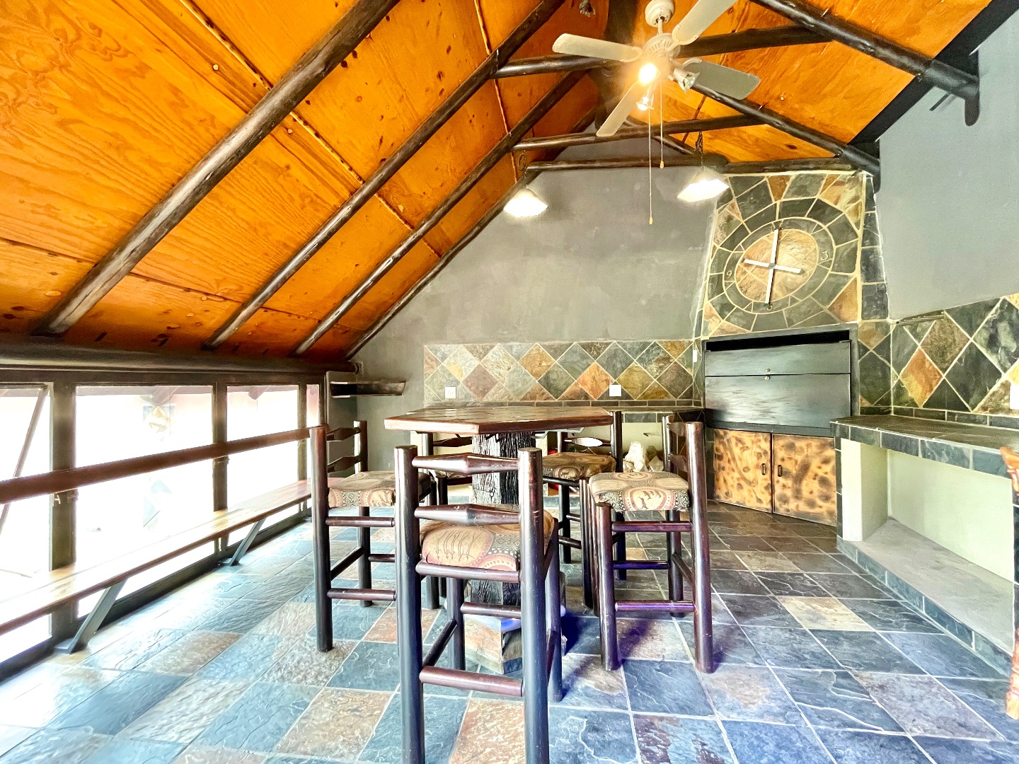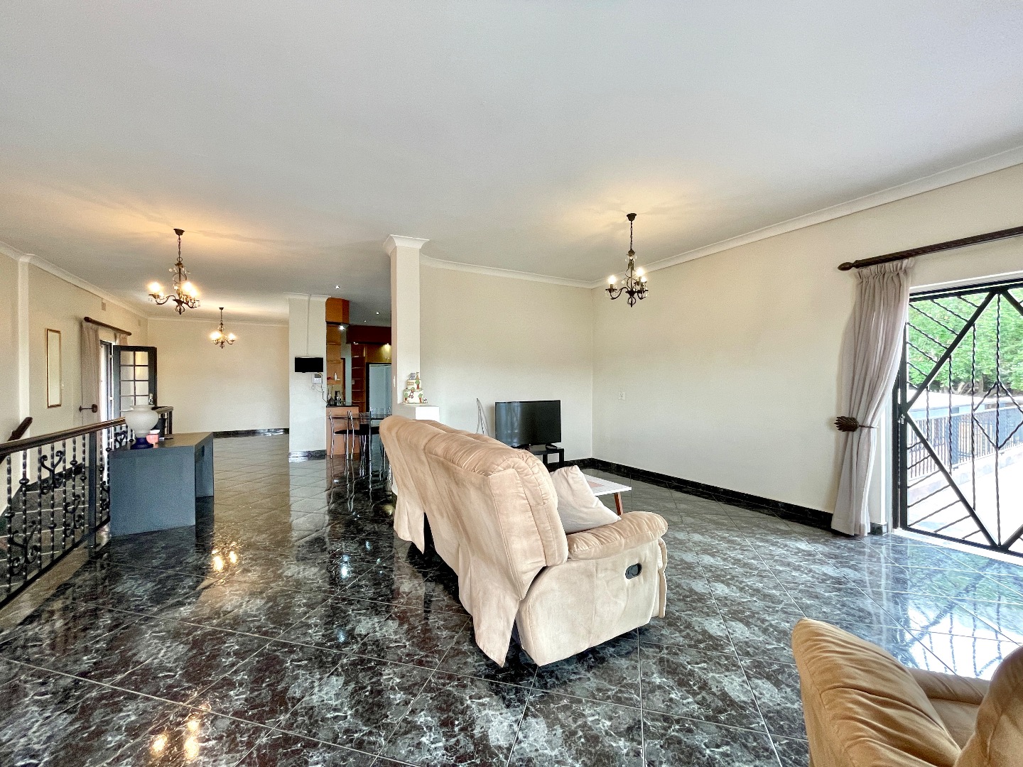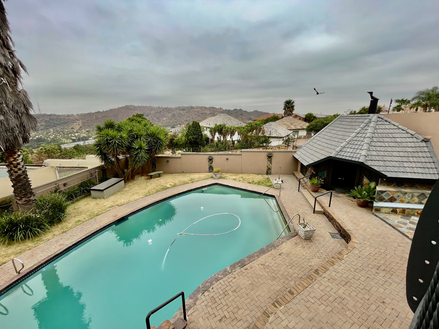 The exterior amenities are equally impressive, designed to maximise outdoor enjoyment and provide ample utility. Vehicle accommodation is exceptionally catered for with six dedicated garages, supplemented by an additional four open parking spaces, providing secure housing for up to ten vehicles. The property features a private swimming pool, offering a refreshing retreat during warmer months, complemented by a spacious patio and a charming lapa, perfect for alfresco dining and entertaining. A private balcony extends from one of the living areas, providing an elevated vantage point to appreciate the scenic views. The meticulously maintained garden, complete with paving, enhances the property's aesthetic appeal and offers a serene outdoor environment.