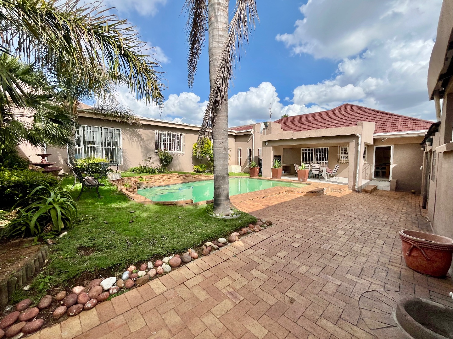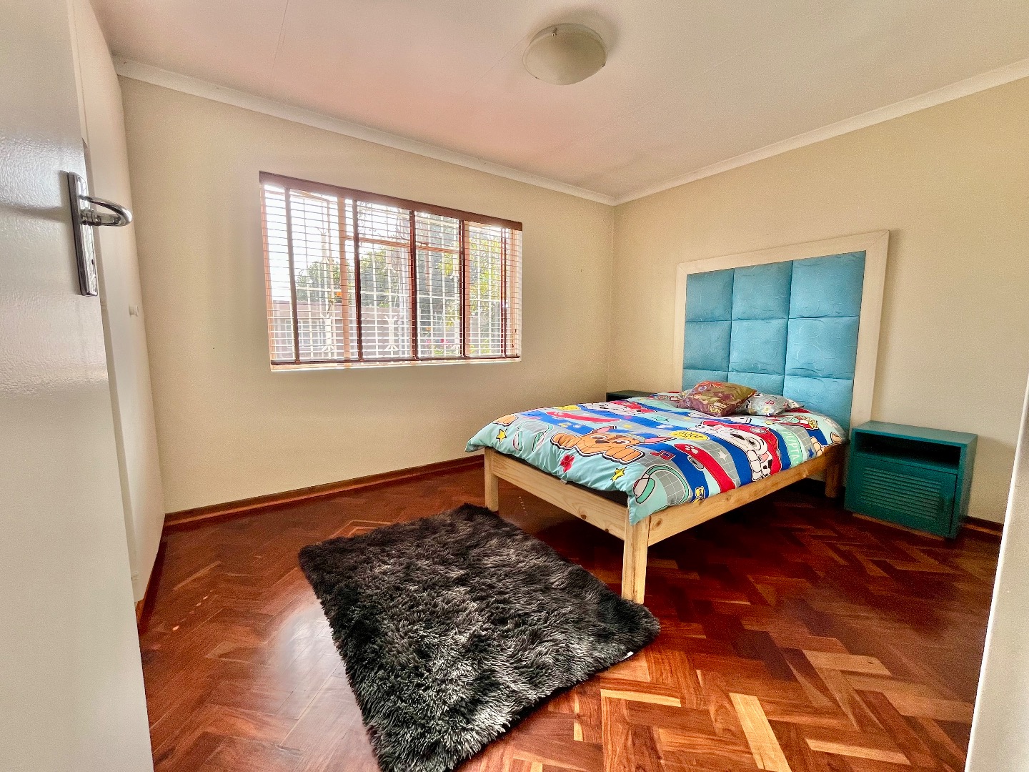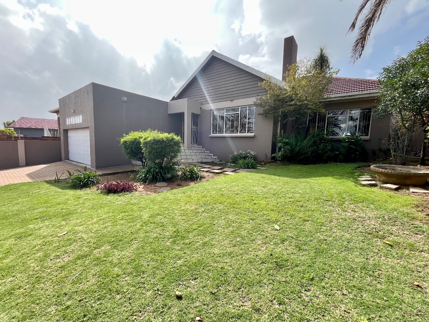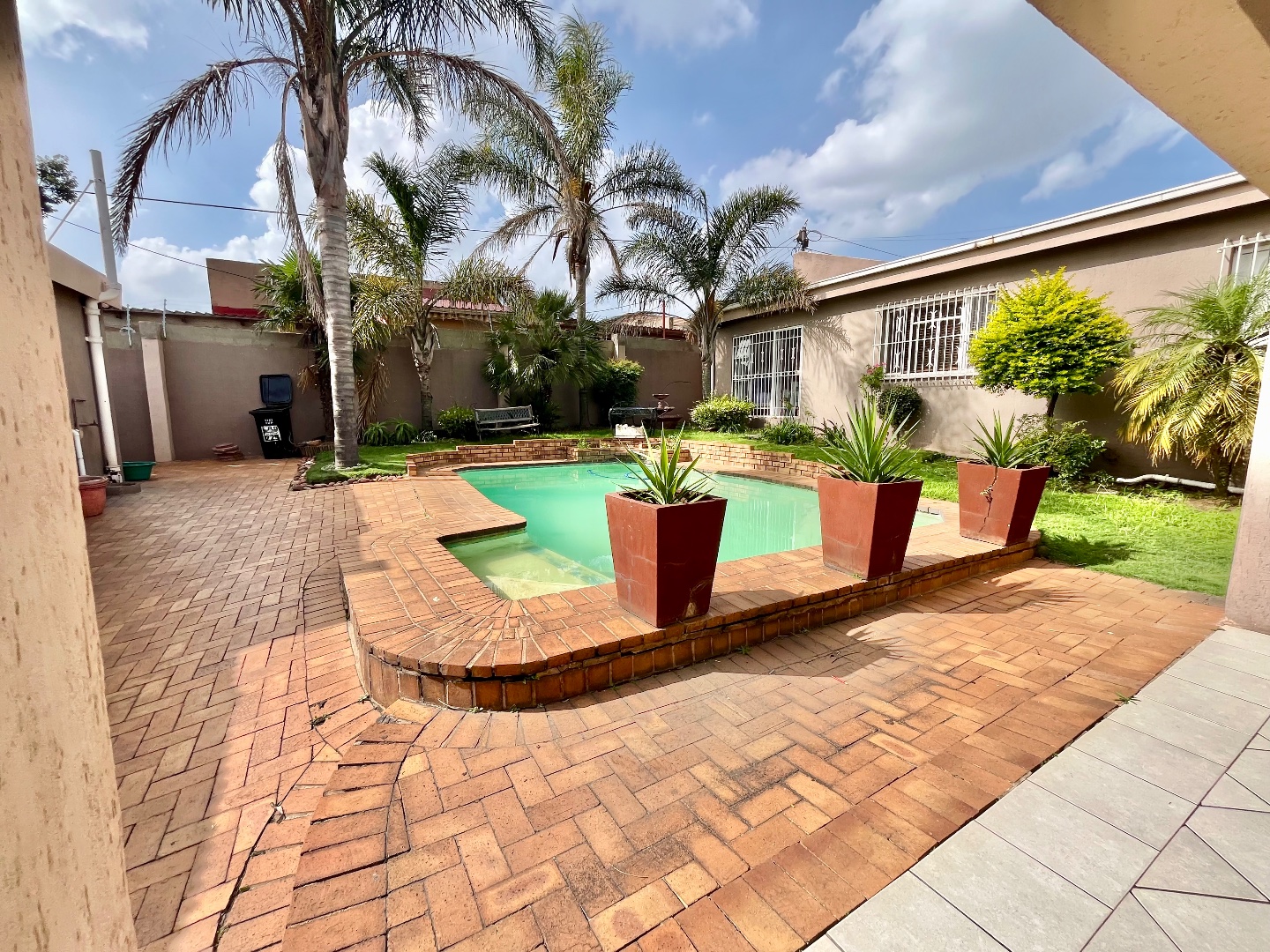 Discover this inviting family home situated in the desirable suburban area of Linmeyer, Johannesburg. The property offers welcoming kerb appeal with a well-maintained front lawn, established landscaping, and a paved driveway leading to a spacious double garage. Security is enhanced by an electric fence and access gate, providing peace of mind within a gated community setting. Step inside to a bright entryway with tiled flooring, transitioning into the warm herringbone wooden floors of the main living areas. The generous lounge boasts a charming fireplace and large windows, ensuring ample natural light. The kitchen features modern marble-look floor tiles, light cabinetry, and an integrated dining space, offering functionality and a pleasant environment for family meals, with direct outdoor access. This residence provides four comfortable bedrooms and two well-appointed bathrooms, including a private en-suite, offering ample space and convenience. A dedicated study creates a quiet space for work or hobbies, complemented by additional storage. The outdoor area is designed for relaxation and entertainment, featuring a private swimming pool set within a spacious paved courtyard. A covered outdoor entertainment area with a built-in braai provides an ideal spot for gatherings, complemented by an established garden with mature palm trees. While the pool requires some maintenance, it presents a fantastic opportunity to create your personal oasis. Beyond the gated community, the home benefits from robust security features including burglar bars and security gates. Practical amenities include domestic rooms and outside toilets. Linmeyer offers a tranquil suburban lifestyle with convenient access to local amenities and major routes. Key Features: * 4 Bedrooms, 2 Bathrooms (1 En-suite) * Double Garage & Paved Driveway * Private Swimming Pool & Covered Entertainment Area * Herringbone Wooden Flooring & Fireplace * Modern Kitchen with Integrated Dining * Established Garden * Dedicated Study & Storage * Gated Community with Electric Fencing & Access Gate * Domestic Rooms & Outside Toilets * Built-in Braai