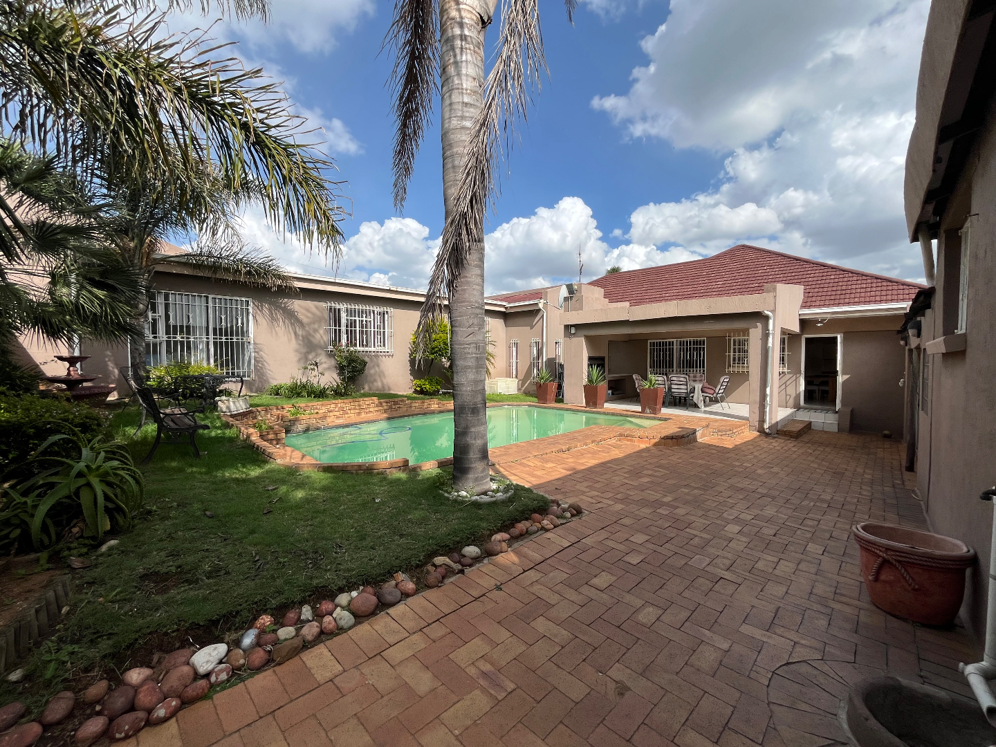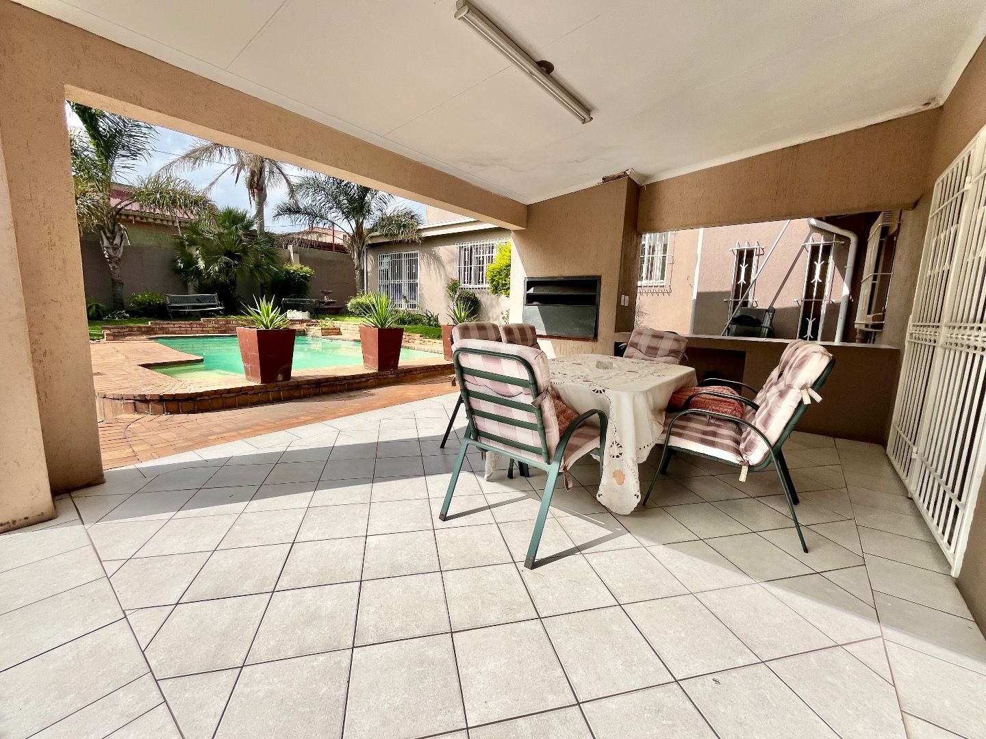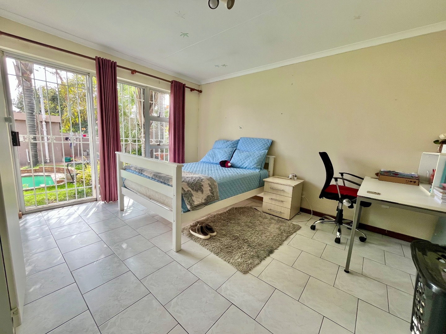 Discover this inviting family home situated in the desirable suburban area of Linmeyer, Johannesburg. The property offers welcoming kerb appeal with a well-maintained front lawn, established landscaping, and a paved driveway leading to a spacious double garage. Security is enhanced by an electric fence and access gate, providing peace of mind within a gated community setting. Step inside to a bright entryway with tiled flooring, transitioning into the warm herringbone wooden floors of the main living areas. The generous lounge boasts a charming fireplace and large windows, ensuring ample natural light. The kitchen features modern marble-look floor tiles, light cabinetry, and an integrated dining space, offering functionality and a pleasant environment for family meals, with direct outdoor access. This residence provides four comfortable bedrooms and two well-appointed bathrooms, including a private en-suite, offering ample space and convenience. A dedicated study creates a quiet space for work or hobbies, complemented by additional storage. The outdoor area is designed for relaxation and entertainment, featuring a private swimming pool set within a spacious paved courtyard. A covered outdoor entertainment area with a built-in braai provides an ideal spot for gatherings, complemented by an established garden with mature palm trees. While the pool requires some maintenance, it presents a fantastic opportunity to create your personal oasis. Beyond the gated community, the home benefits from robust security features including burglar bars and security gates. Practical amenities include domestic rooms and outside toilets. Linmeyer offers a tranquil suburban lifestyle with convenient access to local amenities and major routes. Key Features: * 4 Bedrooms, 2 Bathrooms (1 En-suite) * Double Garage & Paved Driveway * Private Swimming Pool & Covered Entertainment Area * Herringbone Wooden Flooring & Fireplace * Modern Kitchen with Integrated Dining * Established Garden * Dedicated Study & Storage * Gated Community with Electric Fencing & Access Gate * Domestic Rooms & Outside Toilets * Built-in Braai