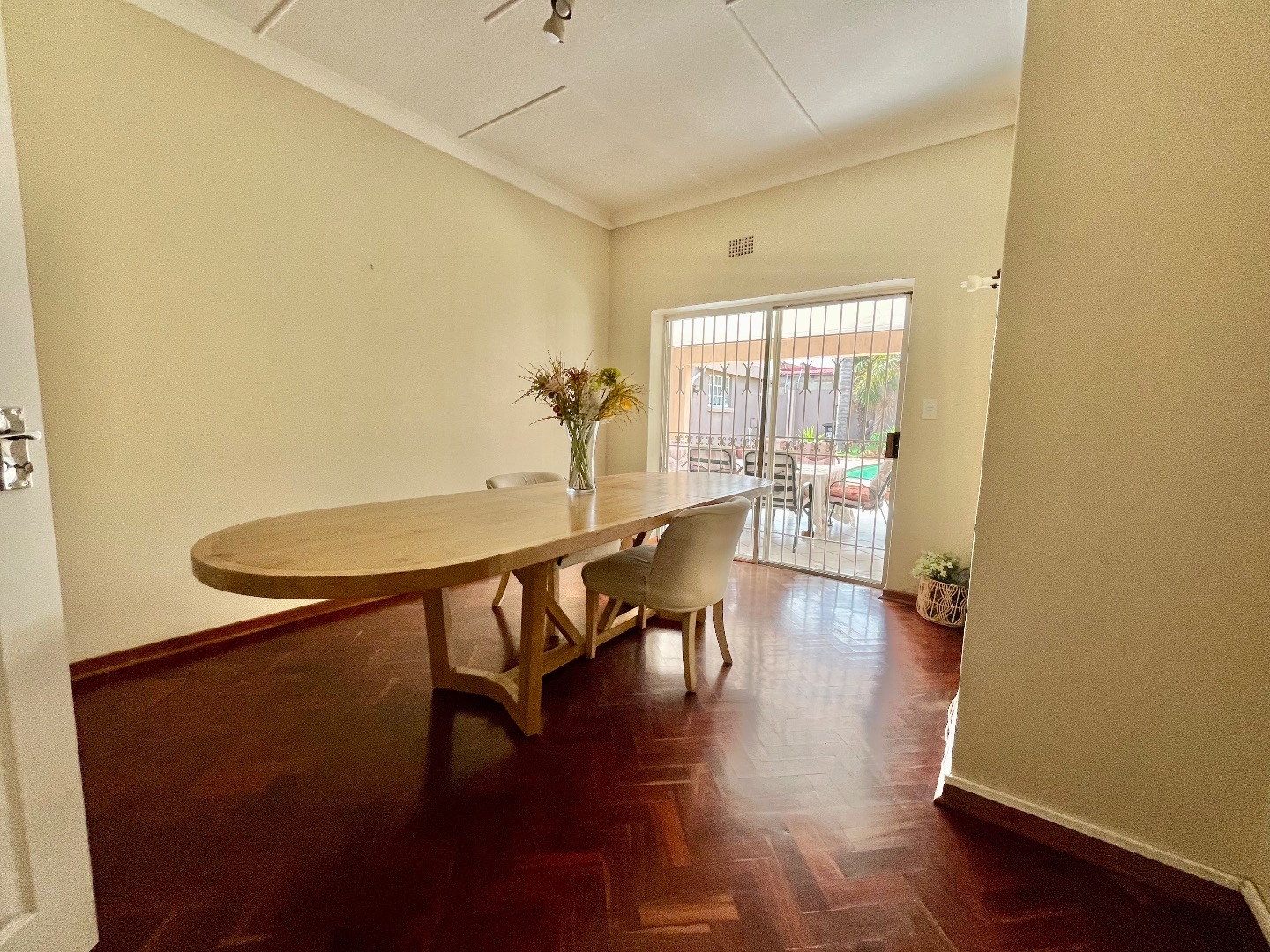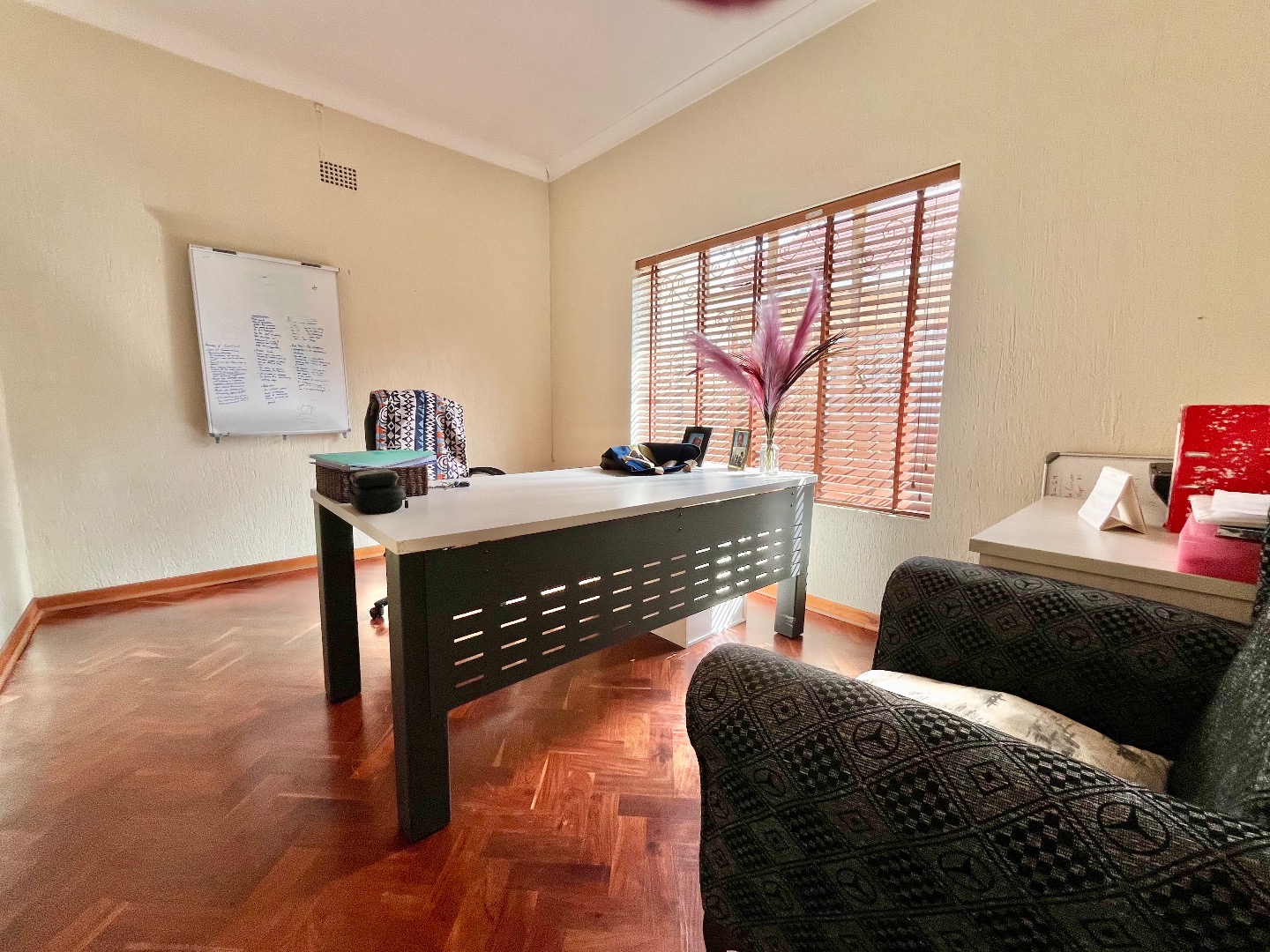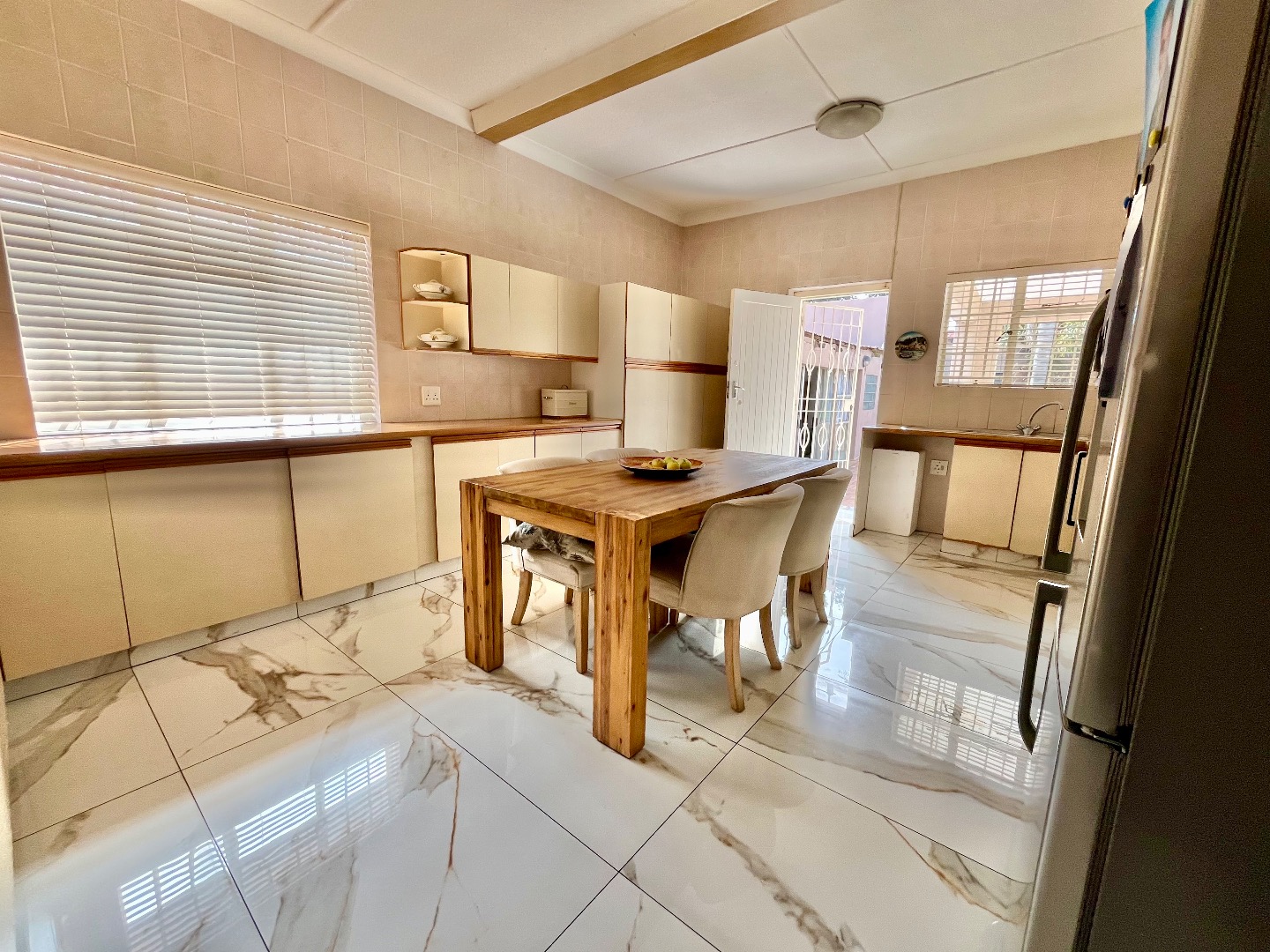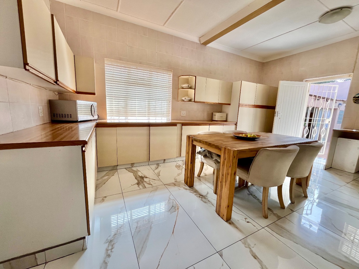 Discover this inviting family home situated in the desirable suburban area of Linmeyer, Johannesburg. The property offers welcoming kerb appeal with a well-maintained front lawn, established landscaping, and a paved driveway leading to a spacious double garage. Security is enhanced by an electric fence and access gate, providing peace of mind within a gated community setting. Step inside to a bright entryway with tiled flooring, transitioning into the warm herringbone wooden floors of the main living areas. The generous lounge boasts a charming fireplace and large windows, ensuring ample natural light. The kitchen features modern marble-look floor tiles, light cabinetry, and an integrated dining space, offering functionality and a pleasant environment for family meals, with direct outdoor access. This residence provides four comfortable bedrooms and two well-appointed bathrooms, including a private en-suite, offering ample space and convenience. A dedicated study creates a quiet space for work or hobbies, complemented by additional storage. The outdoor area is designed for relaxation and entertainment, featuring a private swimming pool set within a spacious paved courtyard. A covered outdoor entertainment area with a built-in braai provides an ideal spot for gatherings, complemented by an established garden with mature palm trees. While the pool requires some maintenance, it presents a fantastic opportunity to create your personal oasis. Beyond the gated community, the home benefits from robust security features including burglar bars and security gates. Practical amenities include domestic rooms and outside toilets. Linmeyer offers a tranquil suburban lifestyle with convenient access to local amenities and major routes. Key Features: * 4 Bedrooms, 2 Bathrooms (1 En-suite) * Double Garage & Paved Driveway * Private Swimming Pool & Covered Entertainment Area * Herringbone Wooden Flooring & Fireplace * Modern Kitchen with Integrated Dining * Established Garden * Dedicated Study & Storage * Gated Community with Electric Fencing & Access Gate * Domestic Rooms & Outside Toilets * Built-in Braai