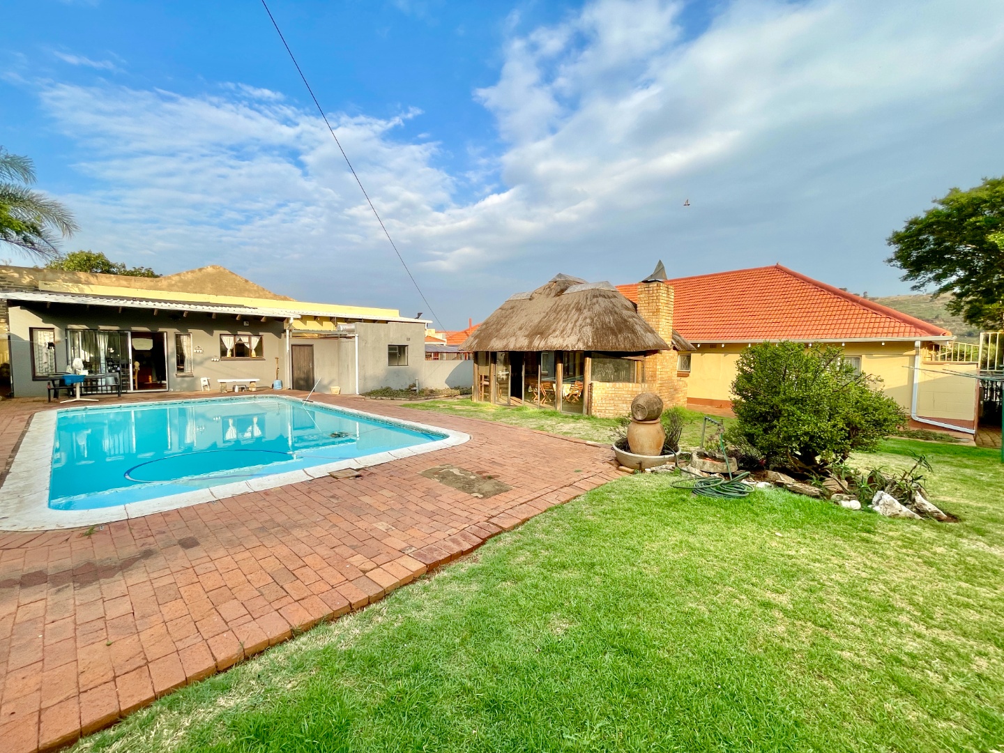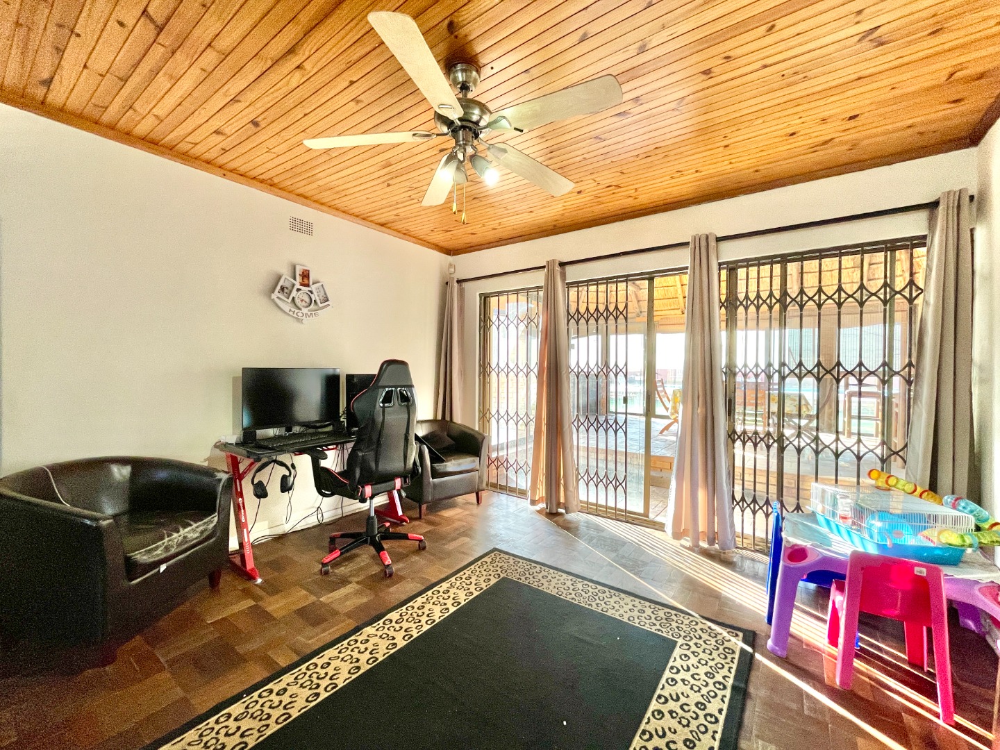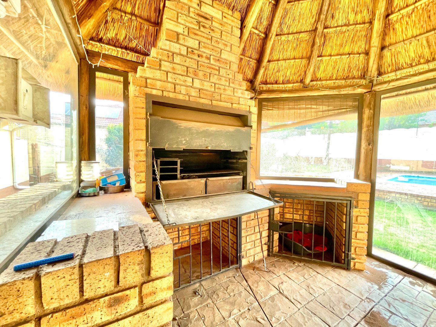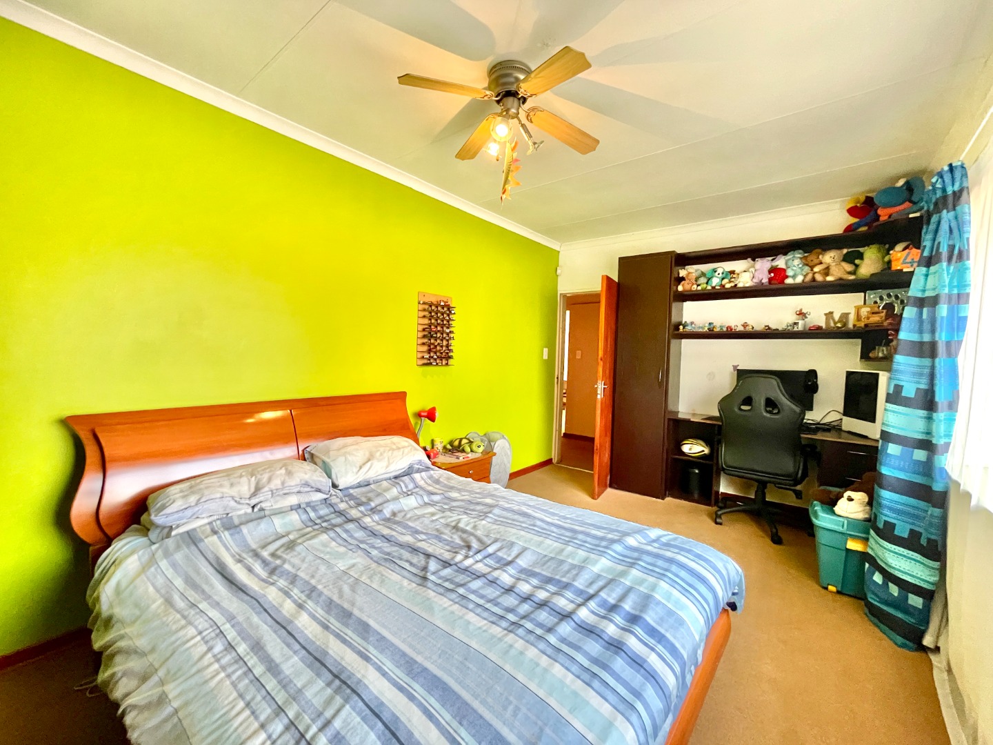 The main house features four spacious bedrooms with built-in cupboards, including a main en-suite. A separate study provides the ideal work-from-home space and can easily be used as an additional bedroom if needed. The kitchen is fitted with granite countertops and ample cupboard space, seamlessly flowing into the large dining room and open-plan lounge. The lounge opens to an inviting entertainment Lapa, overlooking the lush garden and sparkling pool – the ideal setting for family gatherings or relaxed weekends.