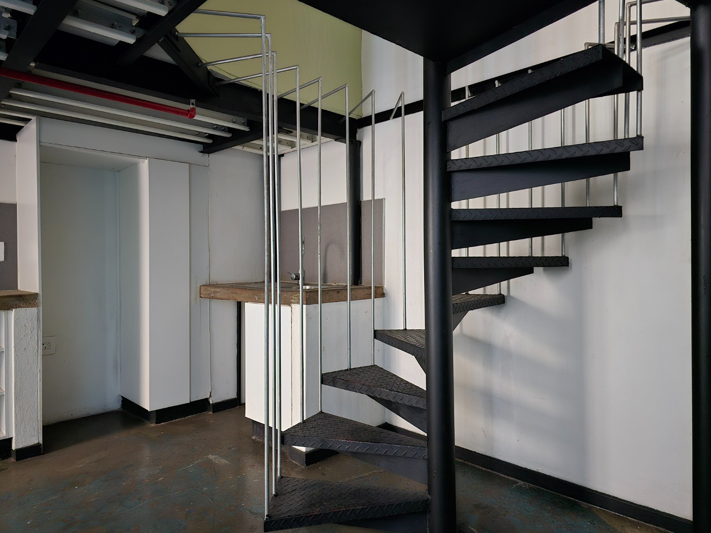 A striking spiral staircase leads you to the upper-level bedroom, complete with its own bathroom, which includes a shower, toilet, and basin. The unit is further enhanced by a private balcony — a perfect spot for relaxation or your morning coffee.