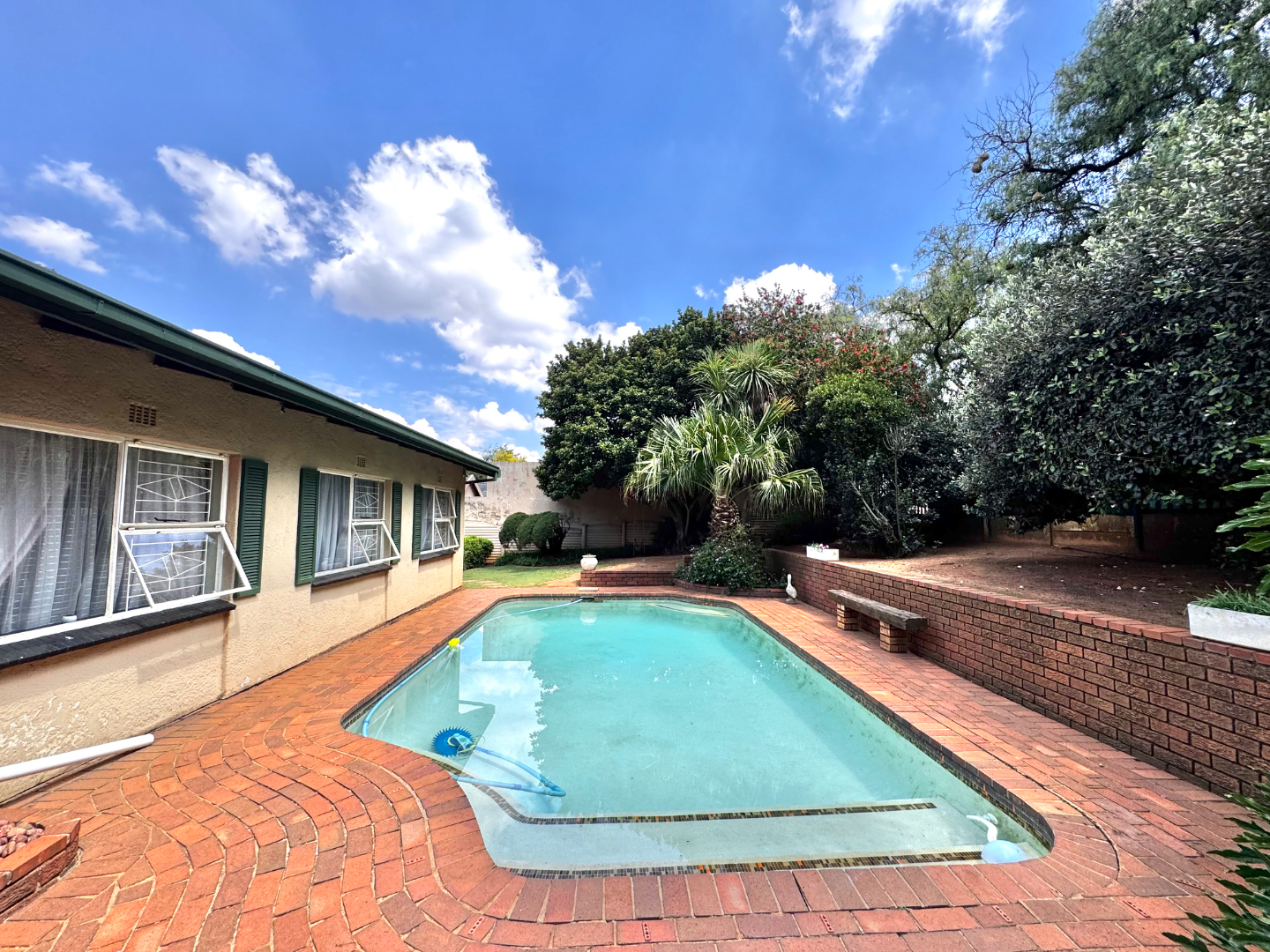 The heart of the home extends outdoors, where a private swimming pool creates the perfect lifestyle setting. Whether you’re entertaining friends, enjoying family weekends, or simply unwinding after a long day, this space offers year-round enjoyment and tranquility.